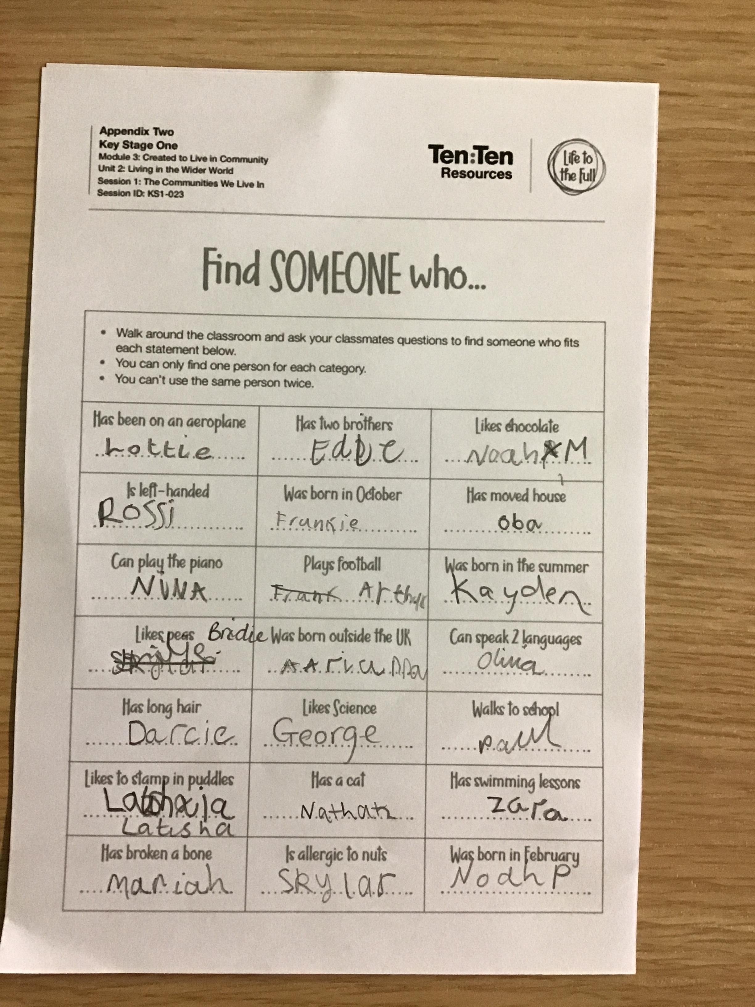 In this session, children learnt about the different communities that they are part of, both local and global. They will think about what it means to belong to a community and the rights and responsibilities that come with it. They played the 'Find Someone' game and watched Suzie's videos.