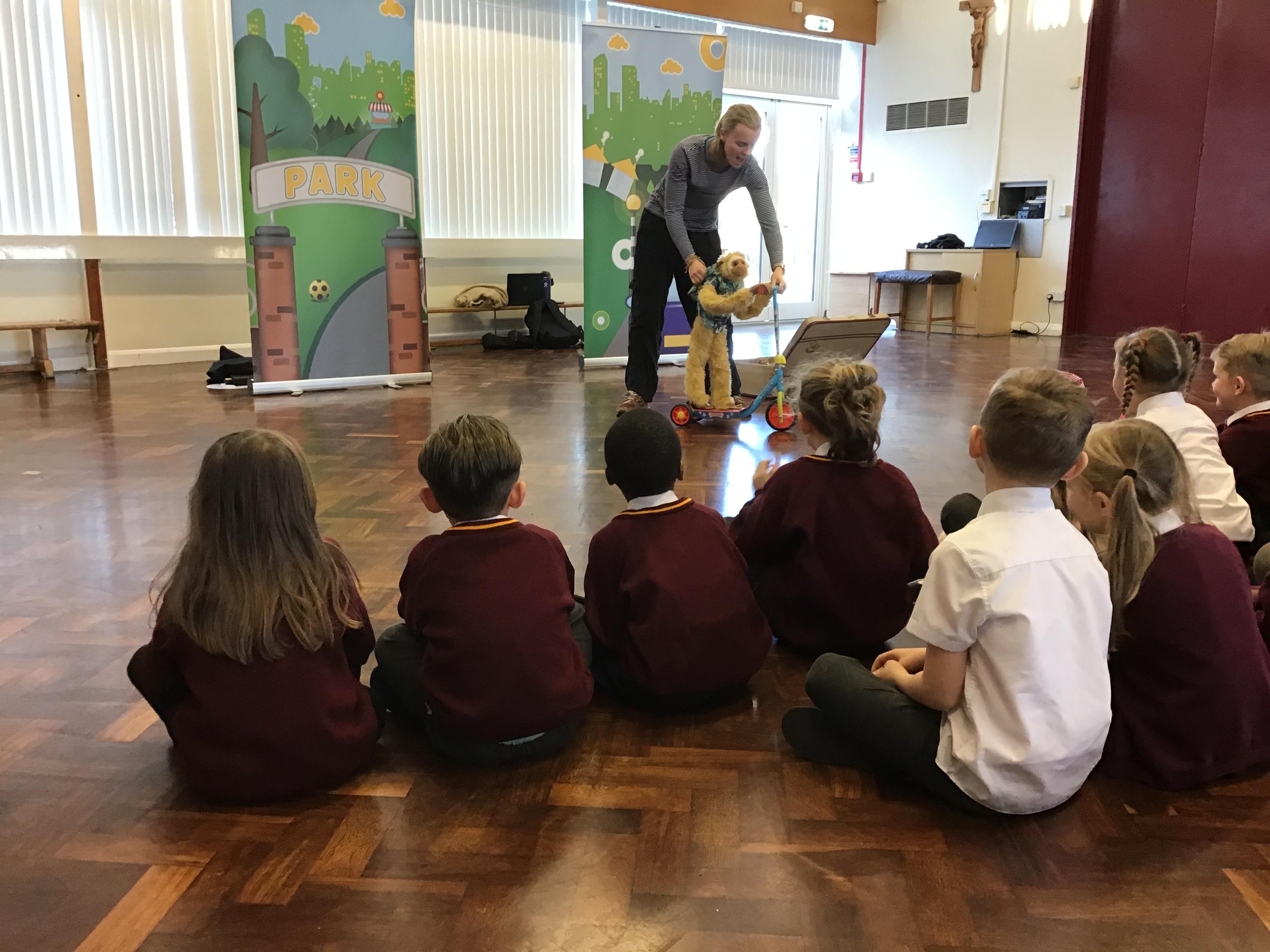 The year 1 and 2 children loved having the Riot Act in to deliver a road safety play. They listened and learnt all about how to be safe near roads and sang the ‘Stop, Look and Listen’ song.