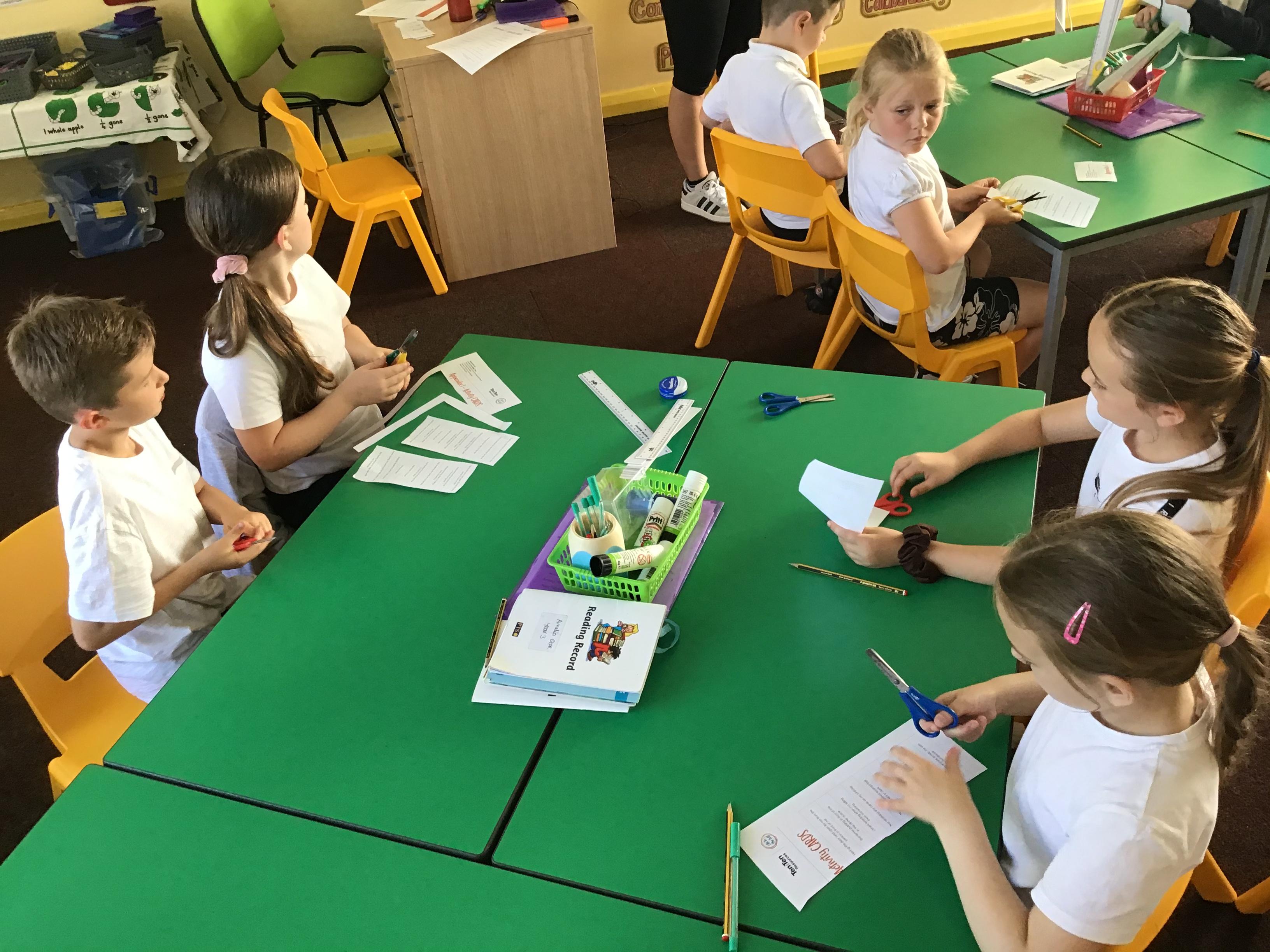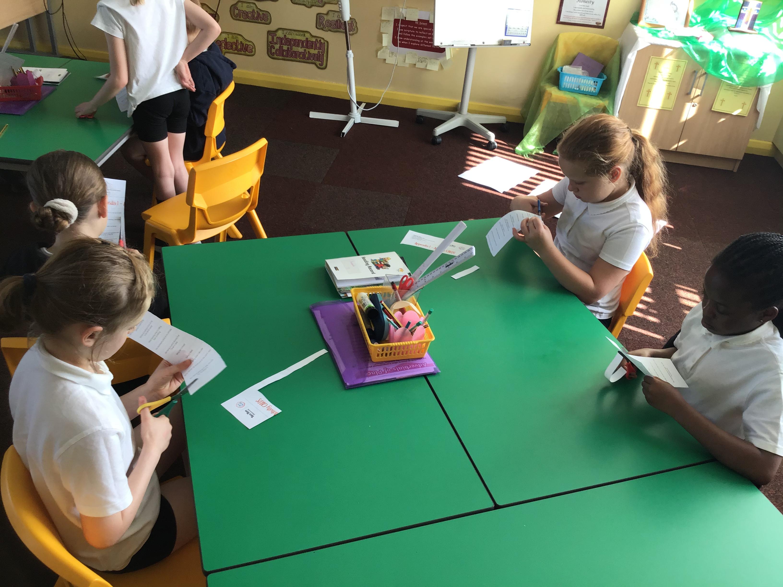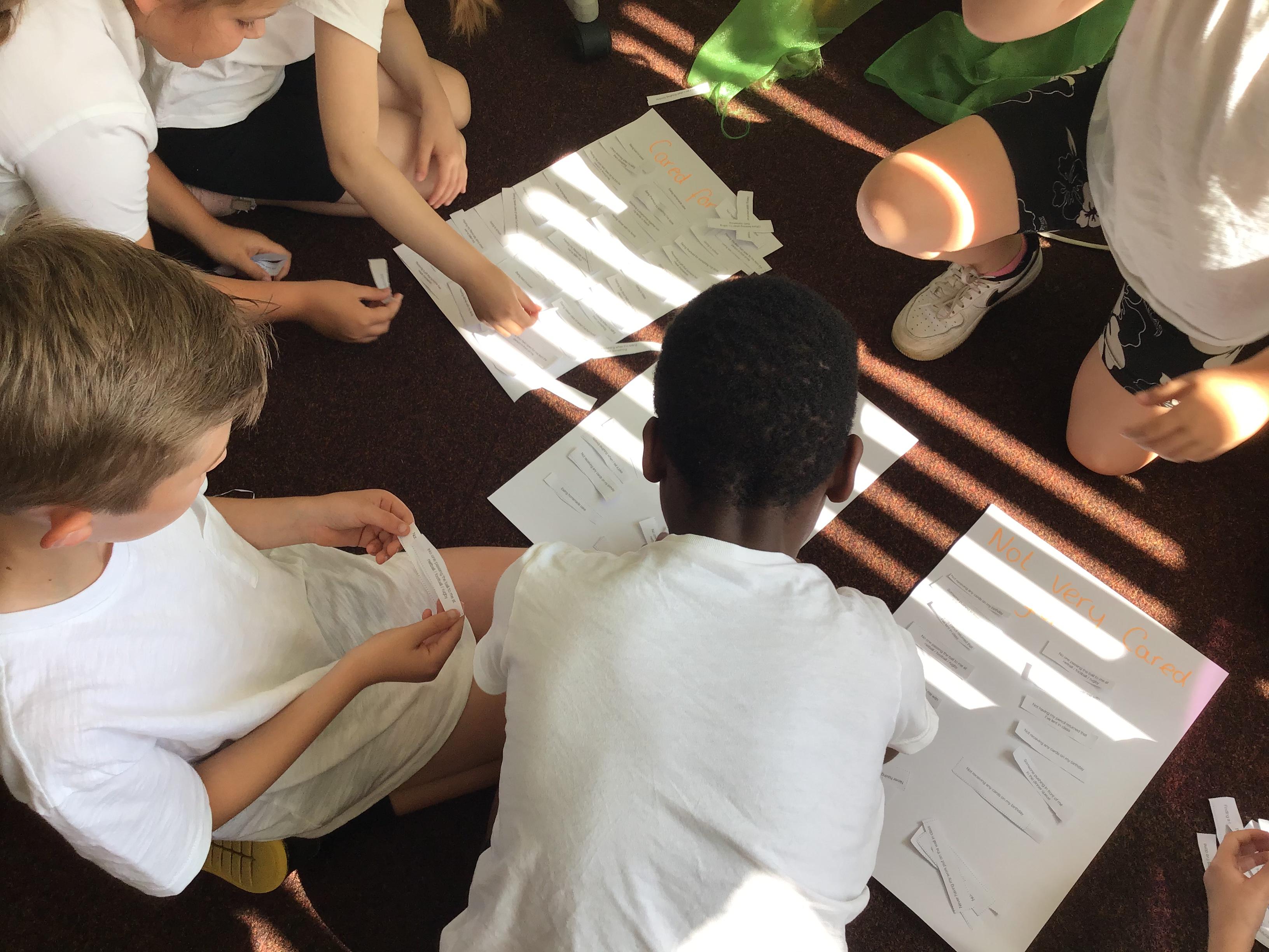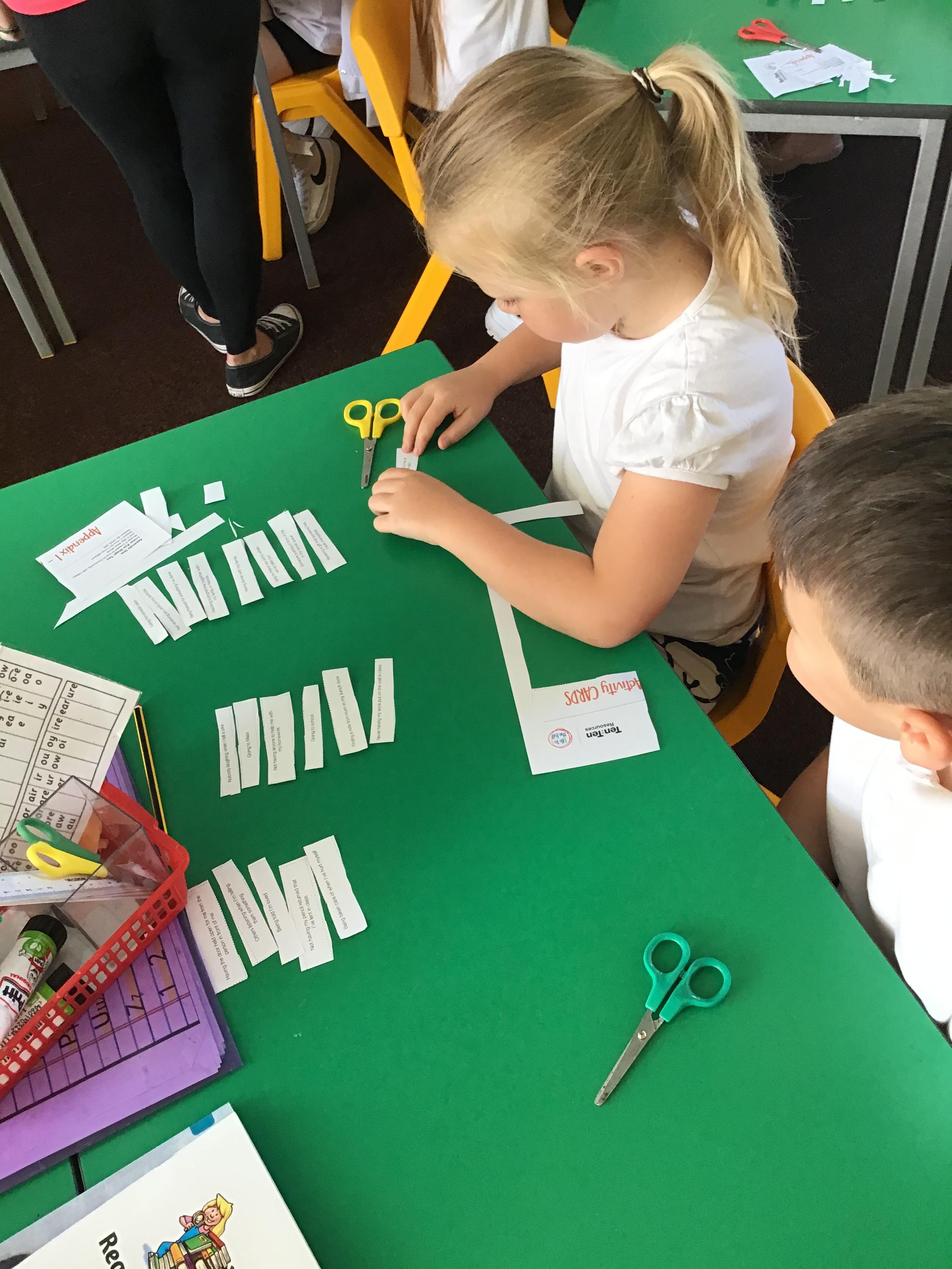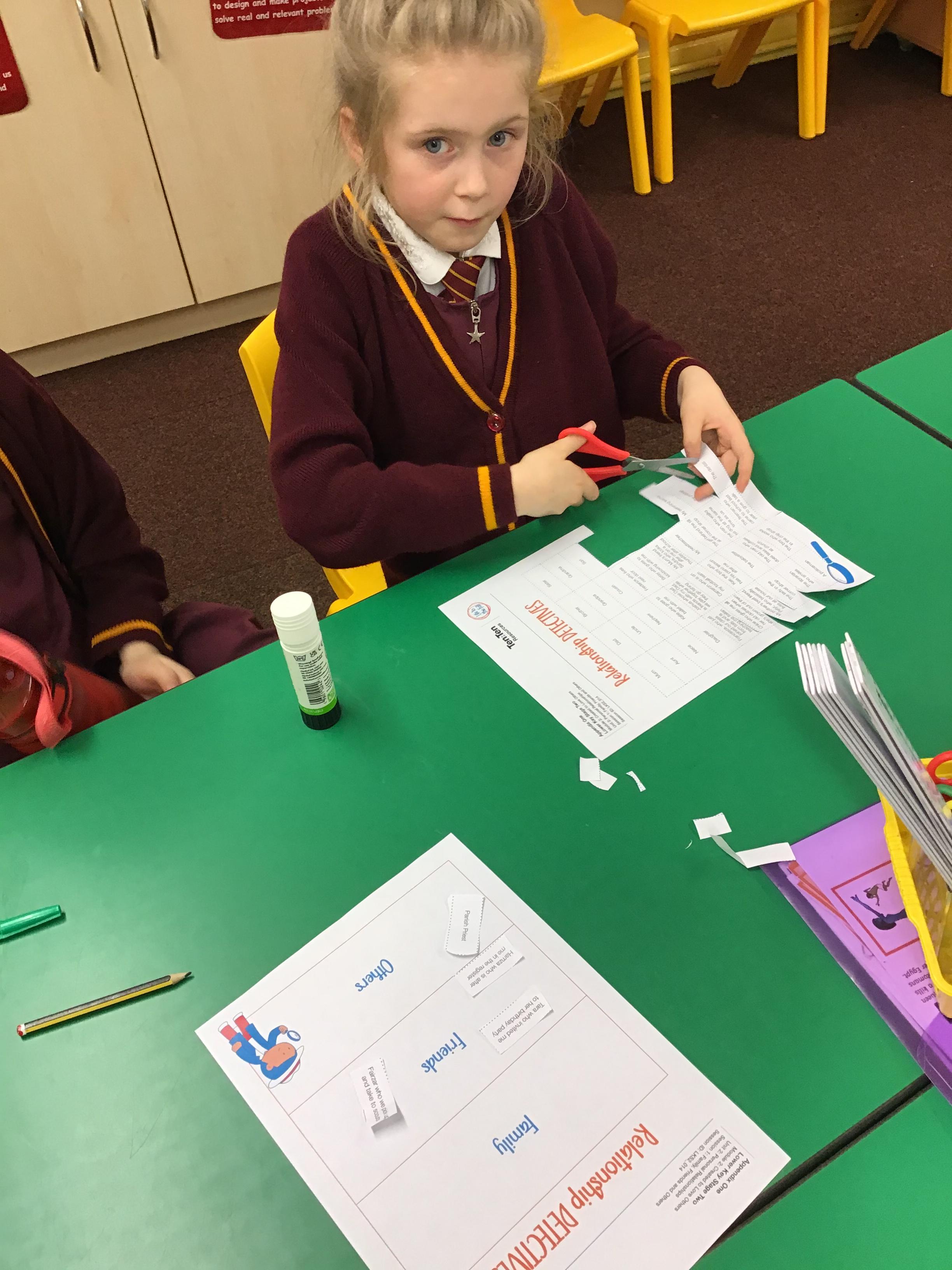 In this module, the children have been exploring and identifying complex relationships in their lives. The children have discussed what it means to be a good friend and learnt some strategies to use when it can be difficult in relationships. Here the children are doing a sorting activity of scenarios and relationships into categories (Friends, Family and Others).