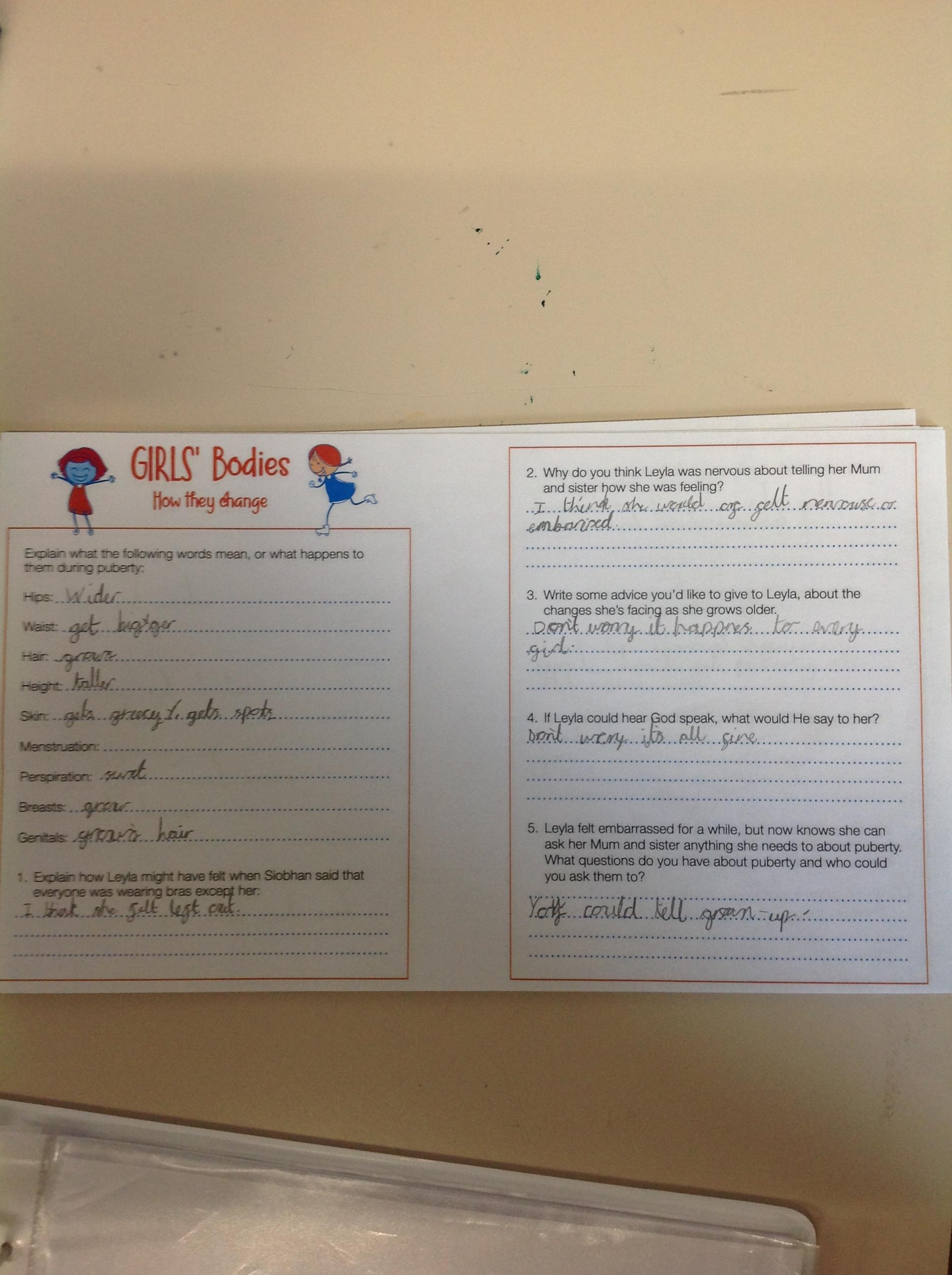 Year 6 learnt about their own gifts and talents, boys' bodies and their changes, girls' bodies and their changes and about spots and the importance of a good nights sleep!