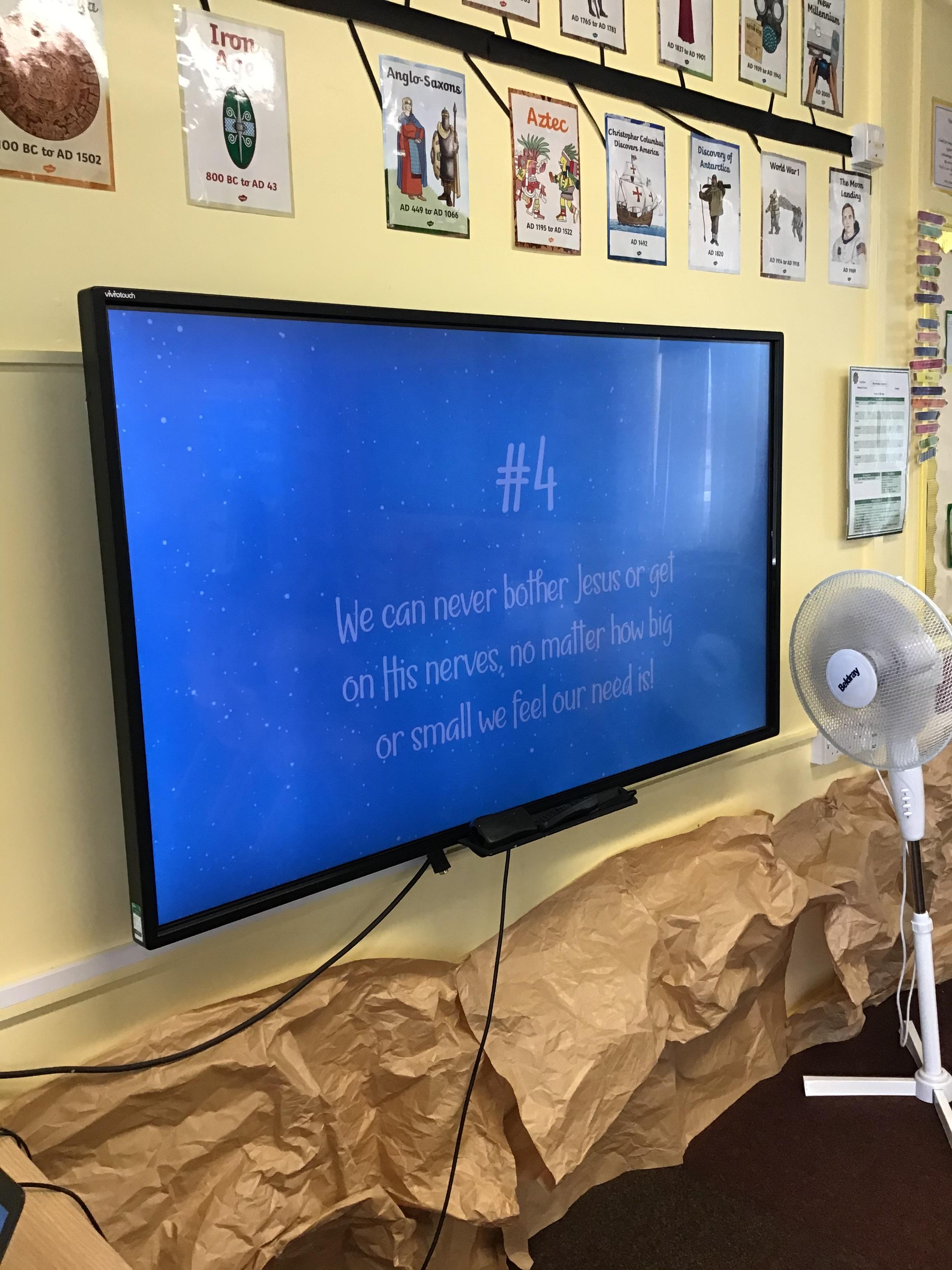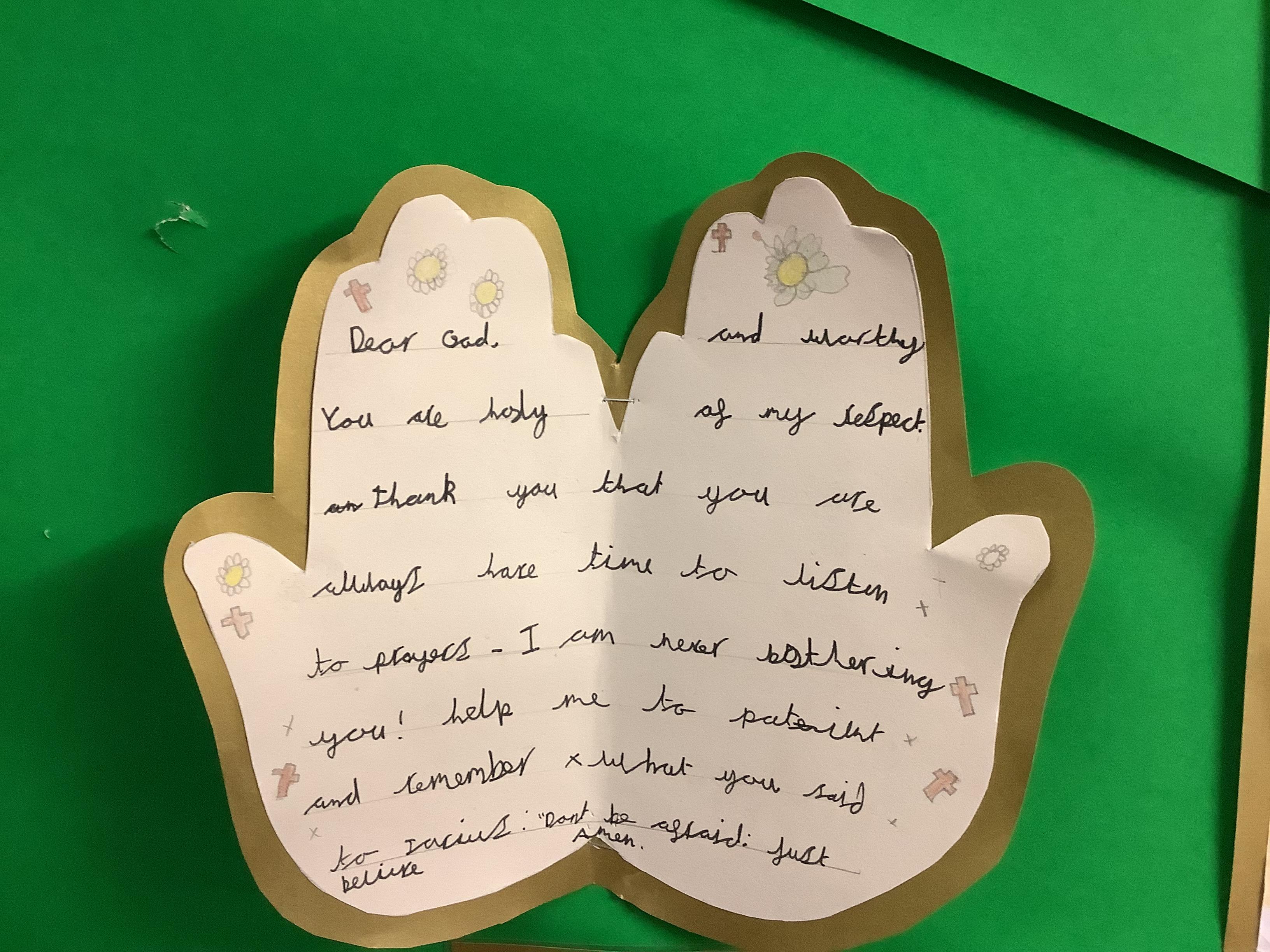 After watching the Bible story of Jesus calming the storm and learning how Jesus is always there through life's storms, the children in Year 5 responded by writing prayers asking for help for themselves or for others and started to fill our 'prayer cross' in class.