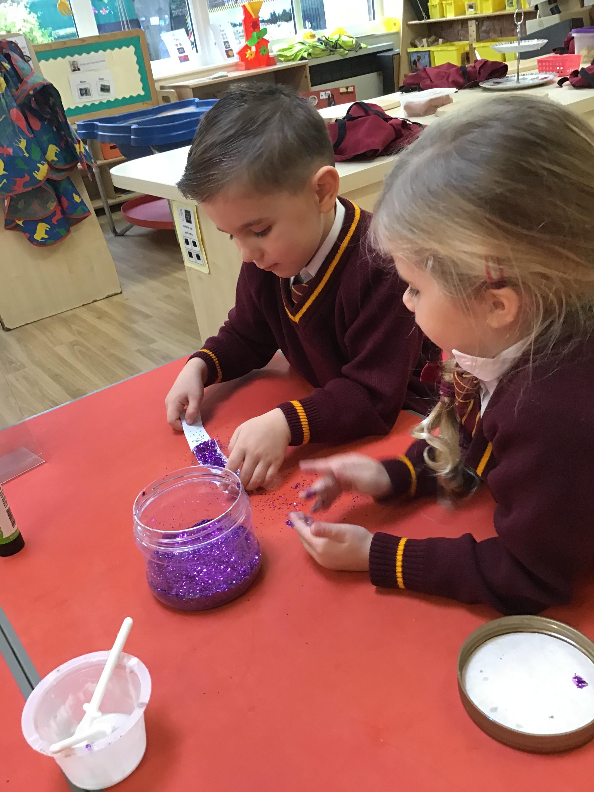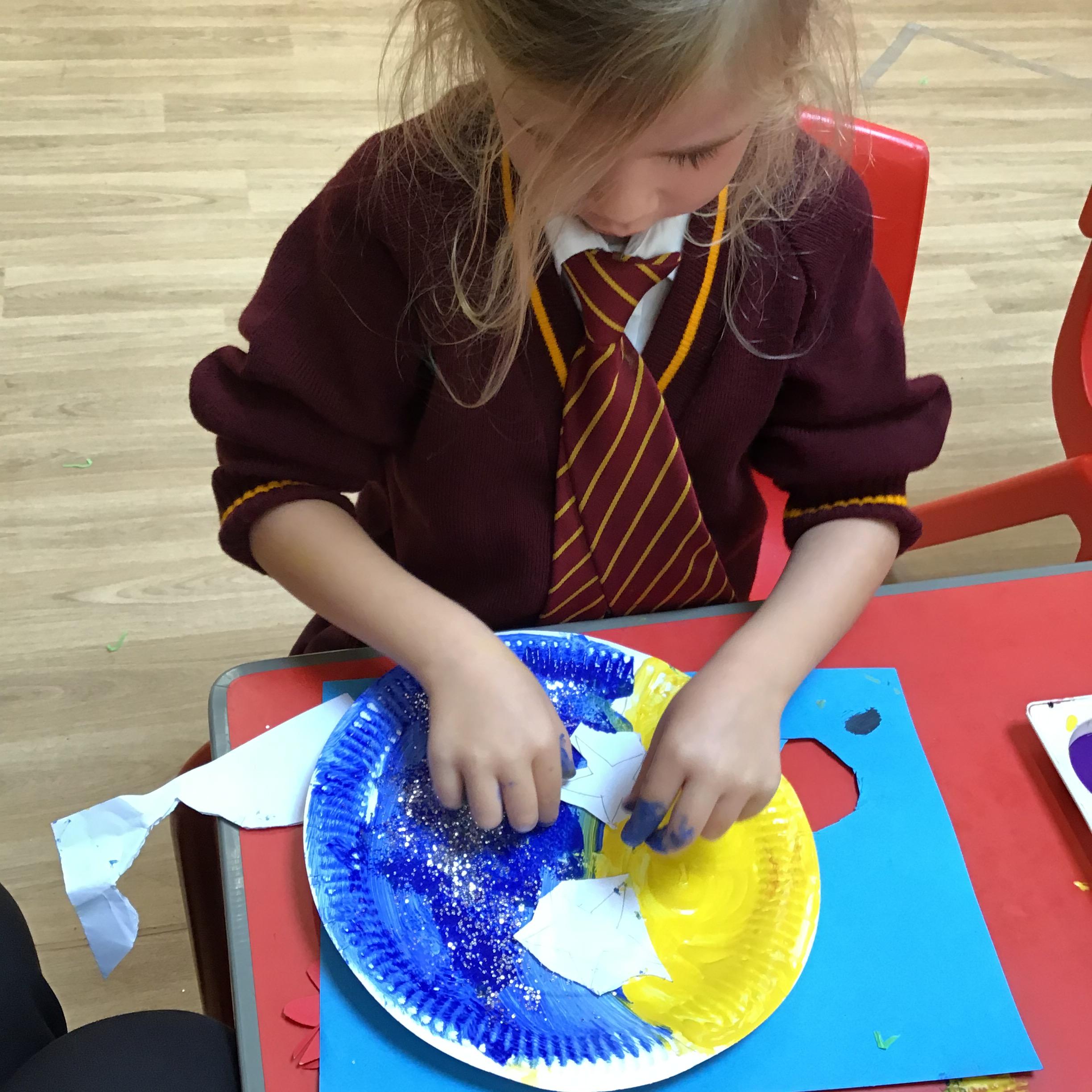 In RSE, Nursery children learnt all about God's Creation. They used a range of materials to represent each day, perfected fine motor skills, used full sentences to explain the different creations and used colours for purpose.