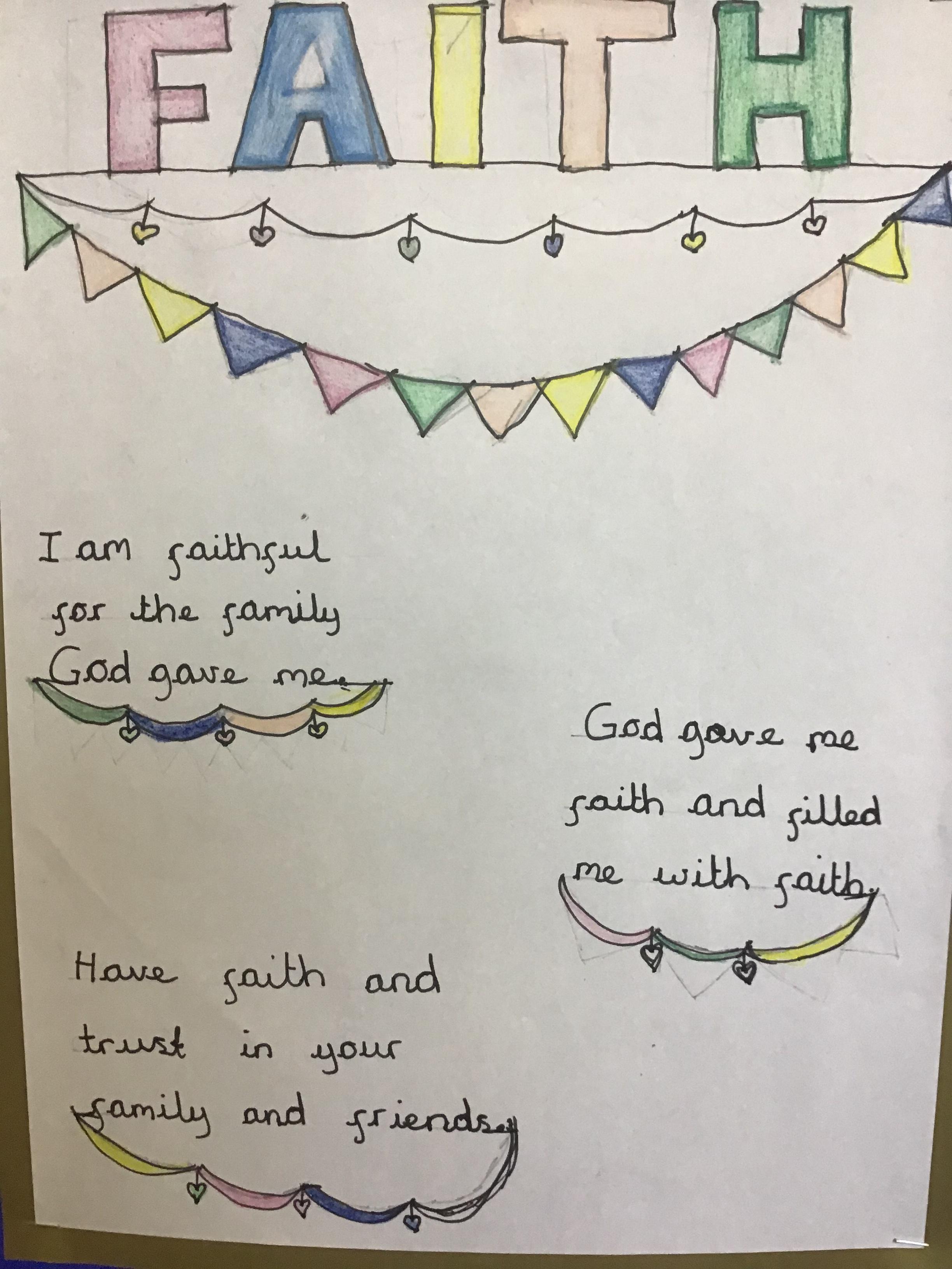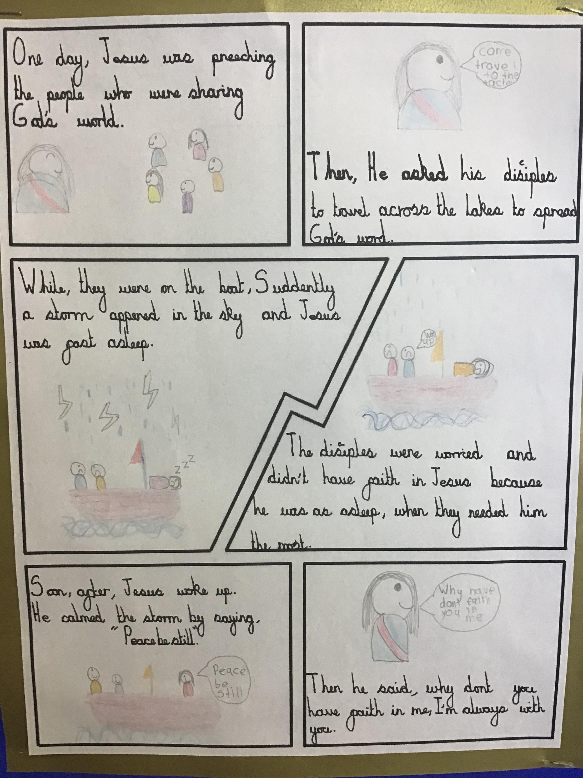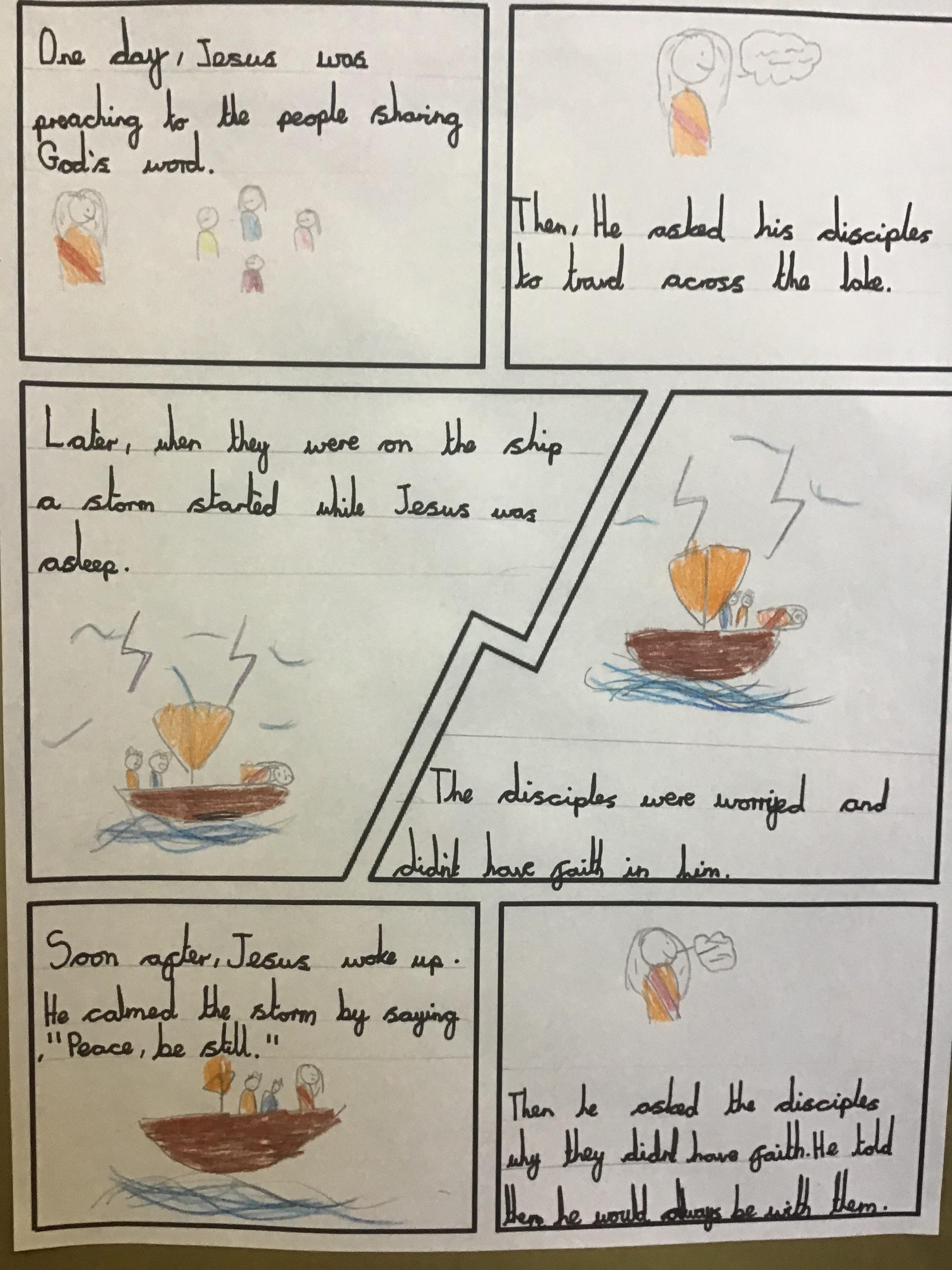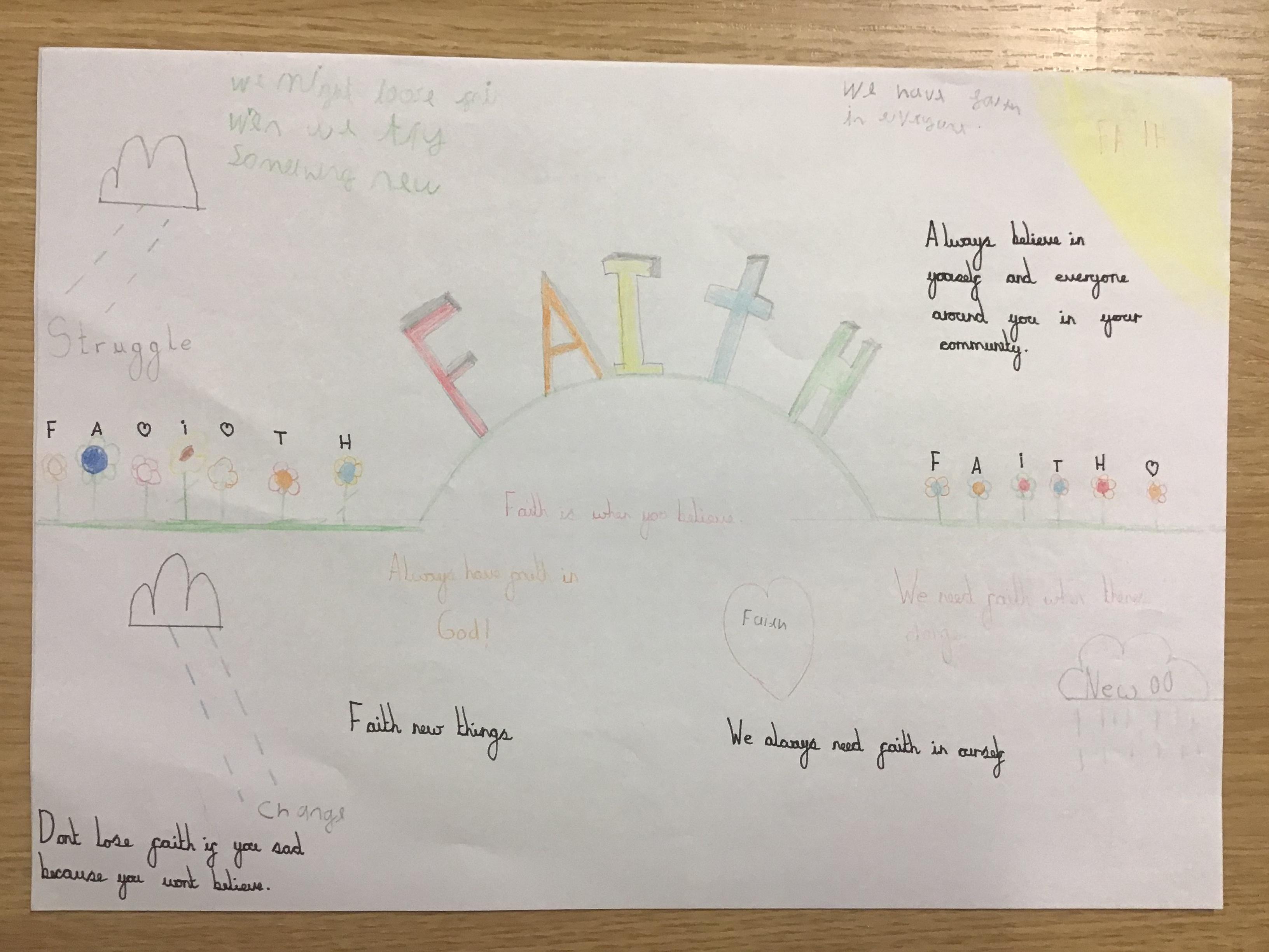 We have been learning how to have faith in ourselves and God and how we can use that faith to help us through challenging times in our lives. We looked at the Gospel of Jesus calming the storm and how the fishermen didn't have faith in him and explored what lessons could be learnt from this.