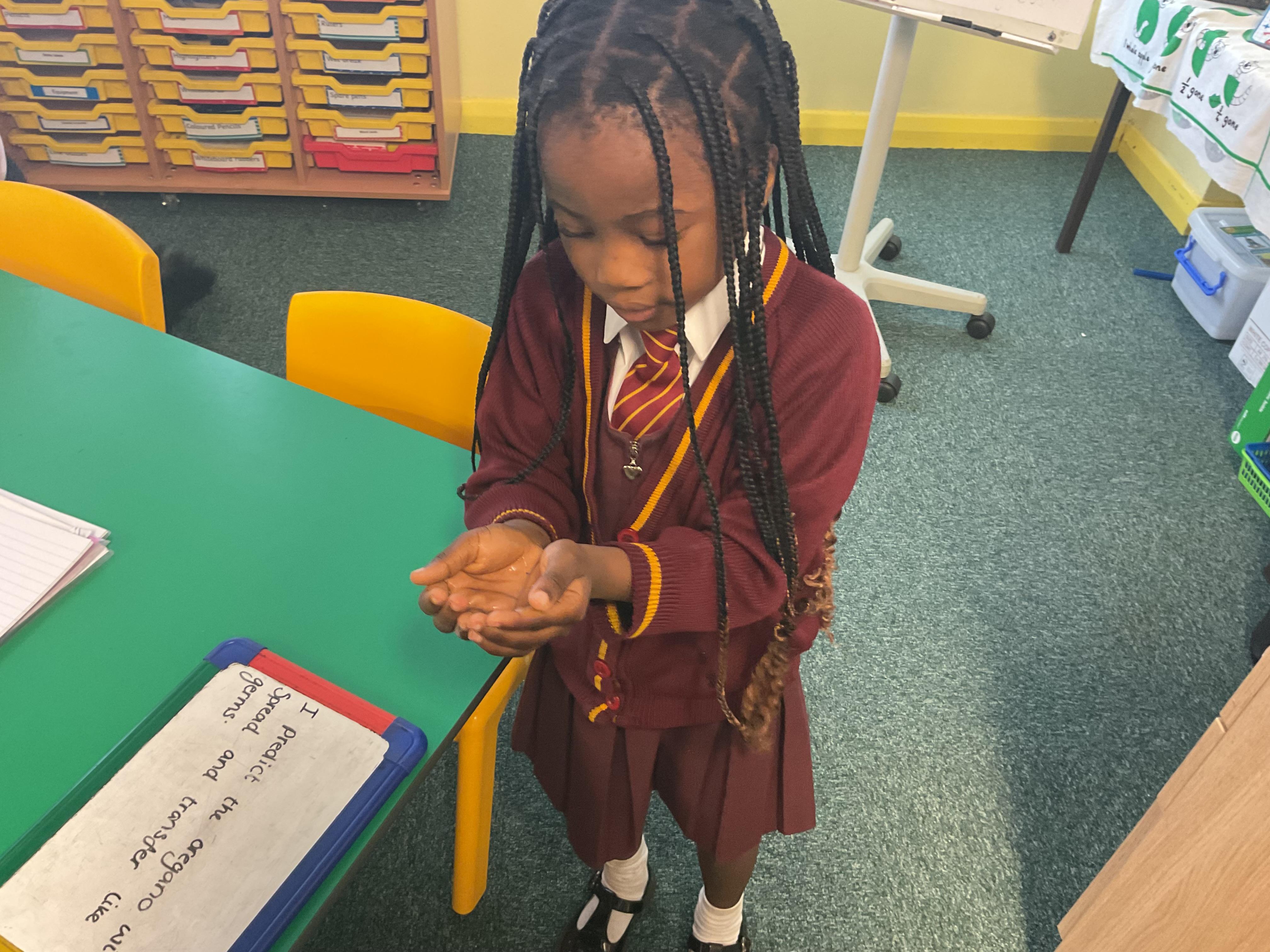 In this lesson, year 2 conducted an experiment to see how quickly germs spread, by using hand shaking and oregano to visibly see our findings.