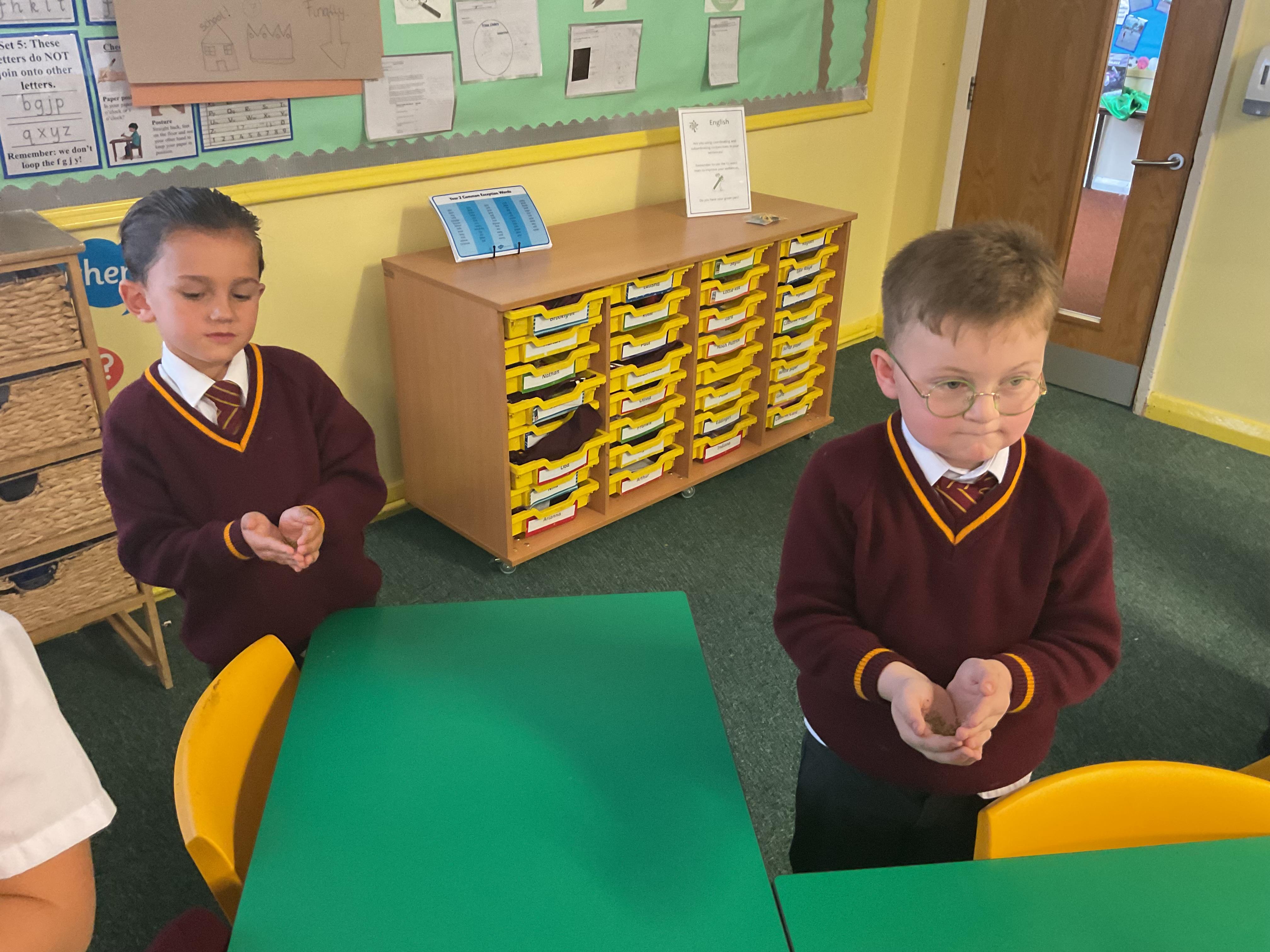 Reception children have been exploring their senses through a range of real-life objects and experiences. They were encouraged to observe, touch, smell, taste, and listen carefully, using newly taught vocabulary to describe what they discovered. This not only supported their understanding of the world around them but also helped them to develop confidence in applying new language in meaningful contexts.