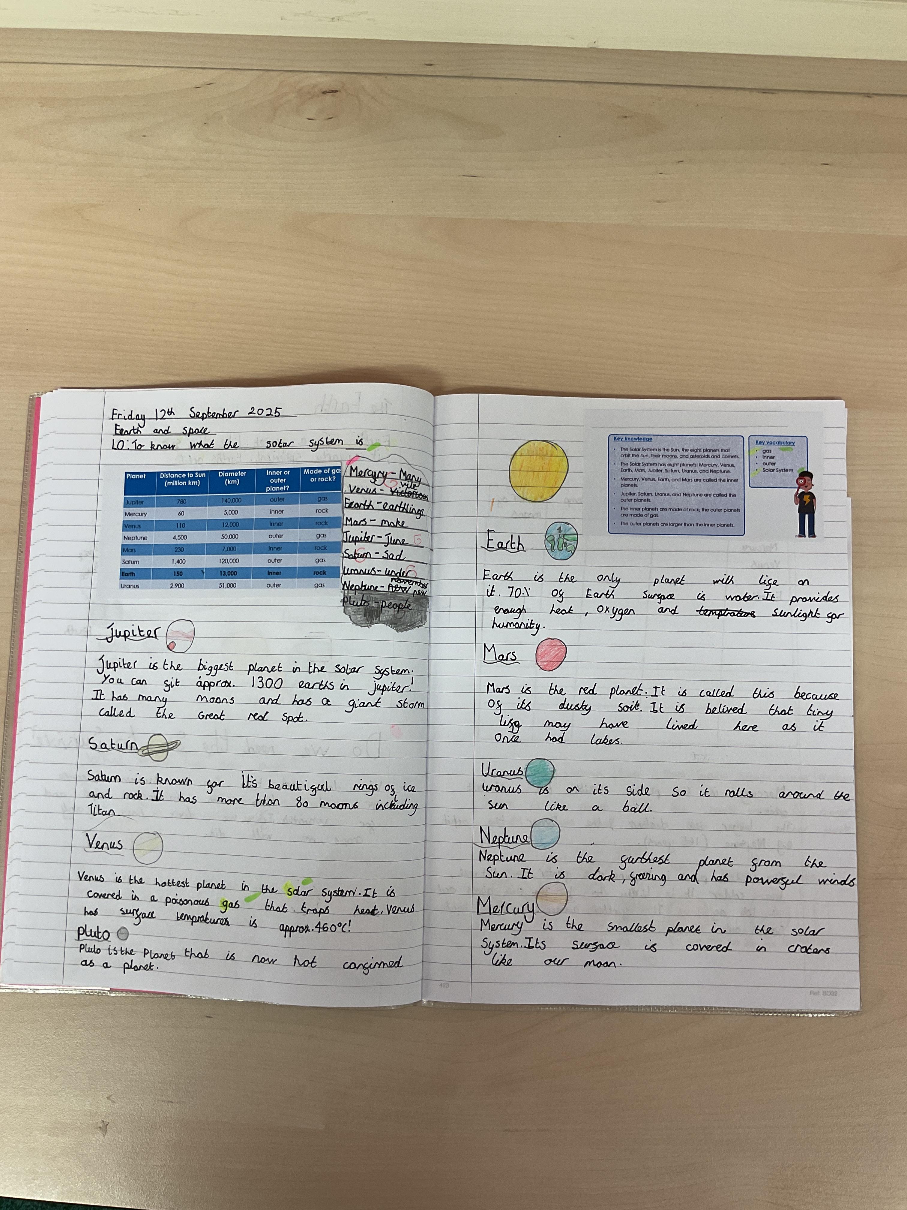 The children in Year 5 have been enjoying their science journey so far learning about Earth's orbit around the Sun, the planets in the Solar System and the planets and their moons. Take a look at some of the fantastic work the children have produced!