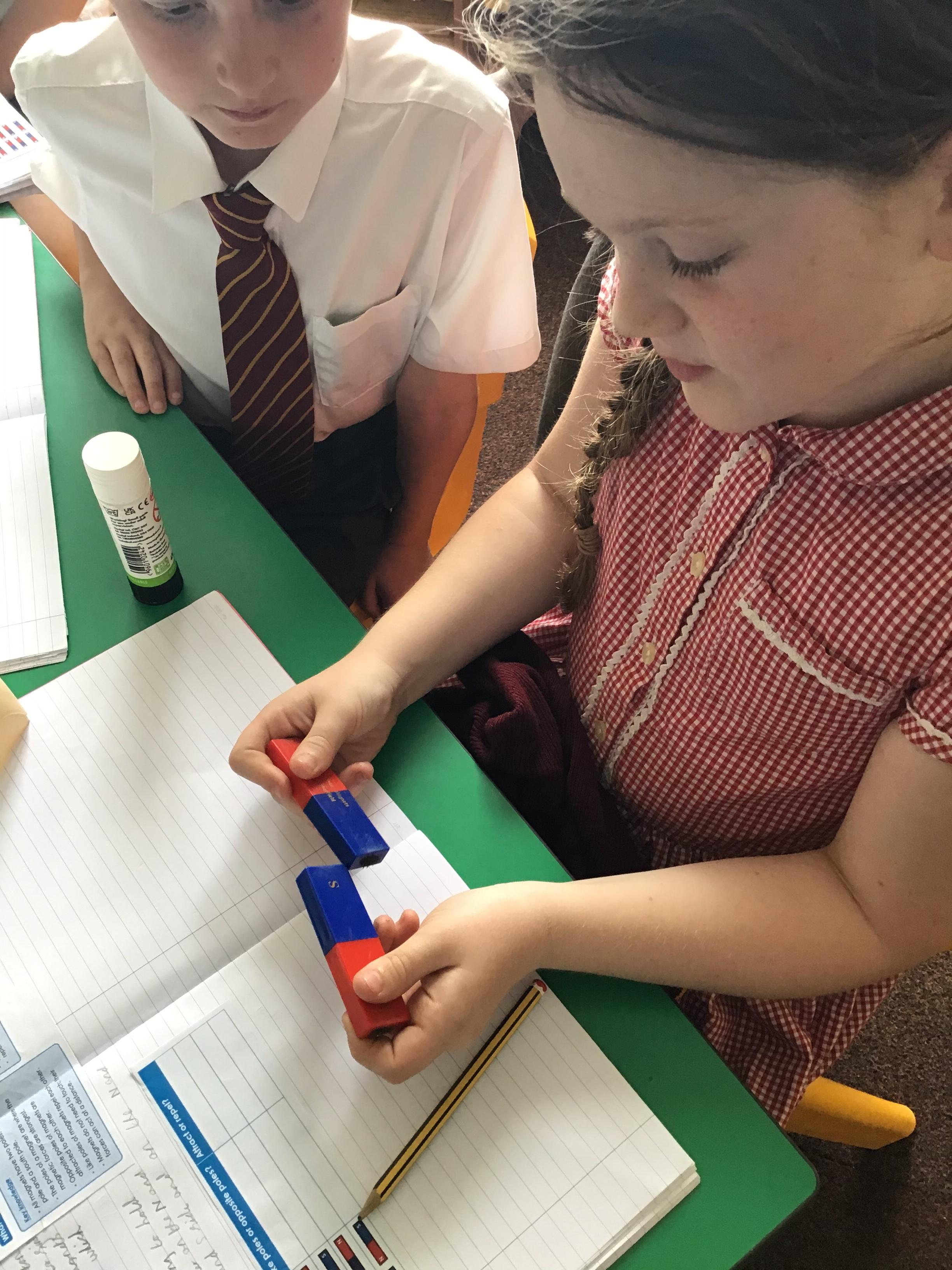 In year the children have been getting better at understanding what magnets are, and they behave. The children enjoyed conducting a small experiment to create a method and a conclusion to their discoveries about ‘like and opposite’ poles and if they ‘repelled or attracted’.