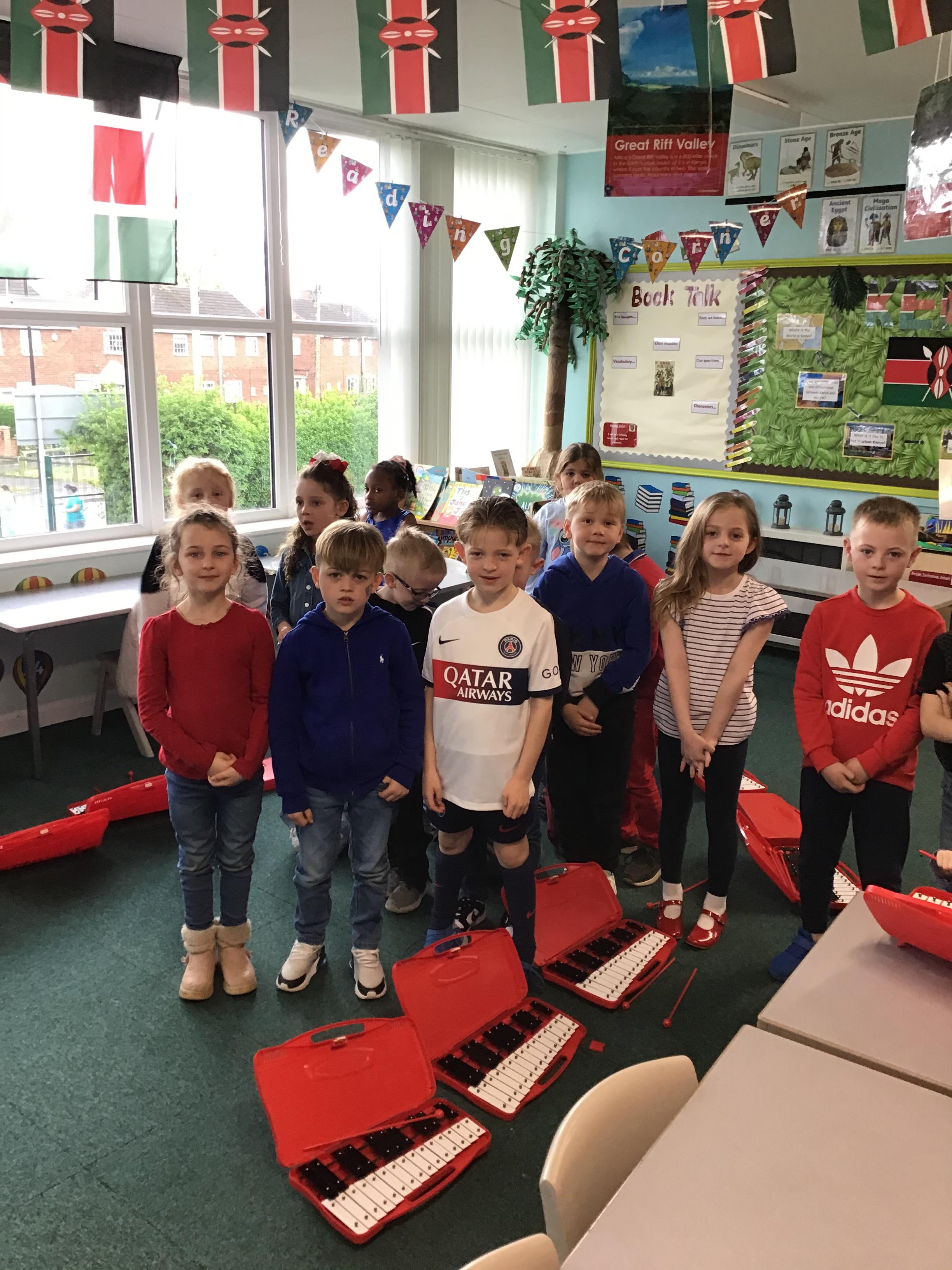 They used recorders and glockenspiels to perform the song, reading the music and following the notes. They then learnt how to say their names in French, exploring numbers, days of the week and colours.