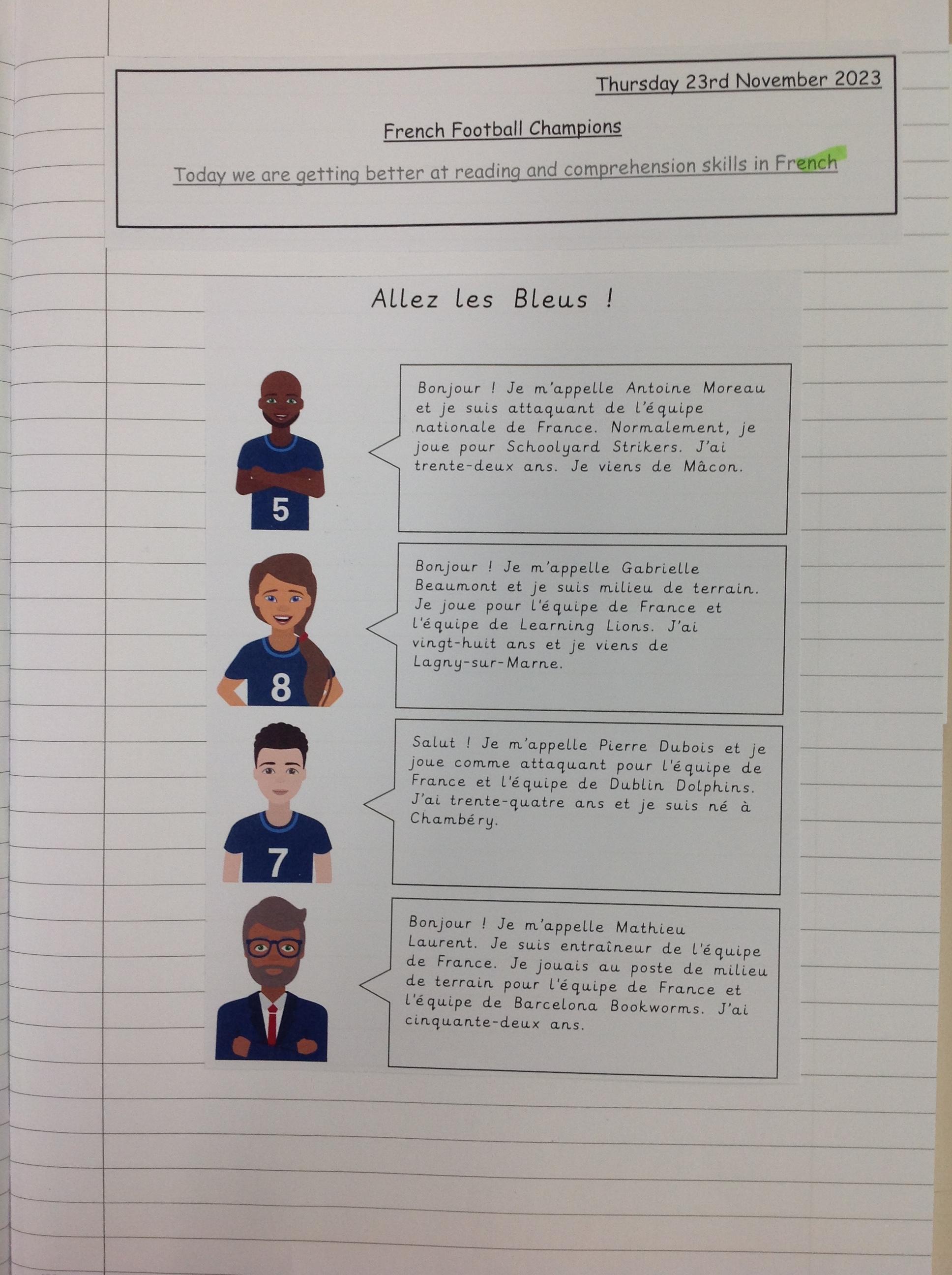 Year 6 now know football vocabulary in French, footballer profiles, where footballers come from and created their own footballer profile in French