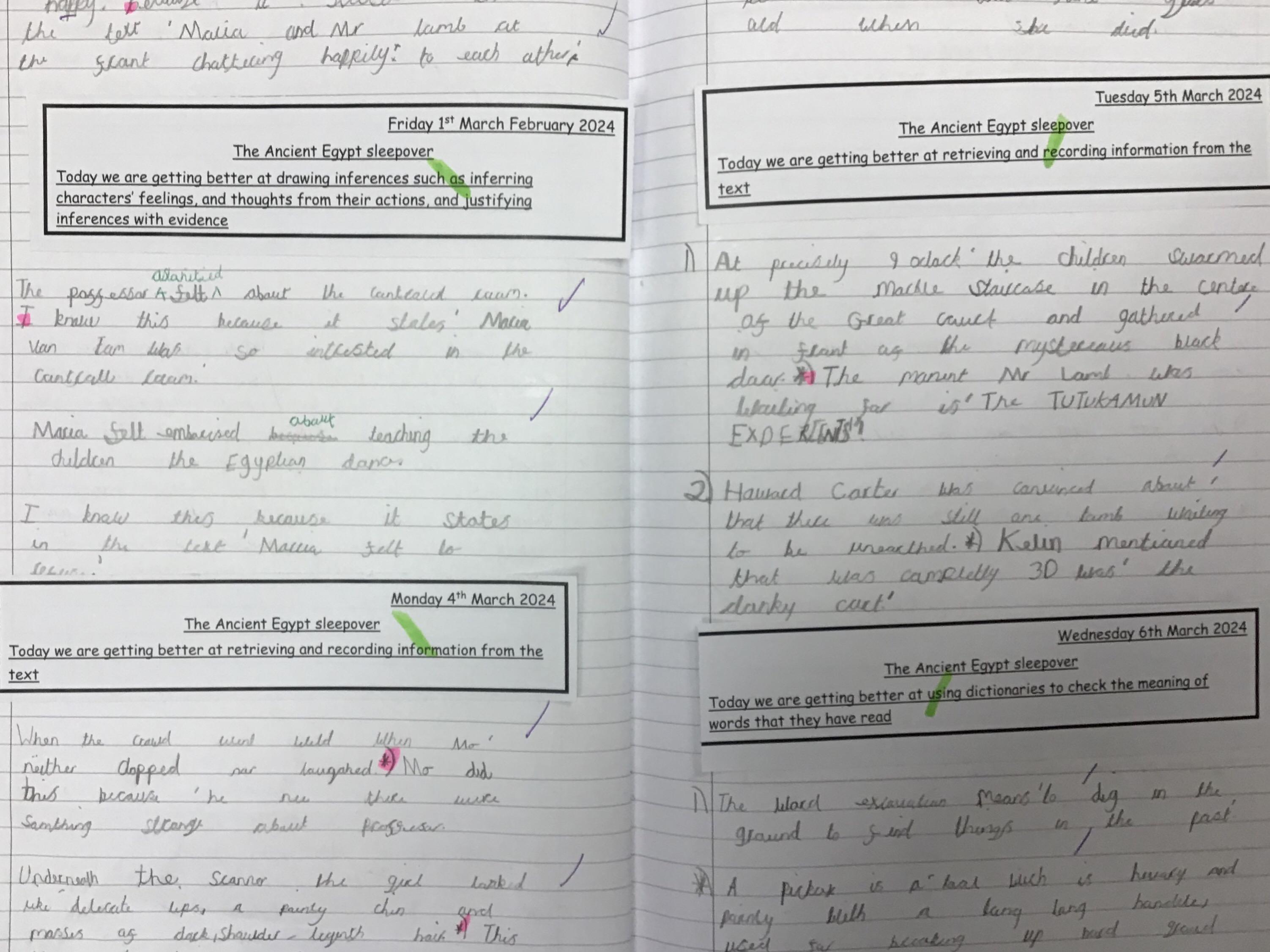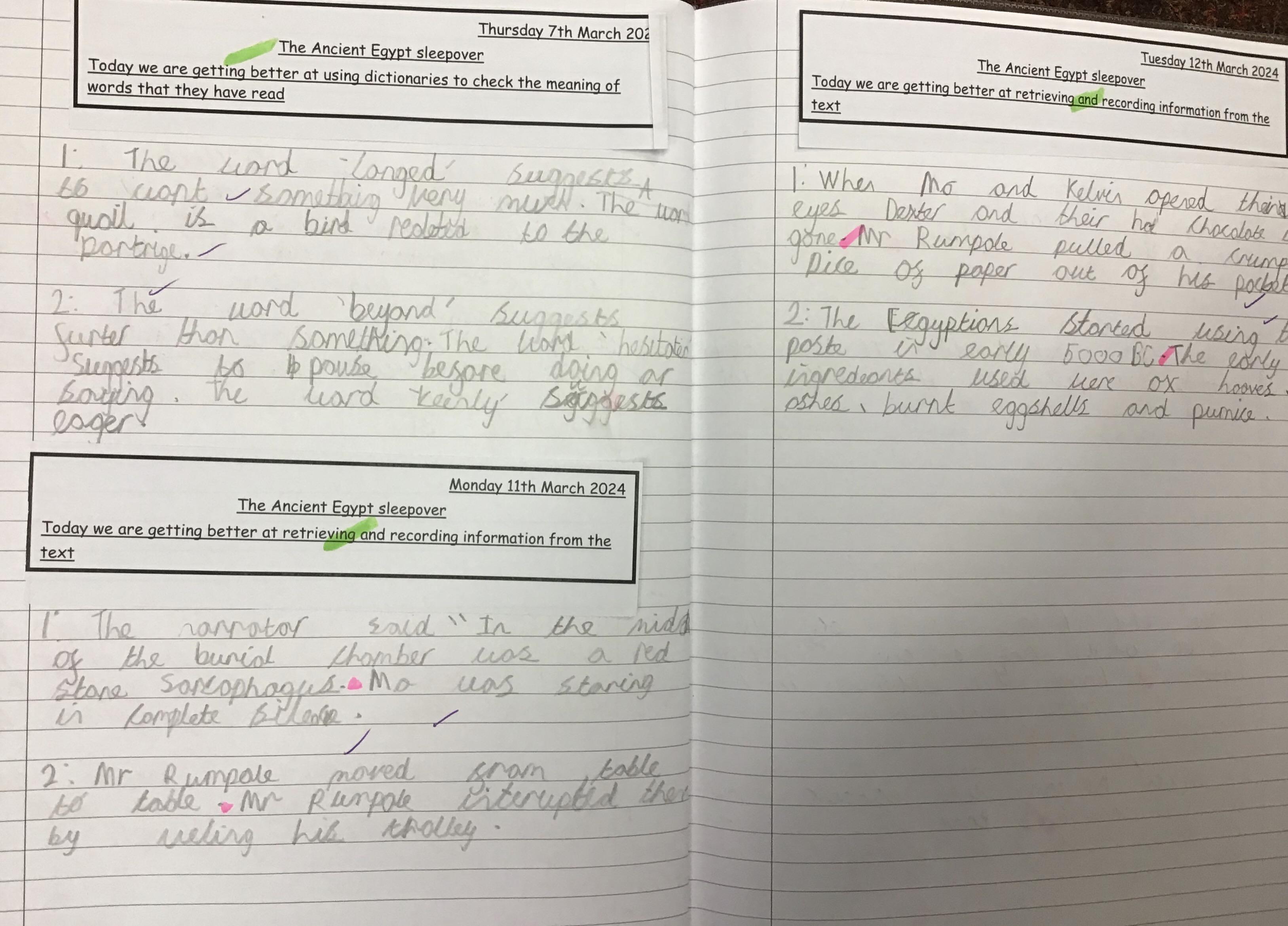 In Year 3, the children have enjoyed reading Them Ancient Egypt Sleepover’, and building on their comprehensive skills such as inferring from the text using evidence, using dictionaries to check meaning of words, and predicting what might happen in the text.