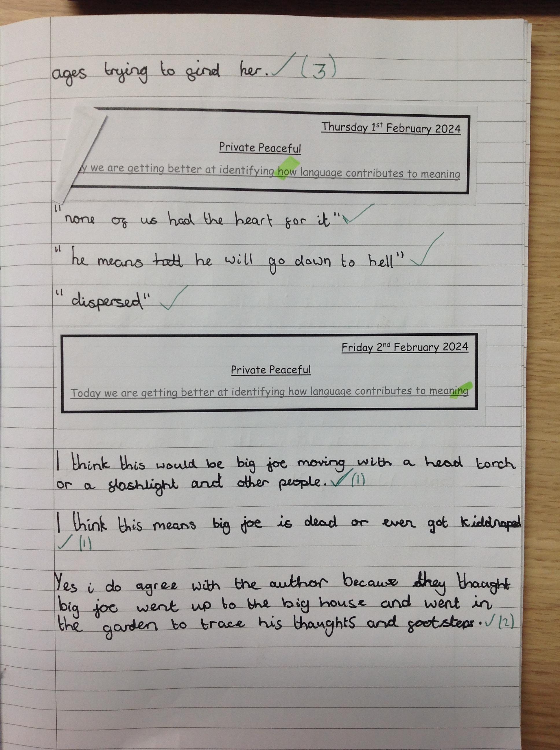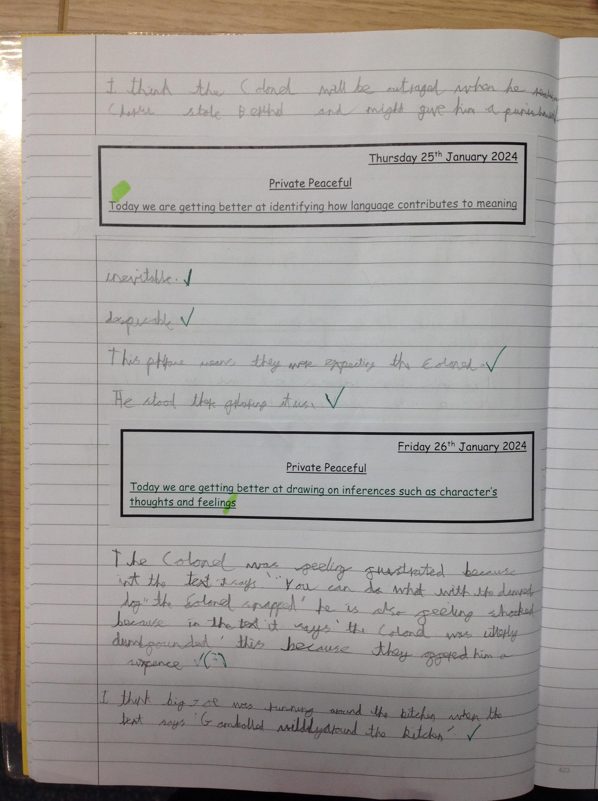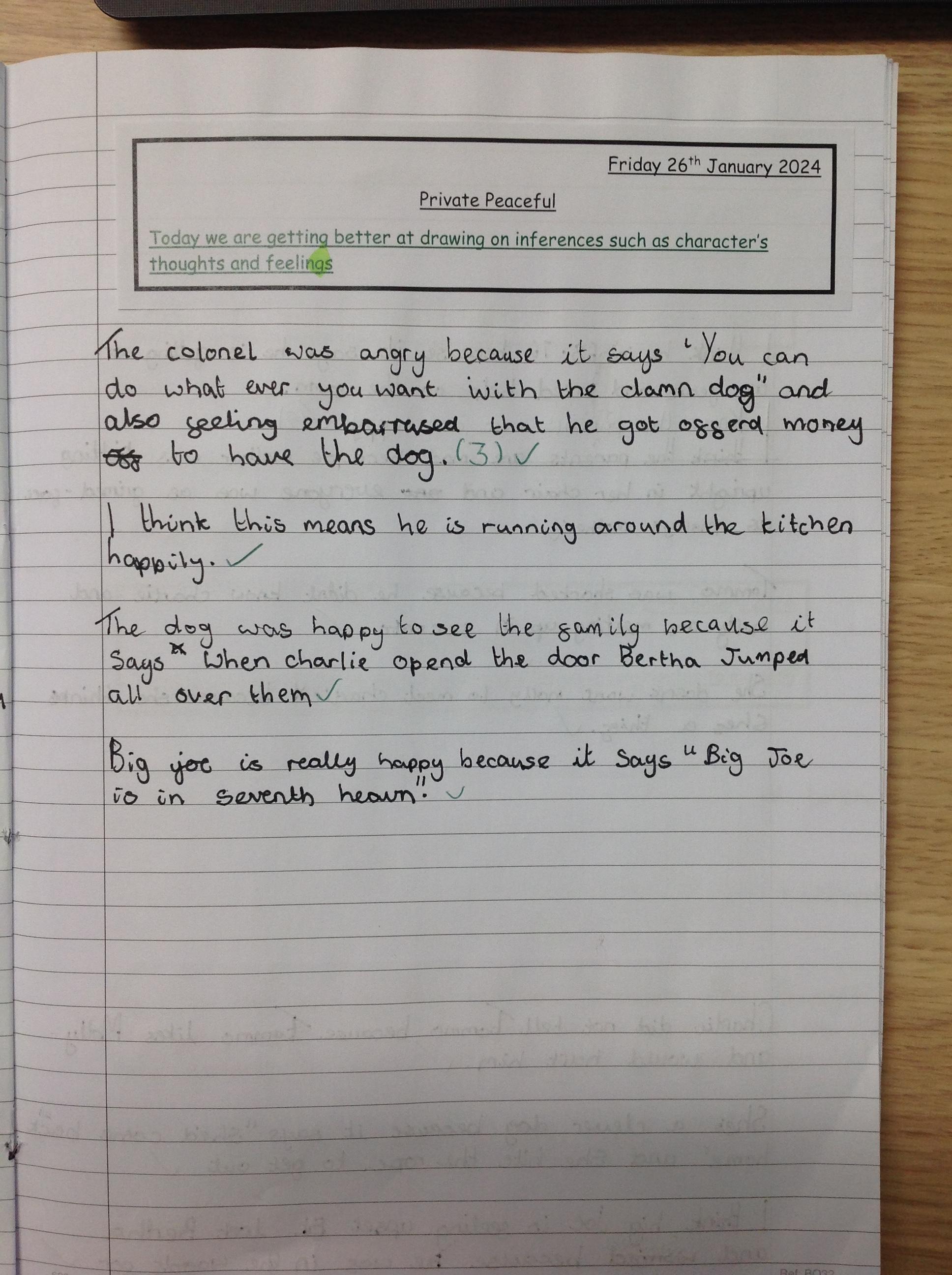 Year 6 enjoyed reading Private Peaceful this half term as it provided lots of information relating to our topic