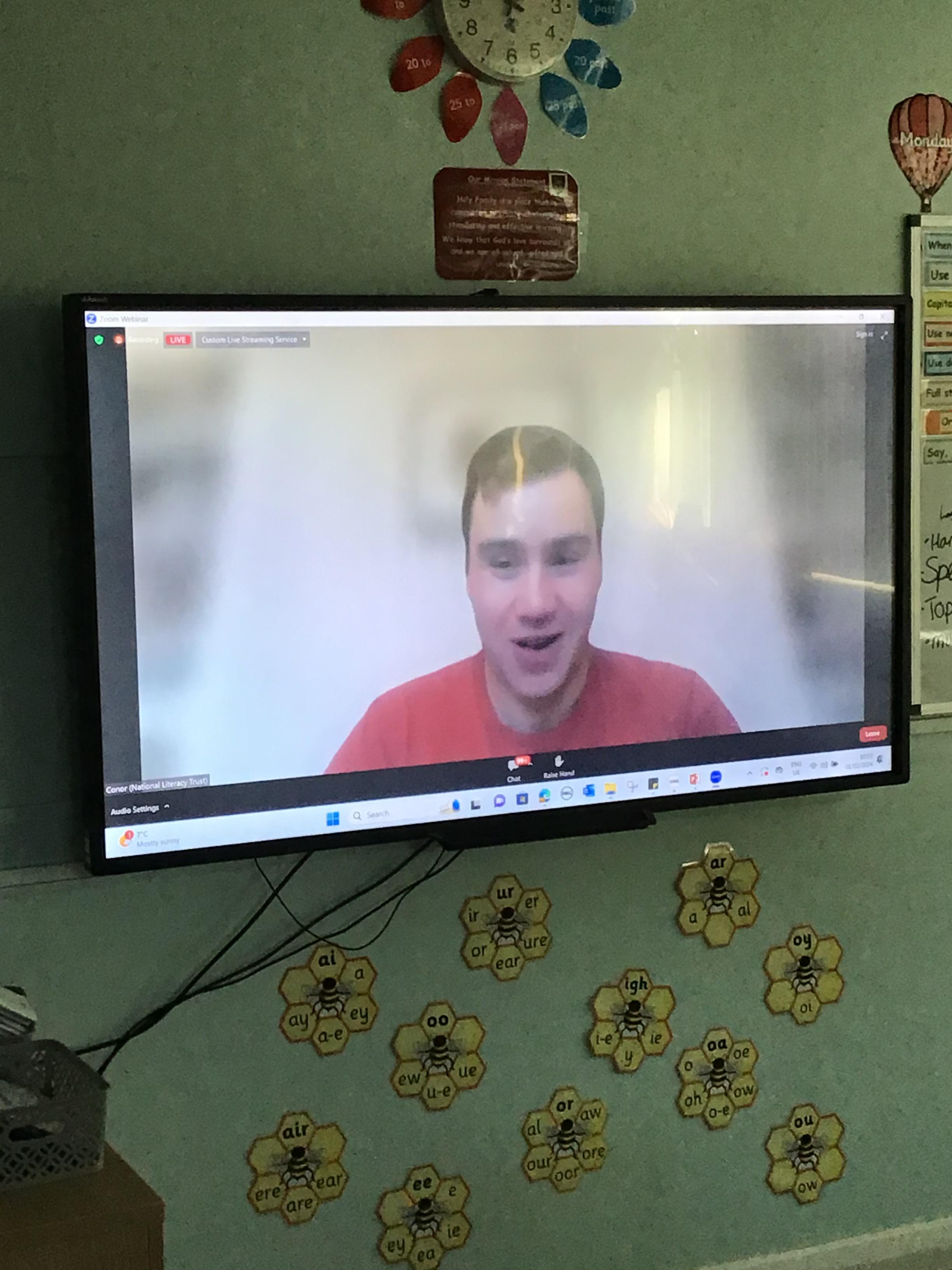 Year 2- National Literacy Trust author event. They enjoyed watching the National Literacy Trust #take10toread author event. We listened to a story written by Ziggy Hanoar and illustrated by Ollie Silvester. They discussed why they chose to write and illustrate the story the way they did and we listened to them read the story.