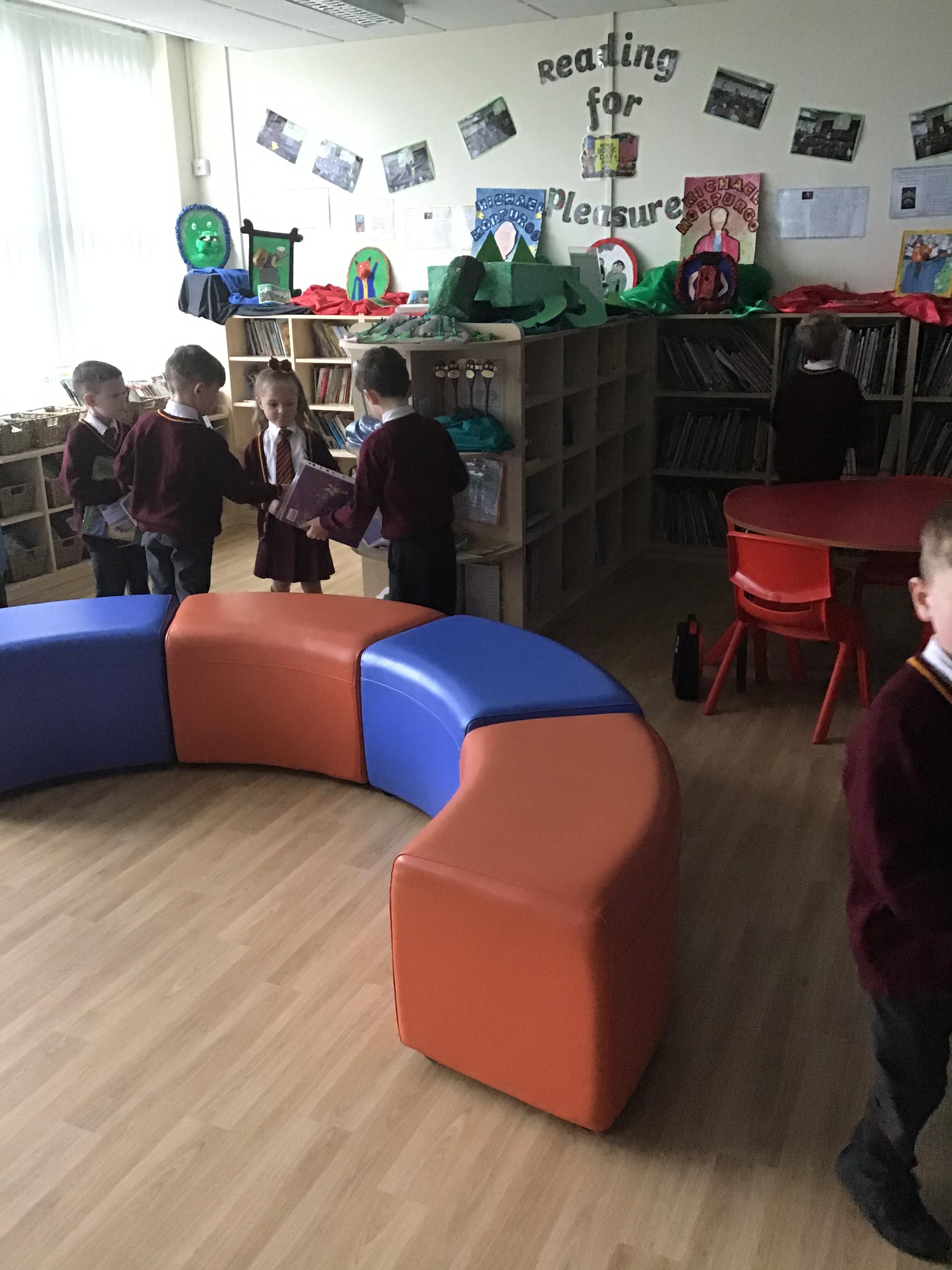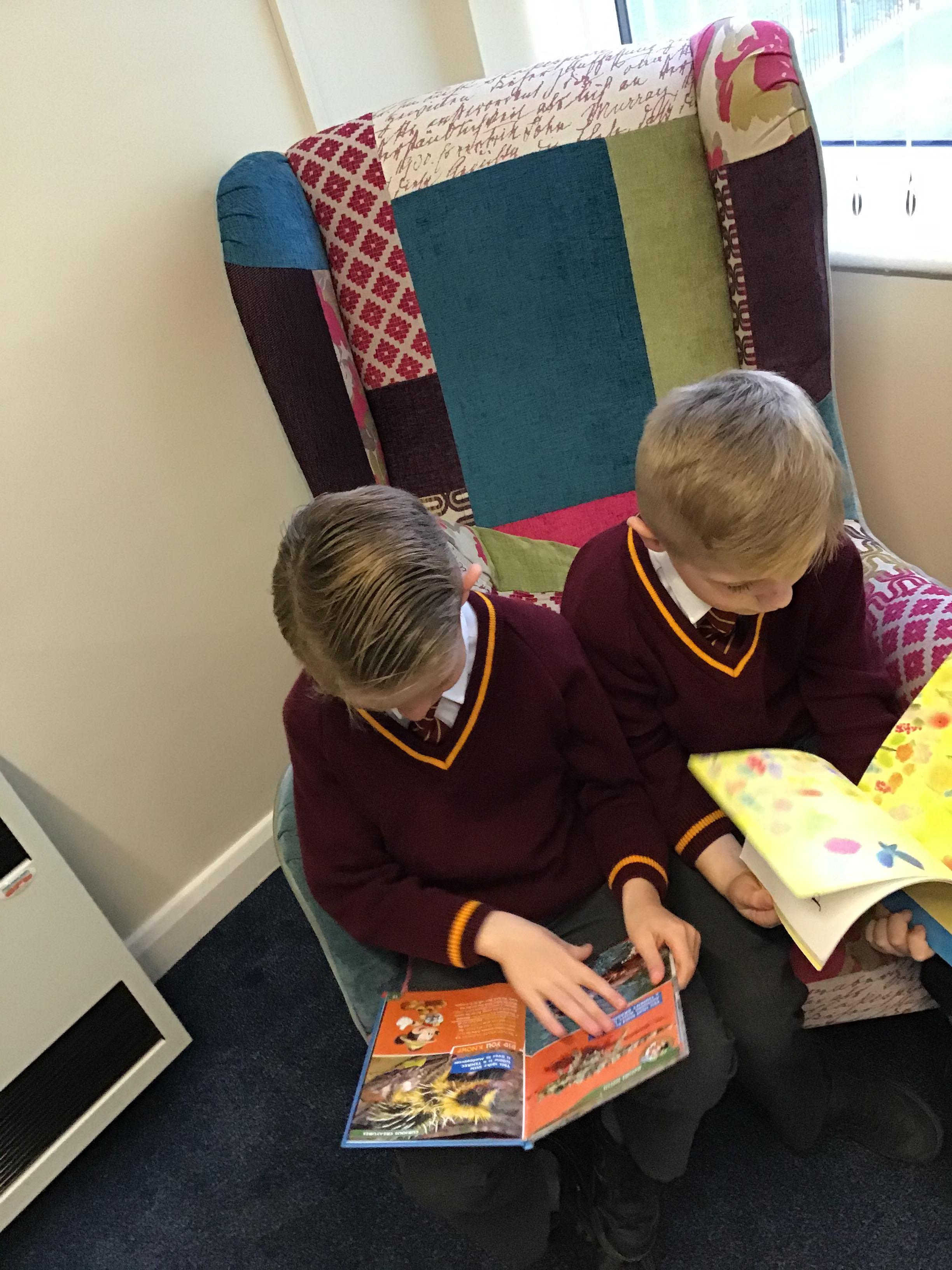 Year 2 enjoy visiting the reading room weekly. The children select a book to 'read for pleasure' they enjoy exploring different genres and sharing stories together in the reading room, particularly the soft cushion seats!