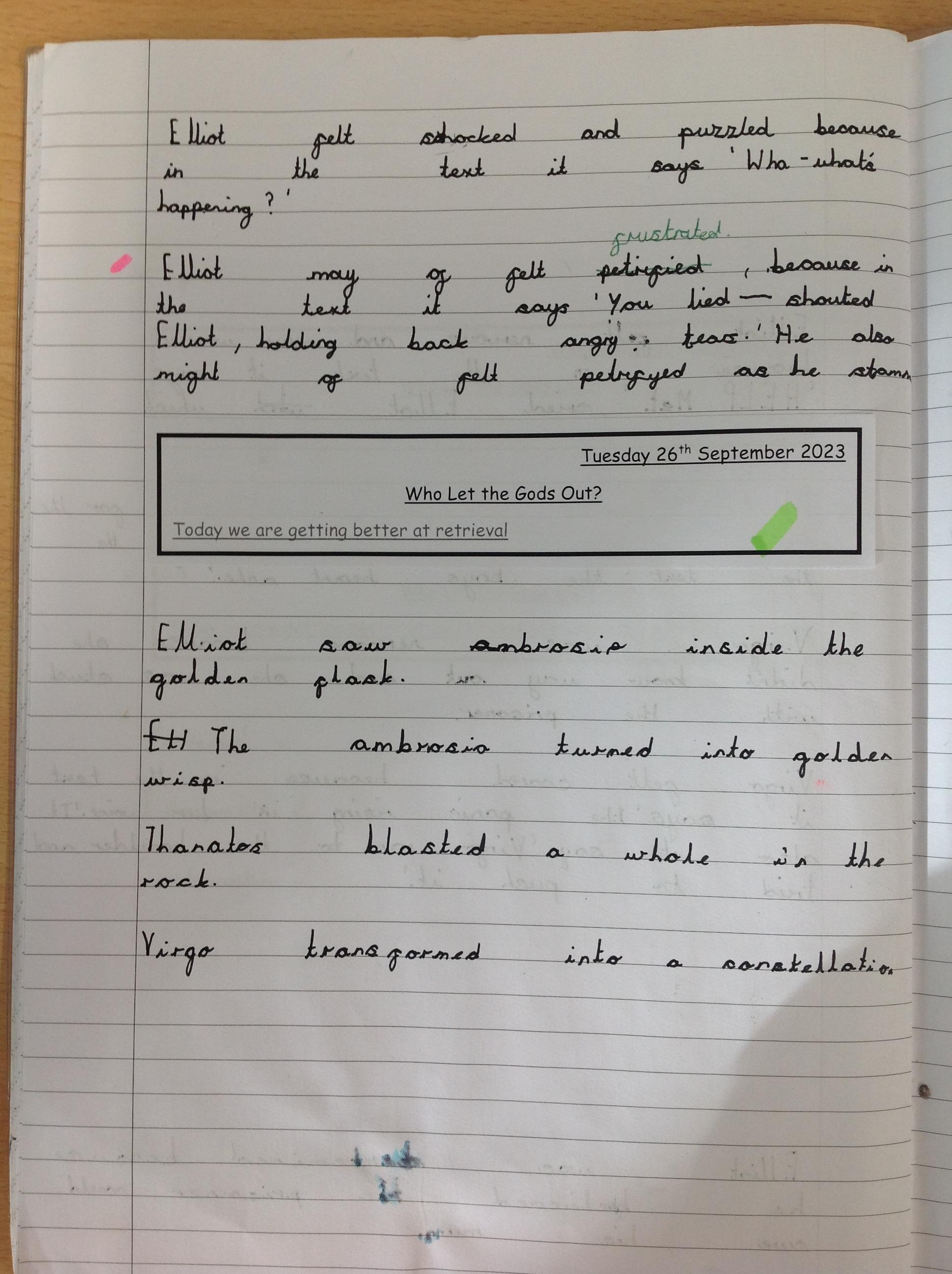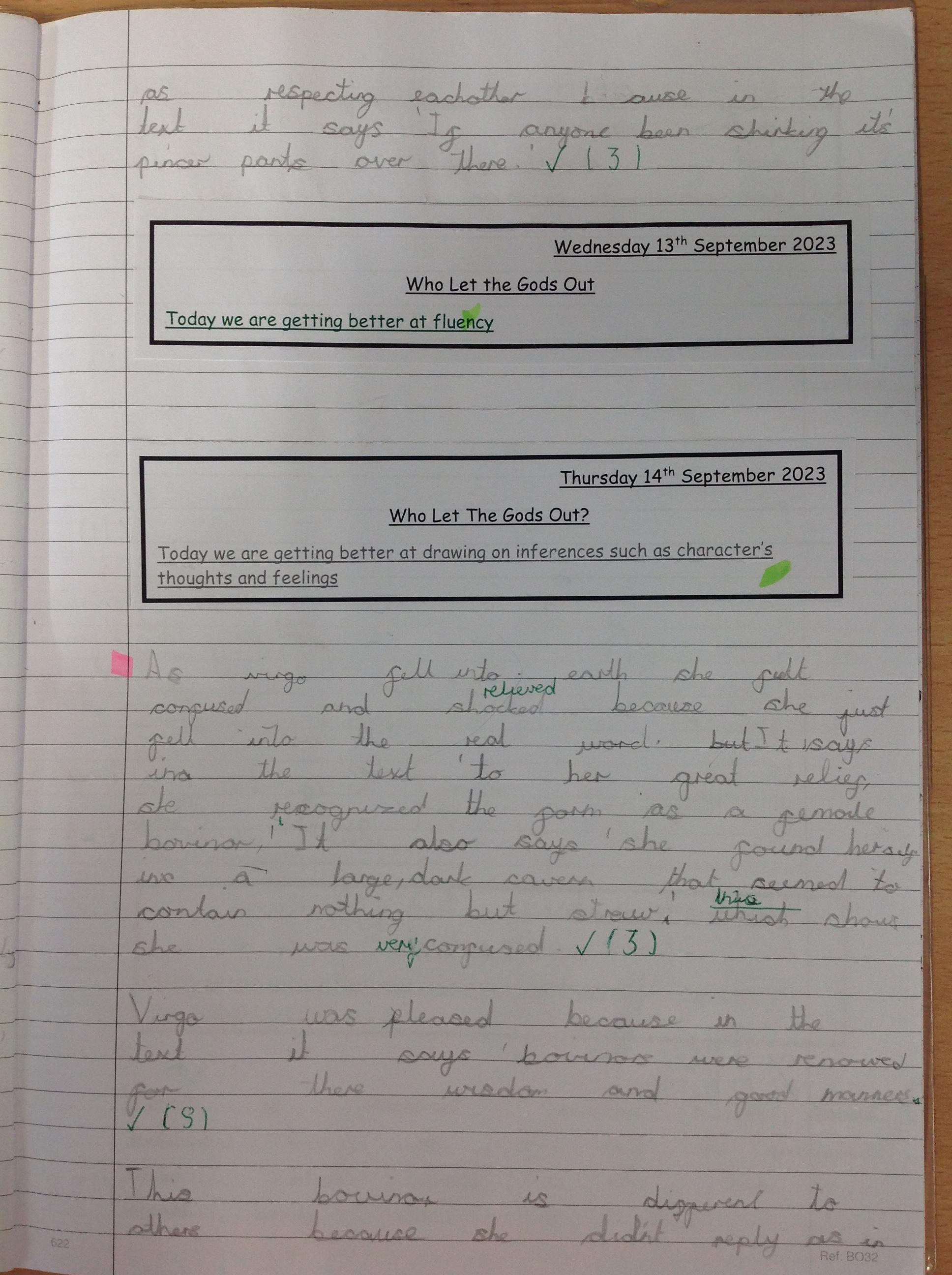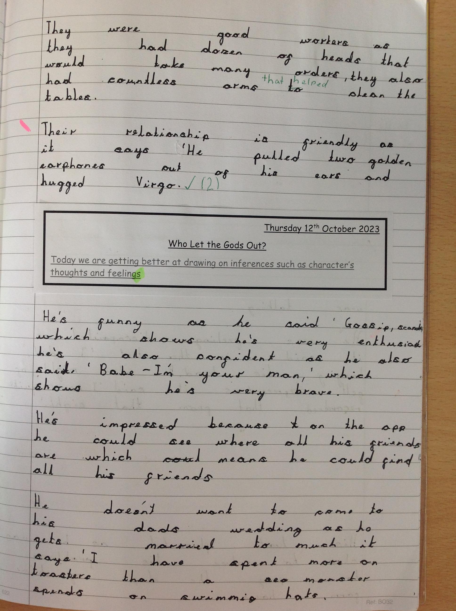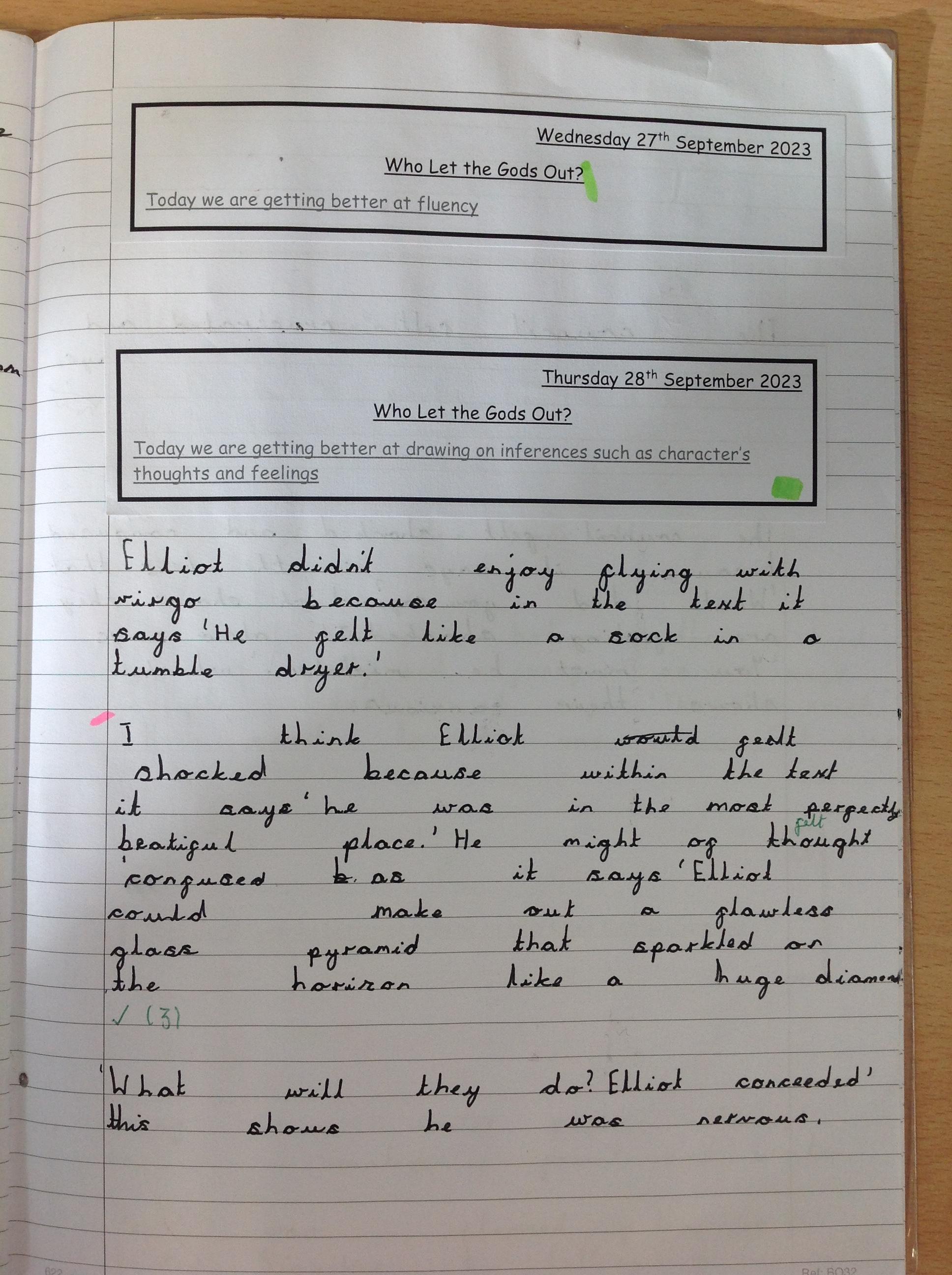 In Book Talk, Year 6 have really enjoyed reading and answering a variety of comprehension questions on our class book; Who Let the Gods Out? by Maz Evans...
