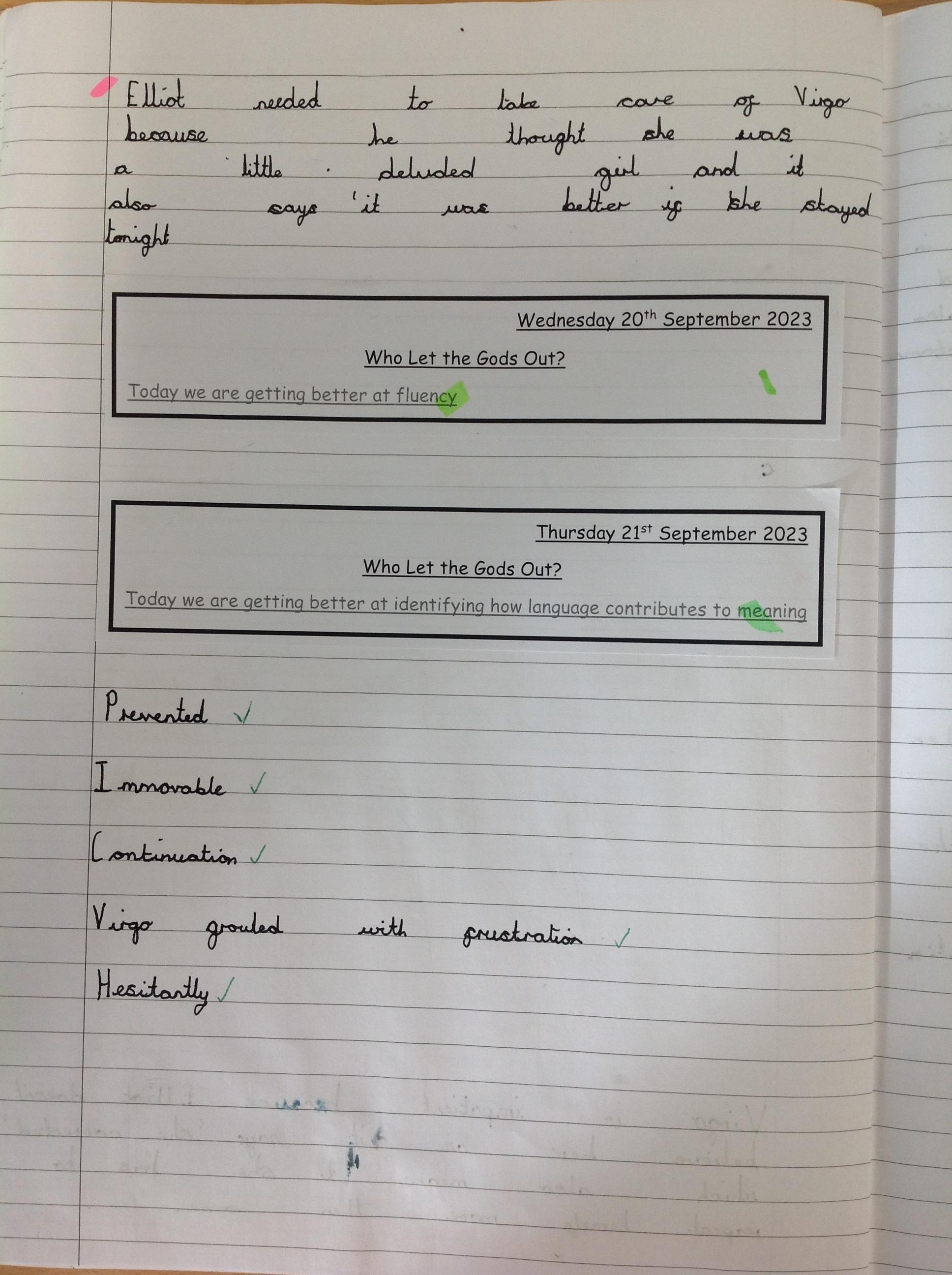 Before reading the text, Year 5 explored what they could infer from the front cover and blurb of the book and made predictions on what they were going to read. They then identified key characters and events and discussed their first thoughts and questions they had based of the text.