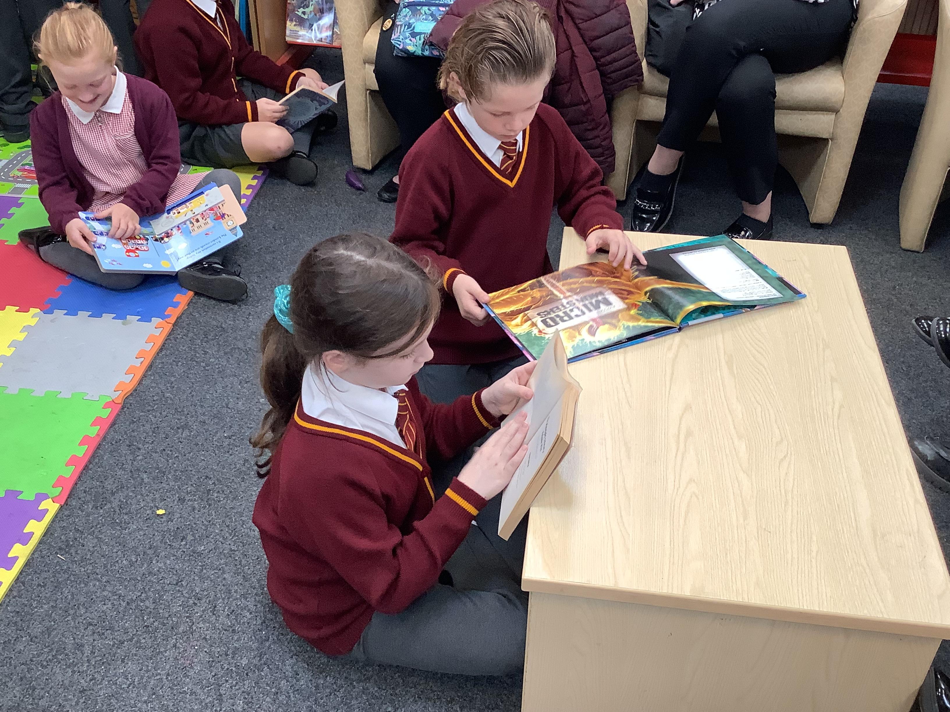 Reading Ambassadors promote reading and reading for pleasure across the school. They will do this by organising a range of book themed activities, keeping our school and class libraries up to date with new authors and books, helping organise author visits, helping organise visits to our local libraries as well as hosting book quizzes and sharing recommendations. Reading ambassadors help to lead book club meetings, lunchtime reading and book swap.
