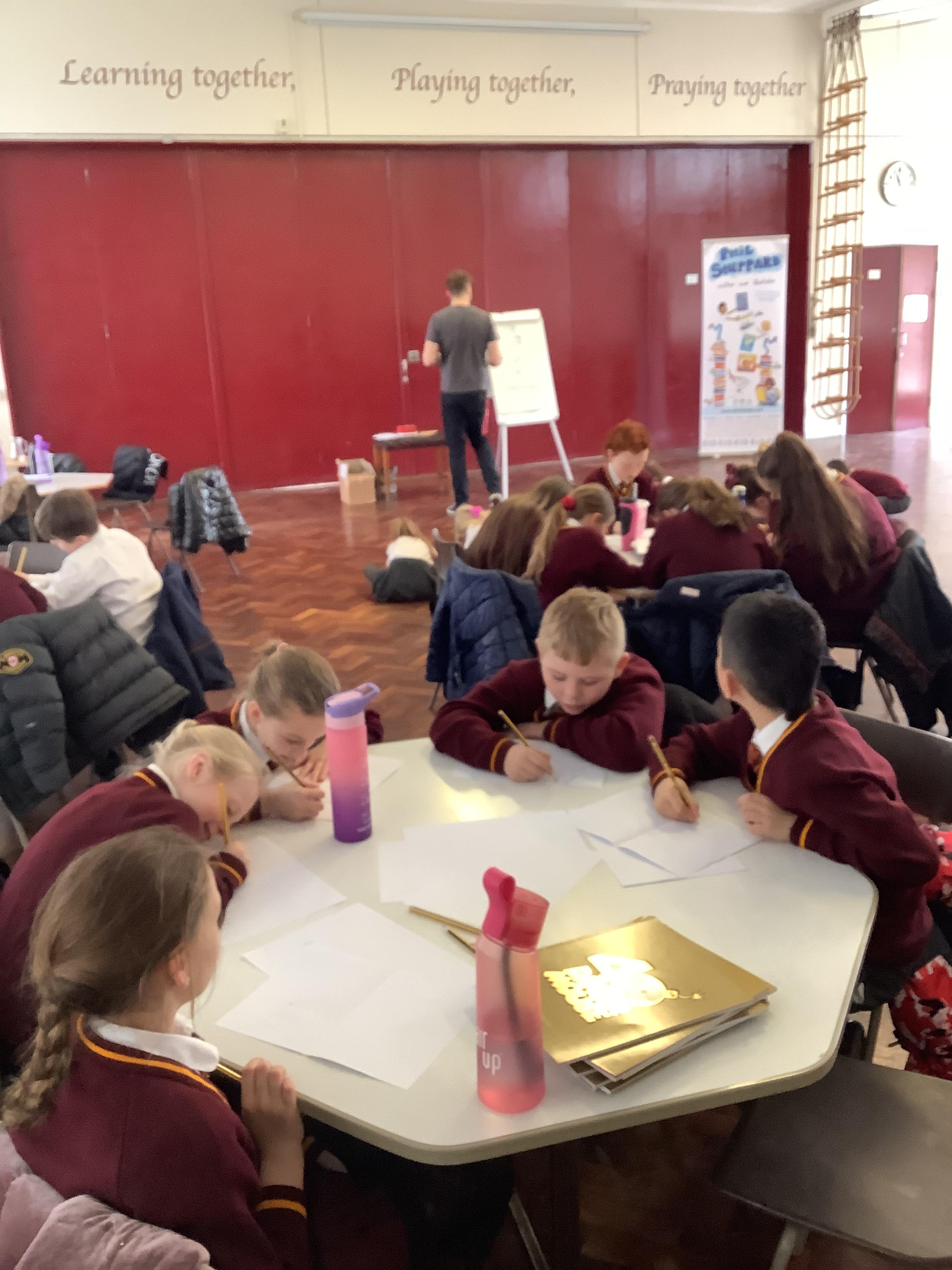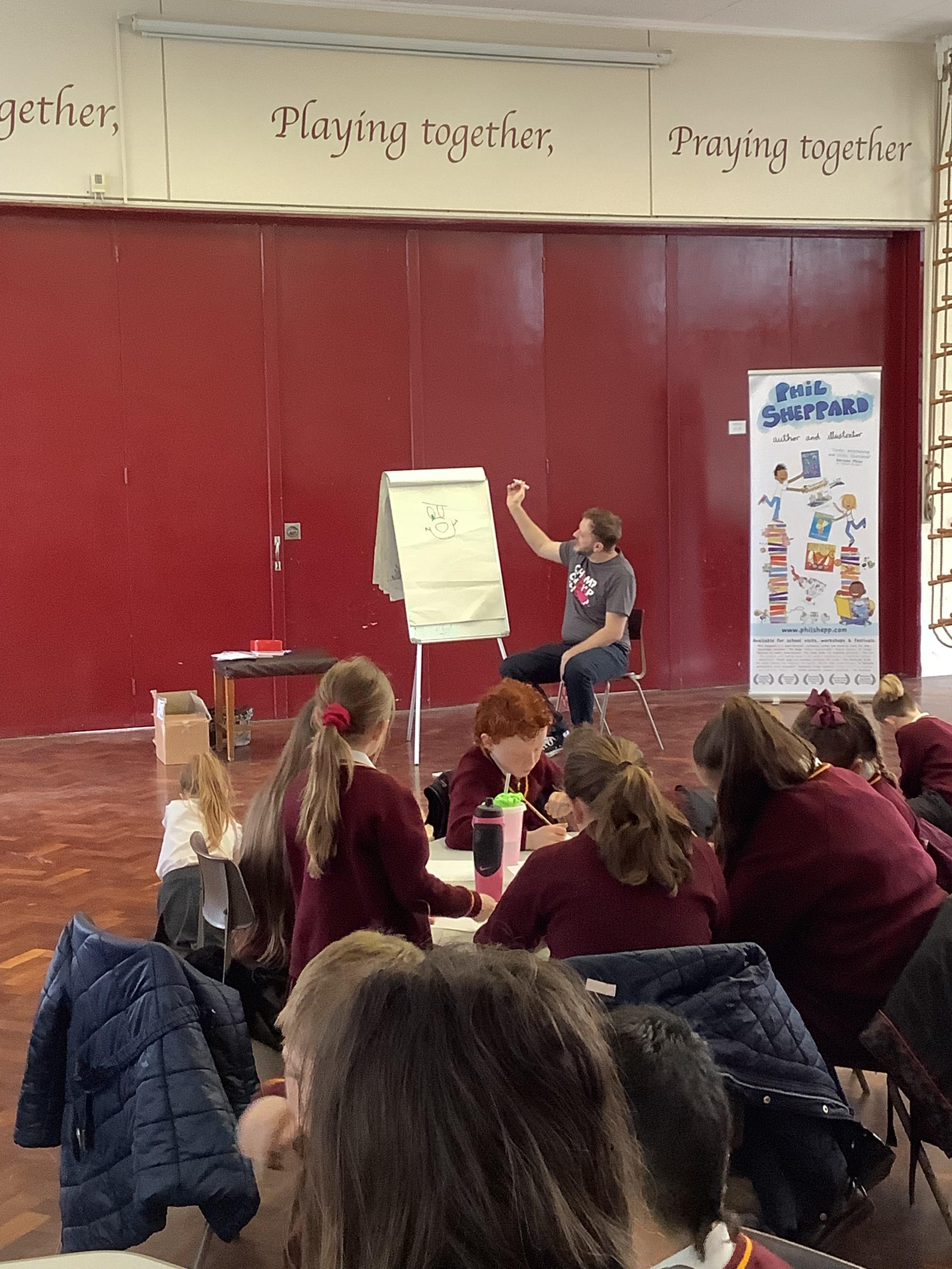 Year 4 had an author visit from Philip Sheppard. He shared books he had written and illustrated, and even gave us a sneak peek into the new book he’s currently working on. The children completed a draw along with Philip Sheppard, which shows we may have some future illustrators at Holy Family.