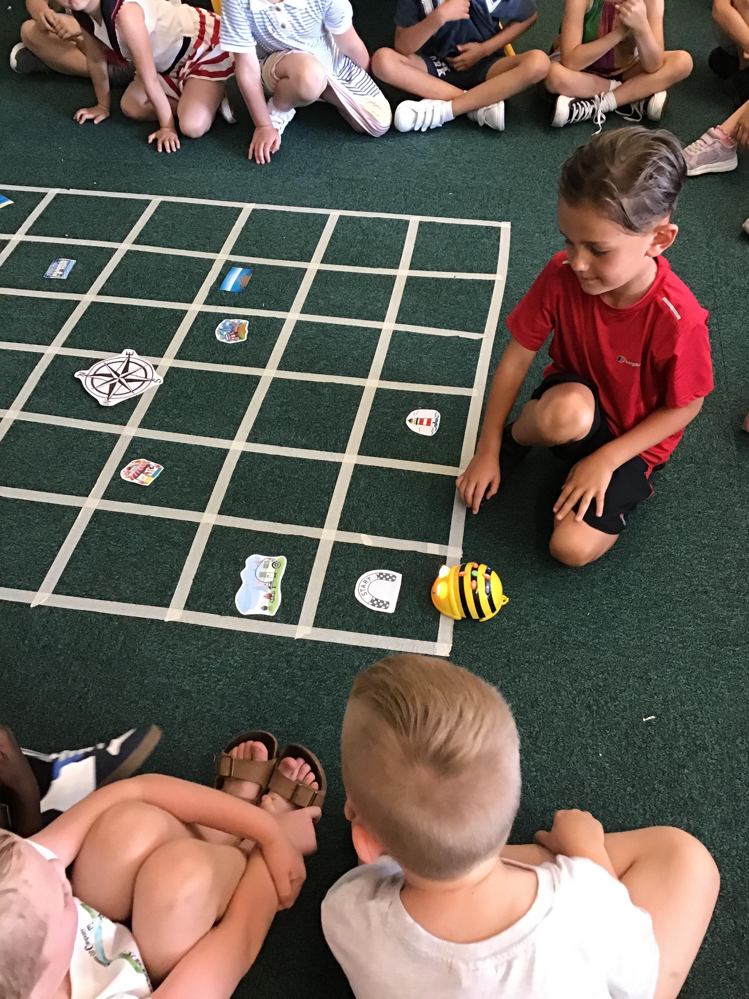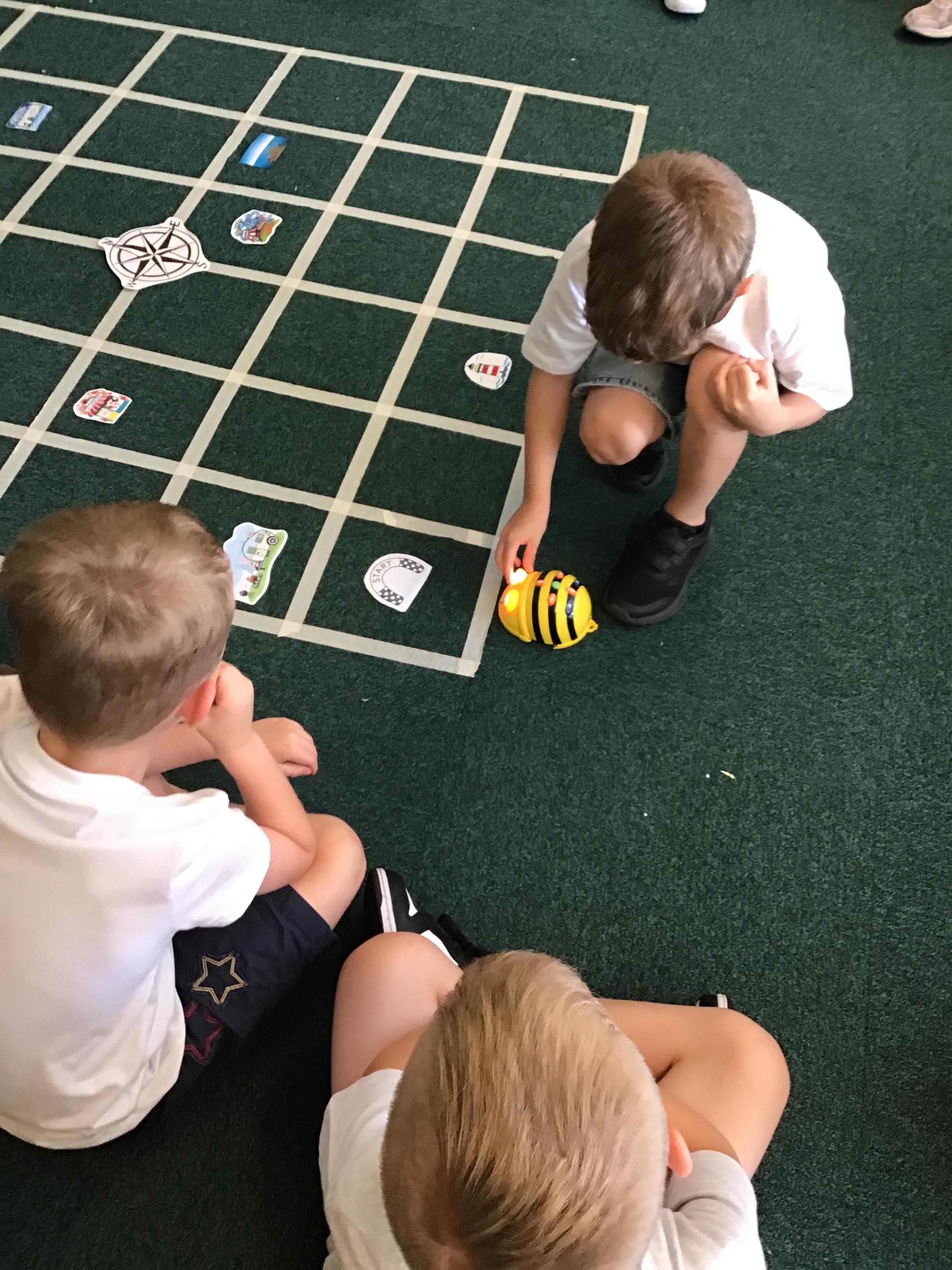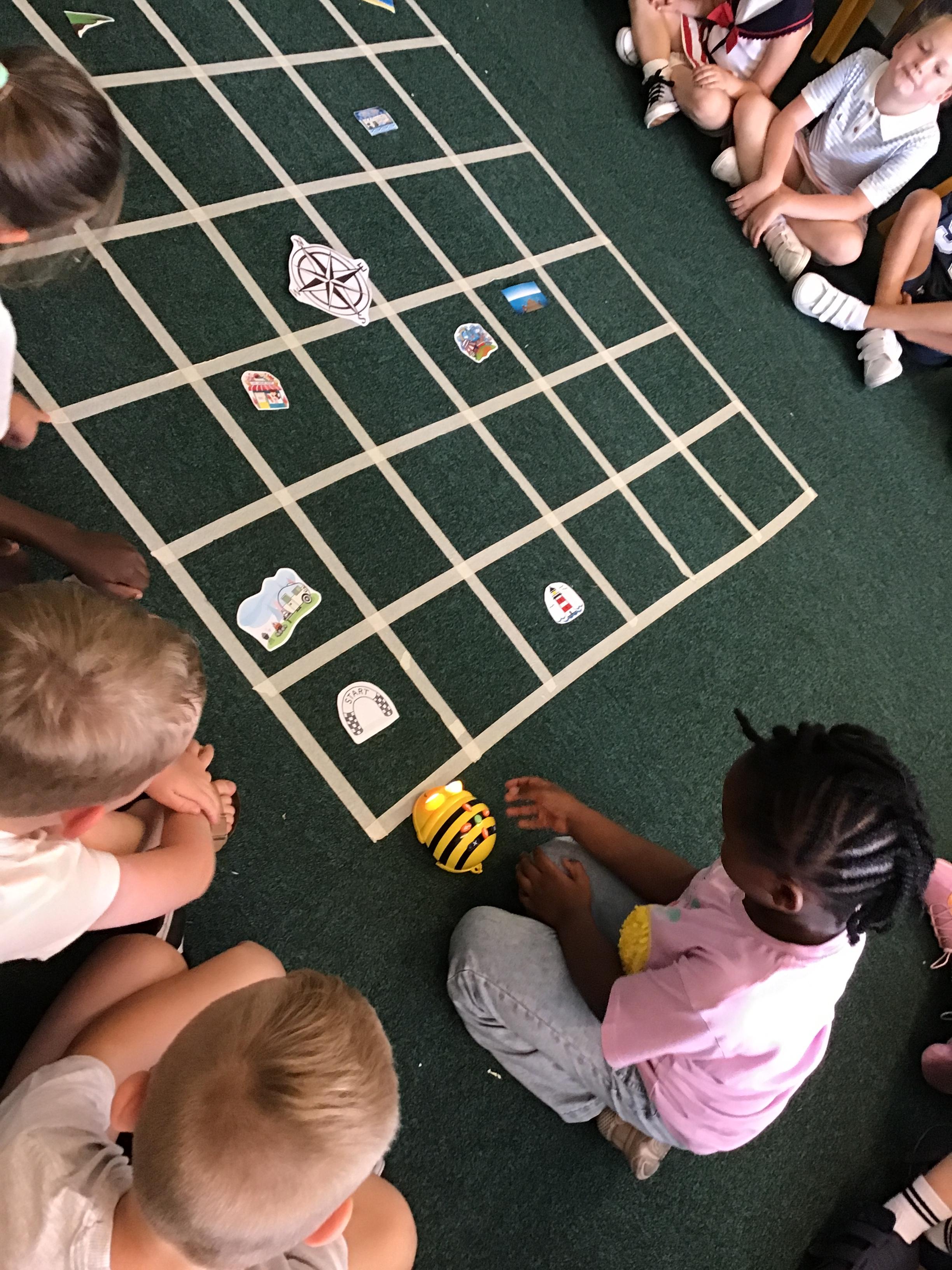 The children listened to the direction song and created a map of the seaside. They used compass points to navigate a beebot through the map to reach different landmarks.