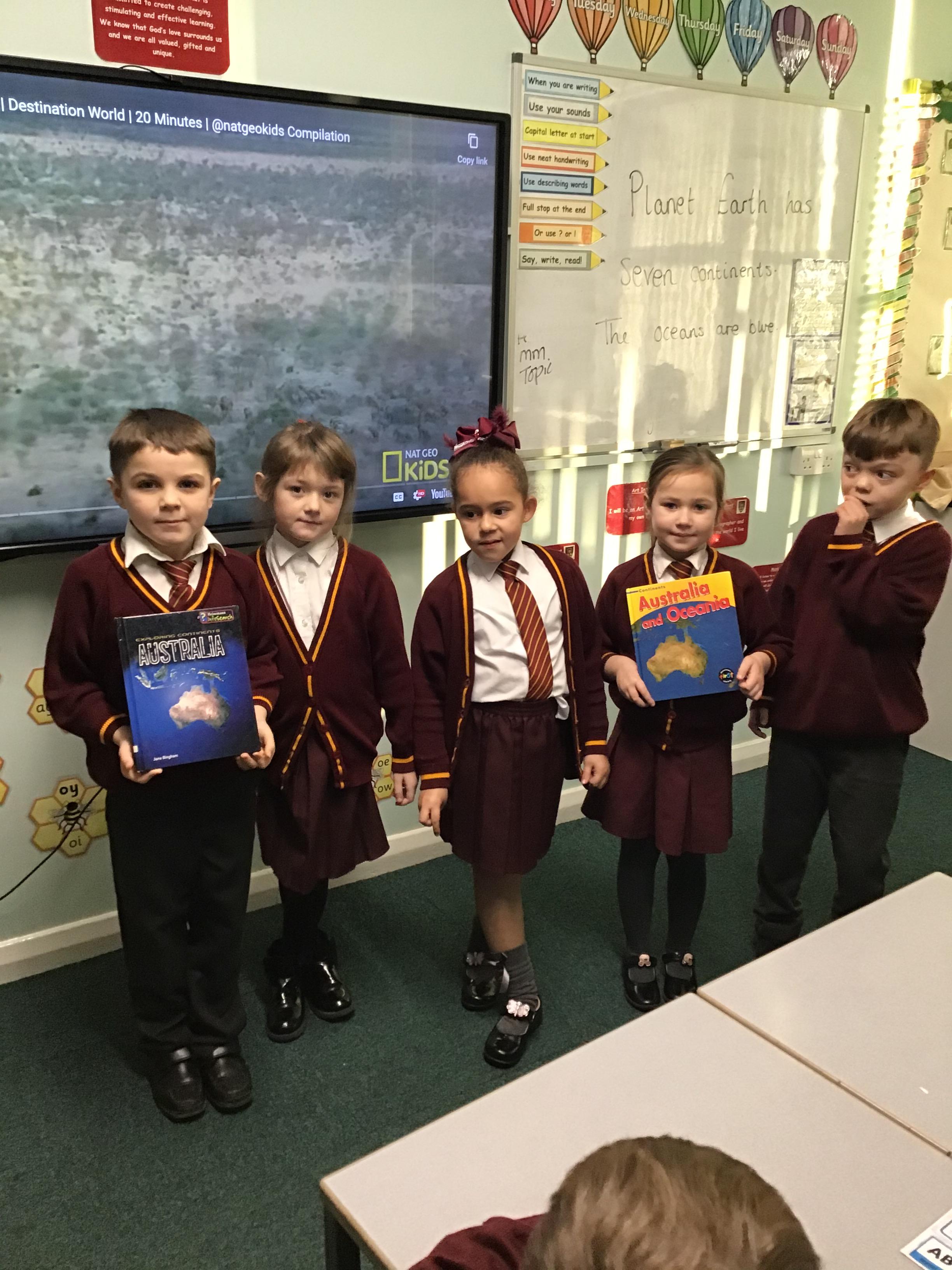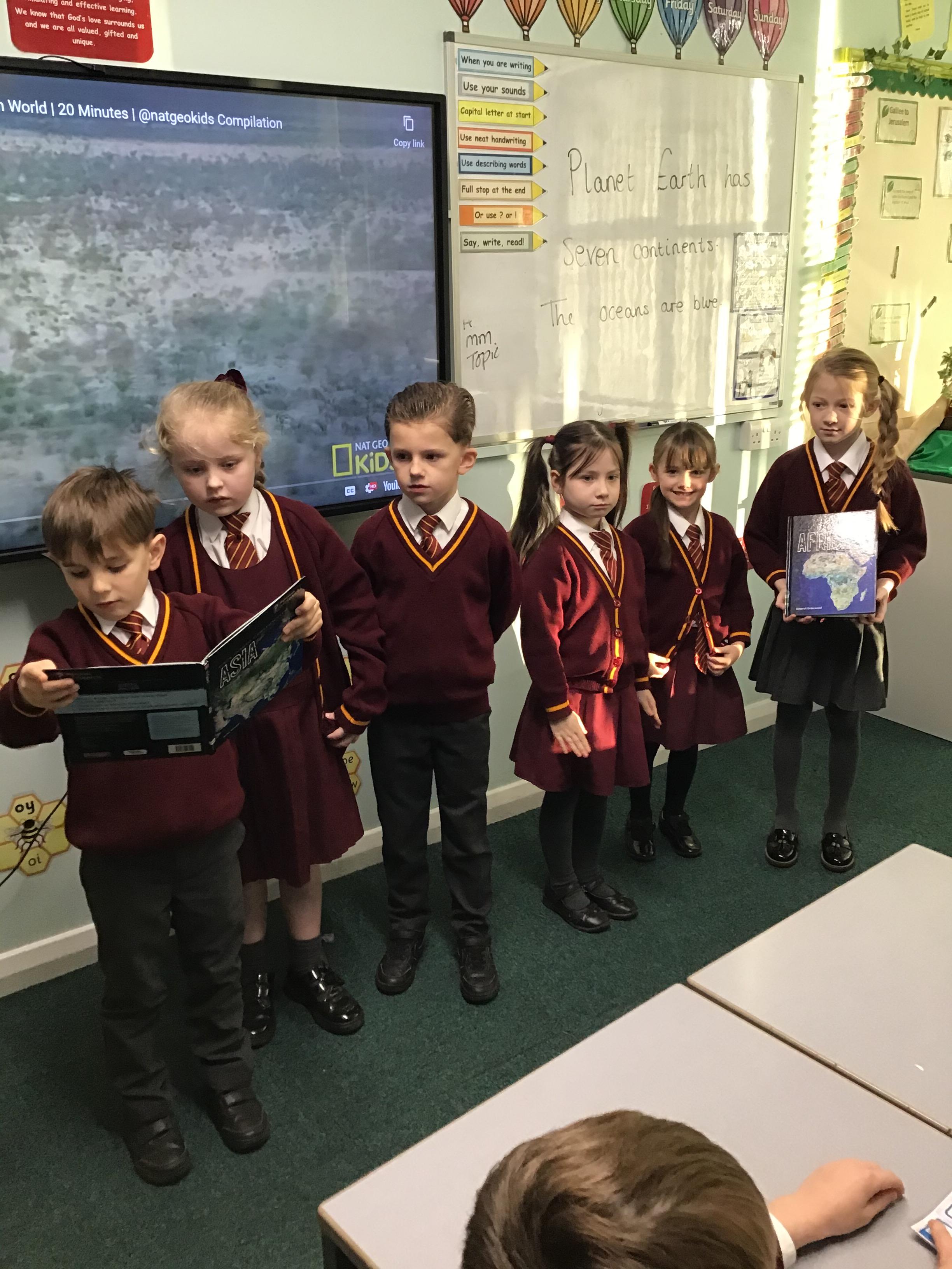 During the first lesson in our new topic 'Planet Earth' children visited the globe and spotted the seven continents. Children also worked in small groups to fact find and then presented their findings to the rest of the class!