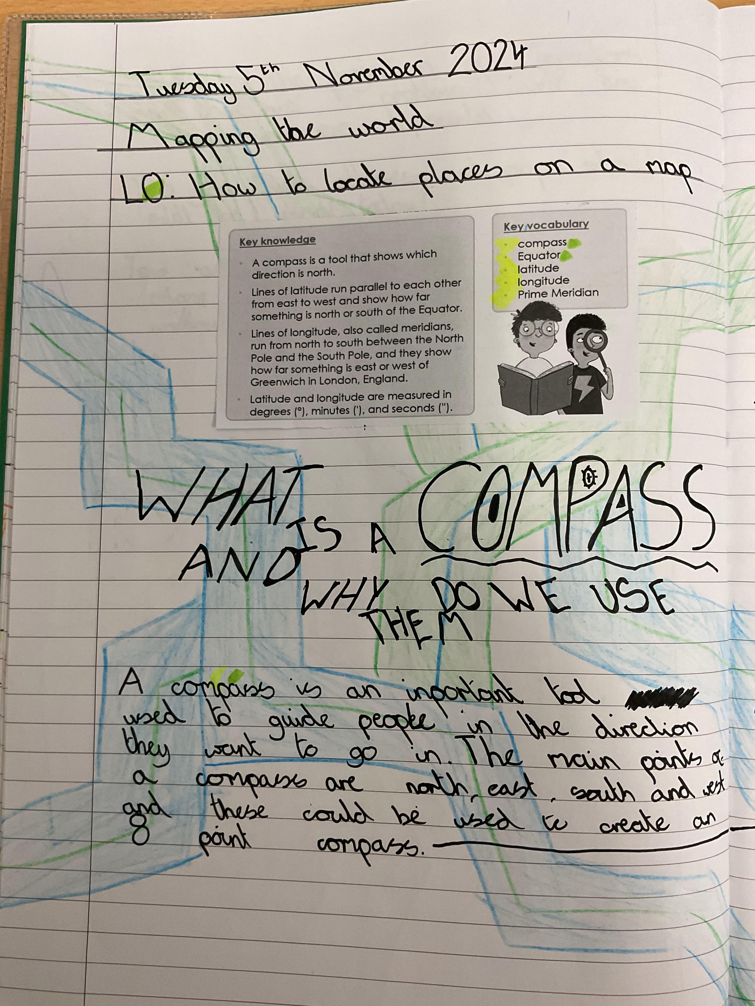 In Geography, Year completed Mapping around the World. We learnt about the different types of maps and their uses and completed some fieldwork in our local area