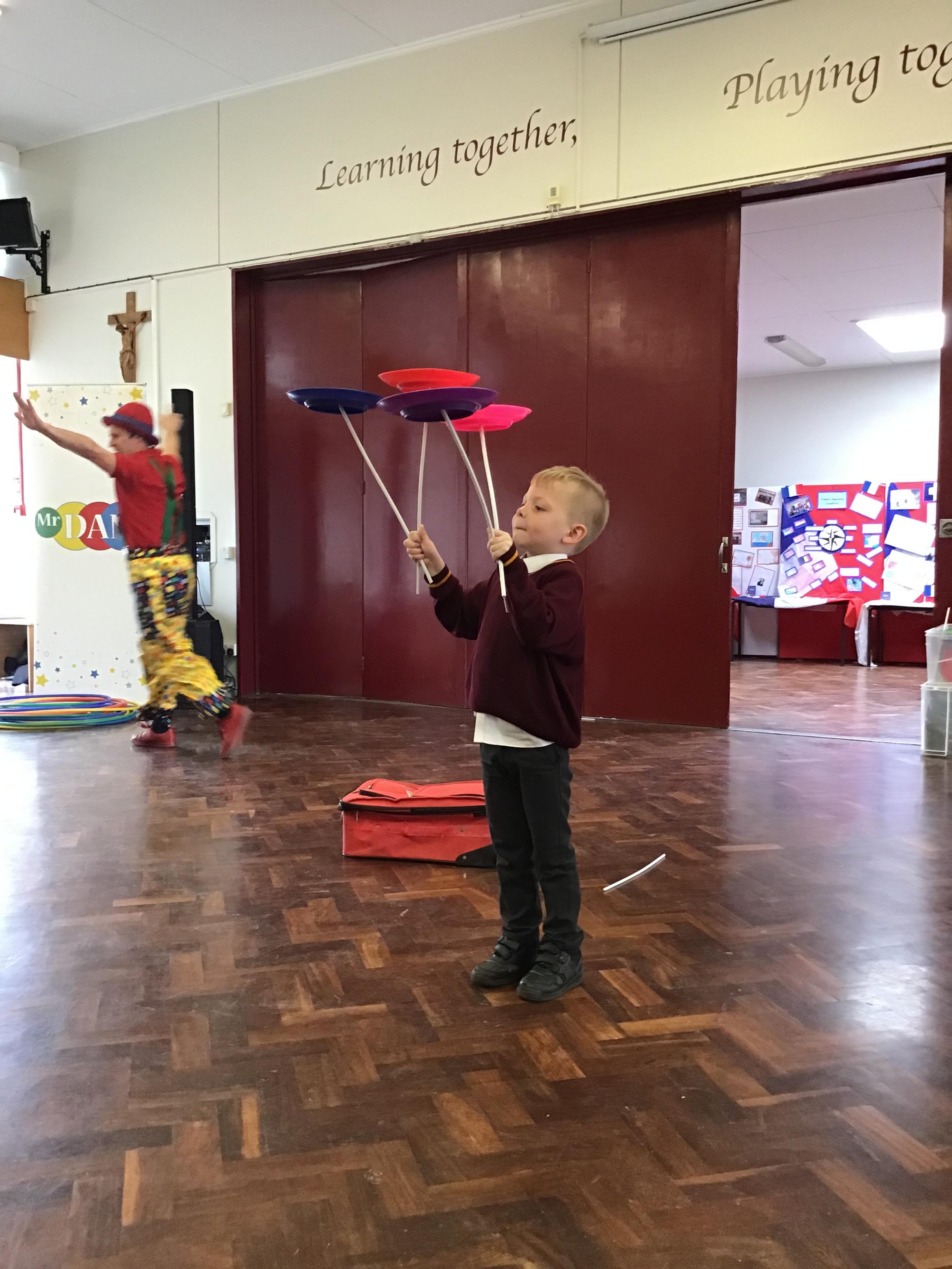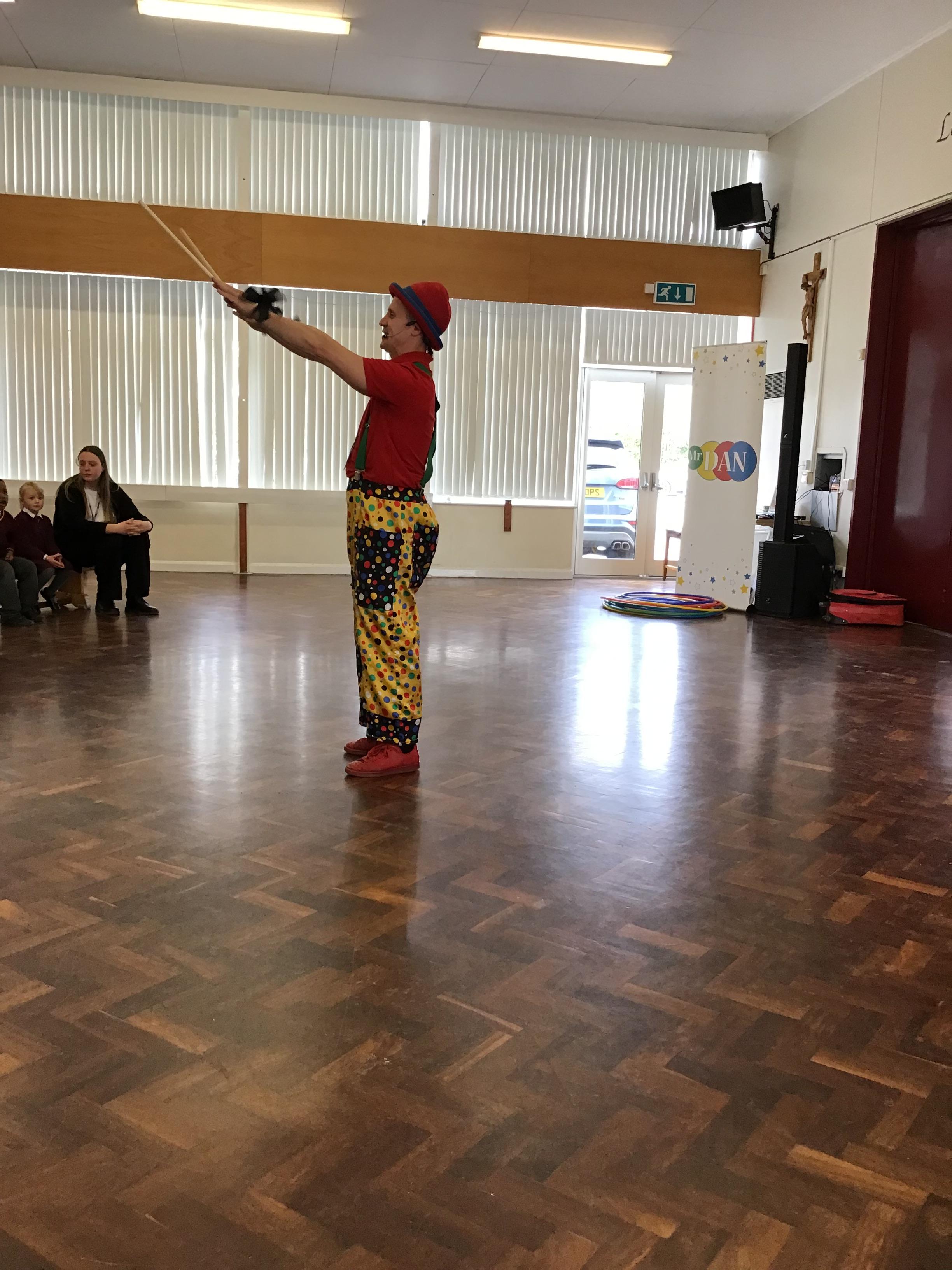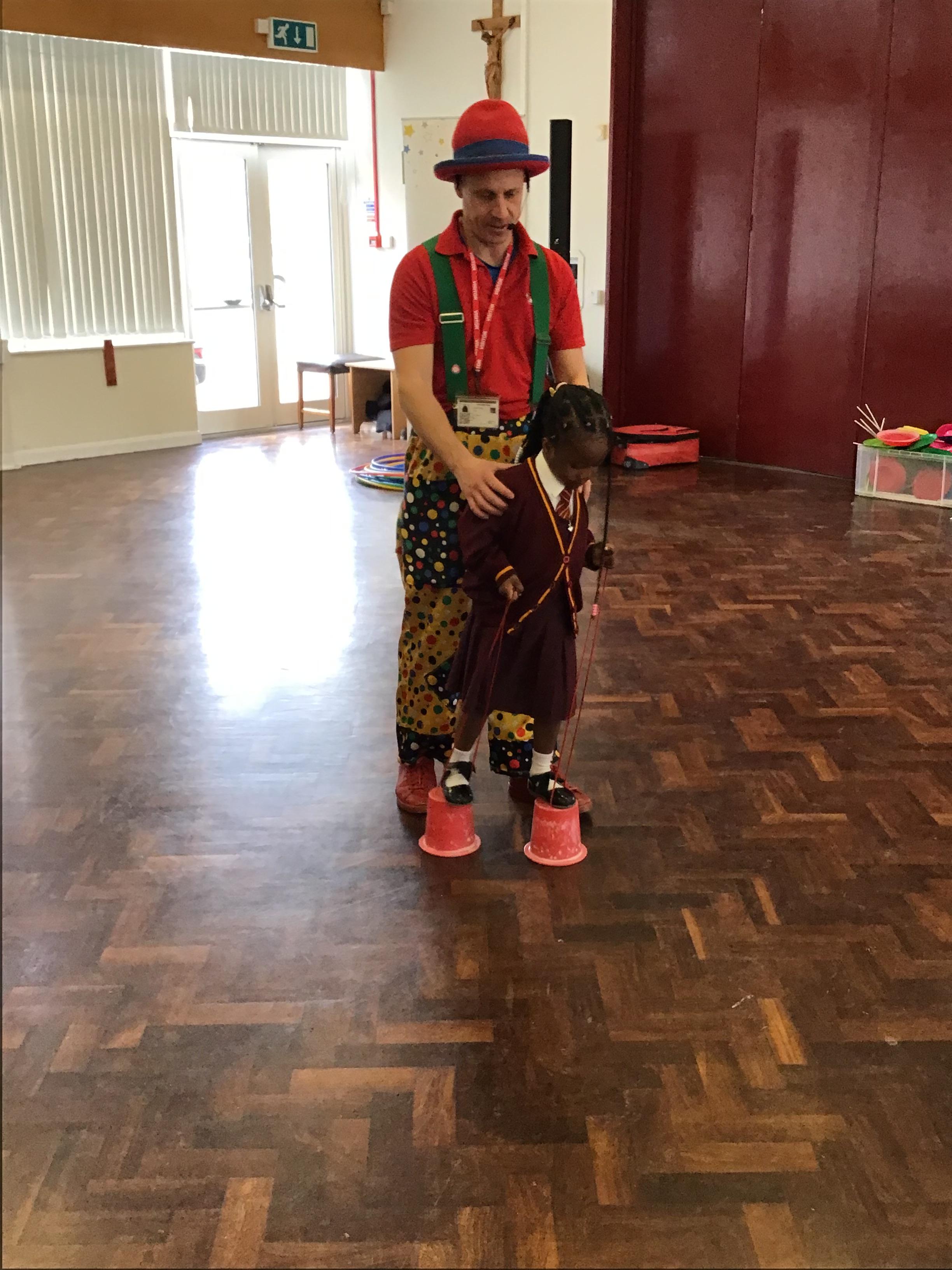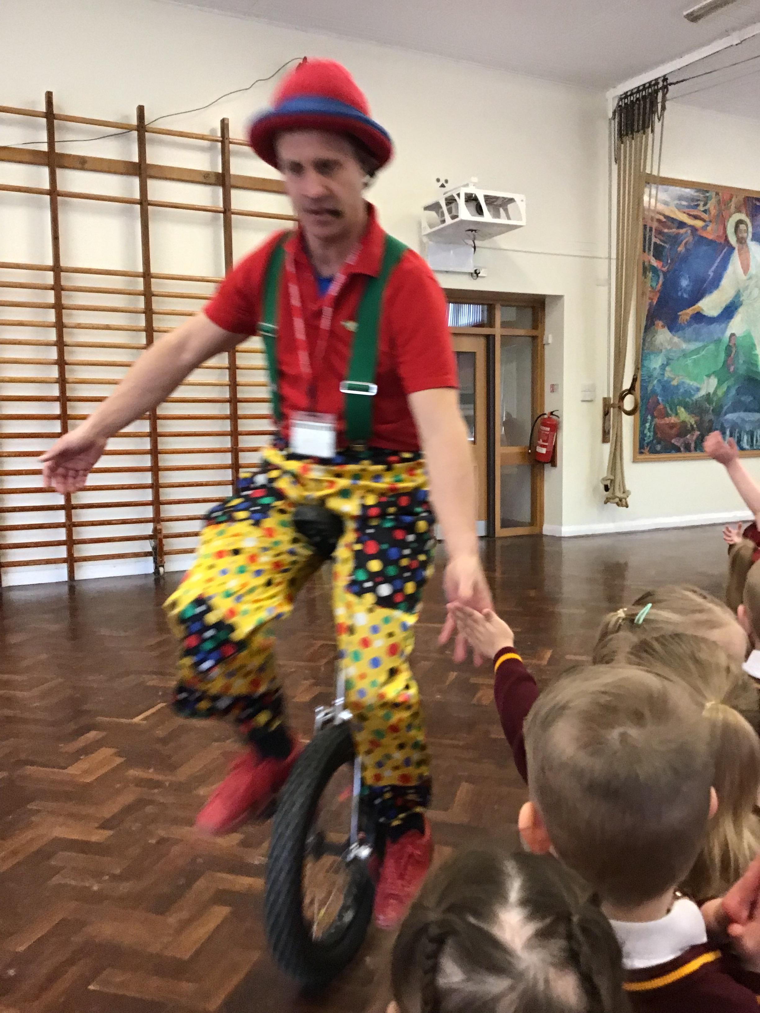 The children in EYFS had the pleasure of a comical and funny demonstration of circus tricks that gave the children the opportunity to develop social skills, improve risk taking judgement, align individuals' projected and actual selves and enhance problem solving, creativity, self-esteem and perseverance.