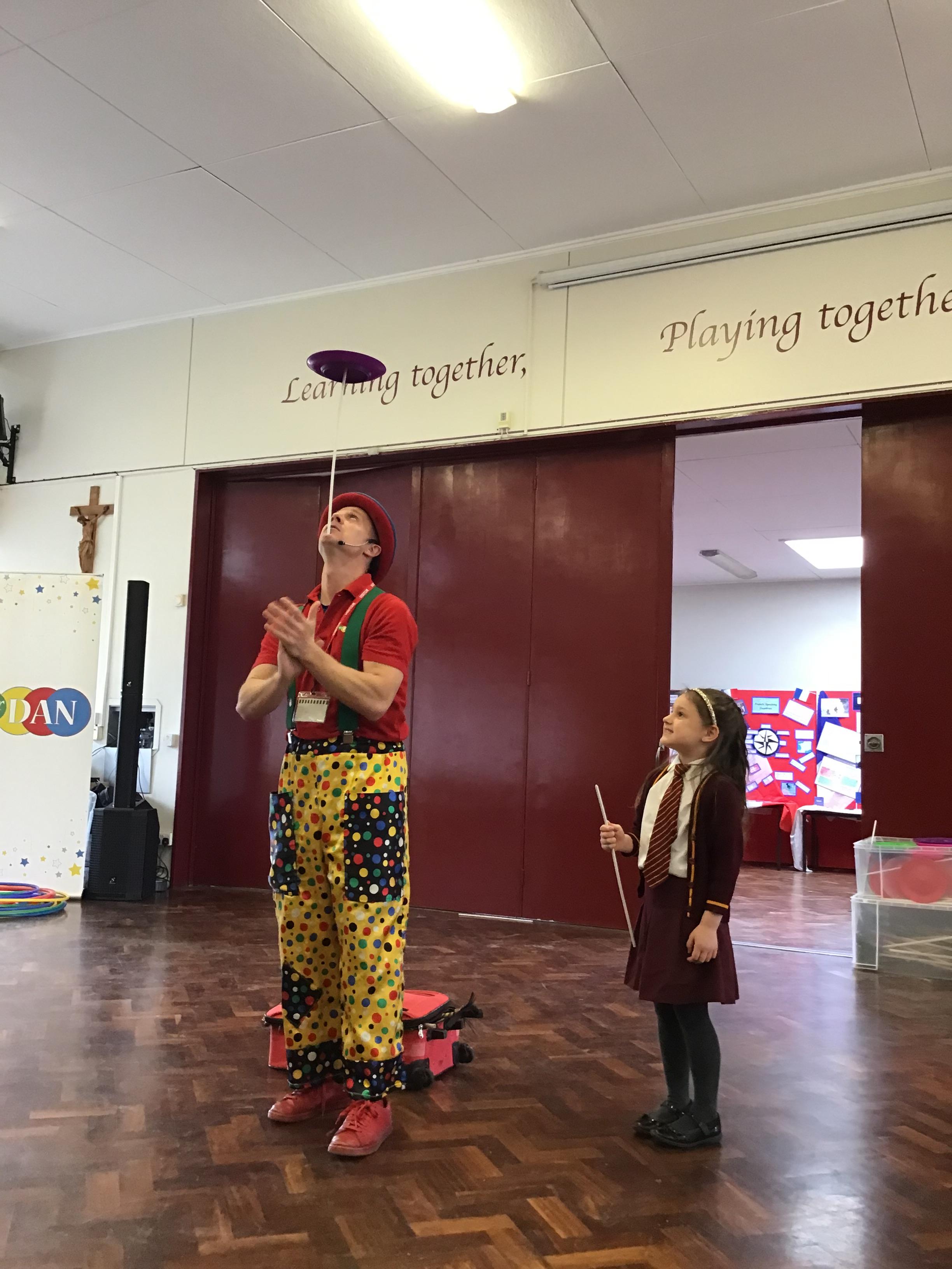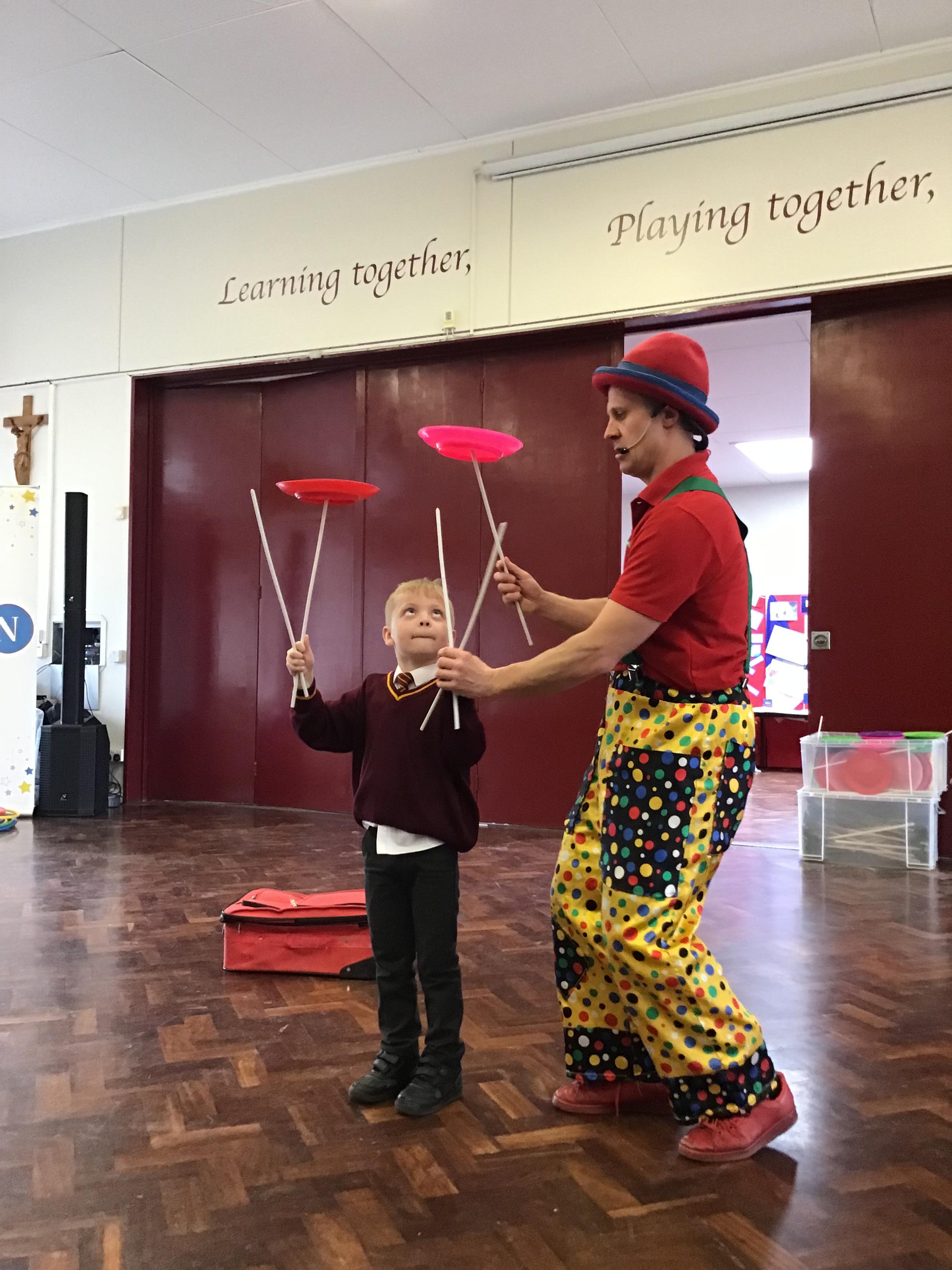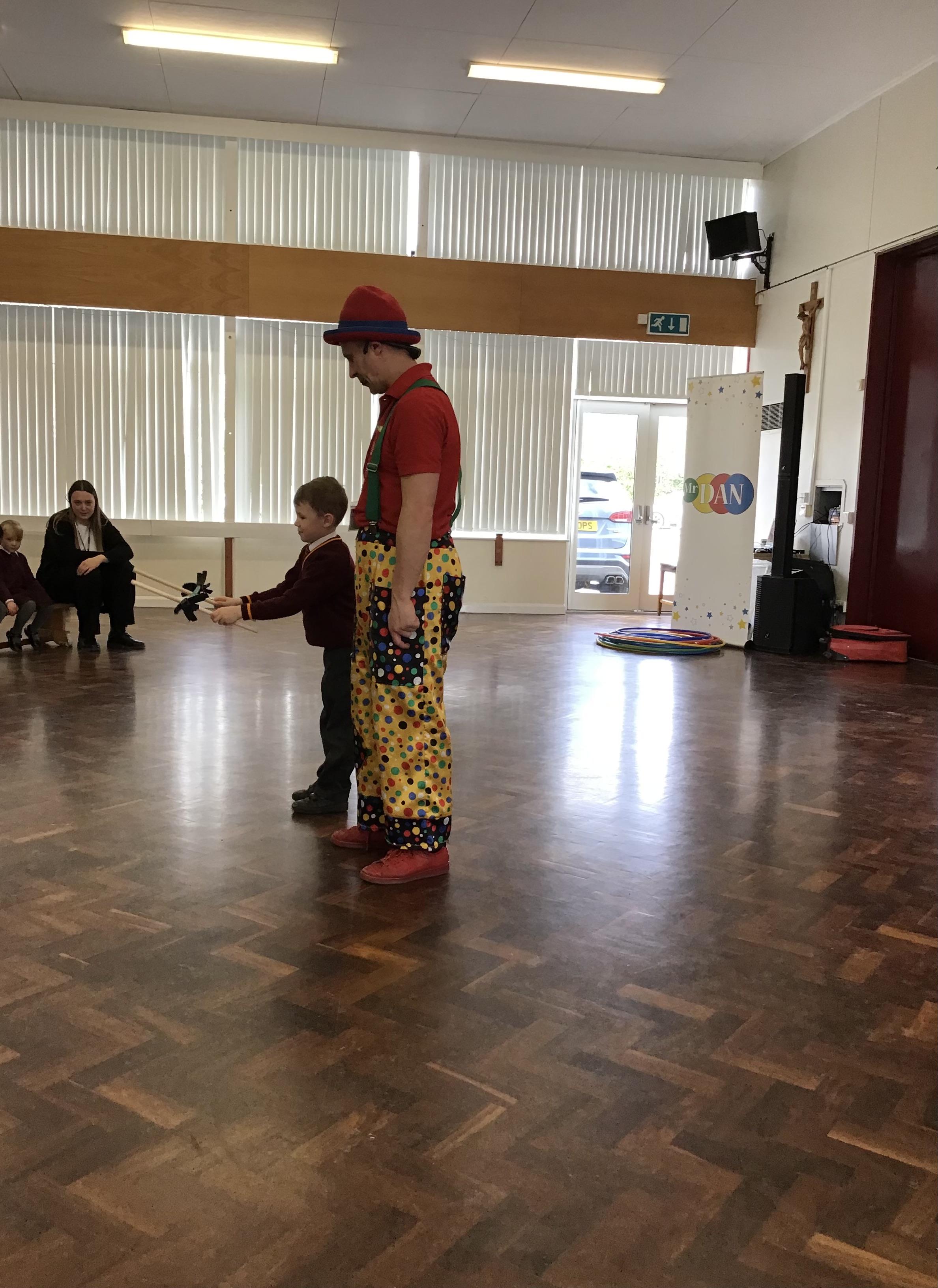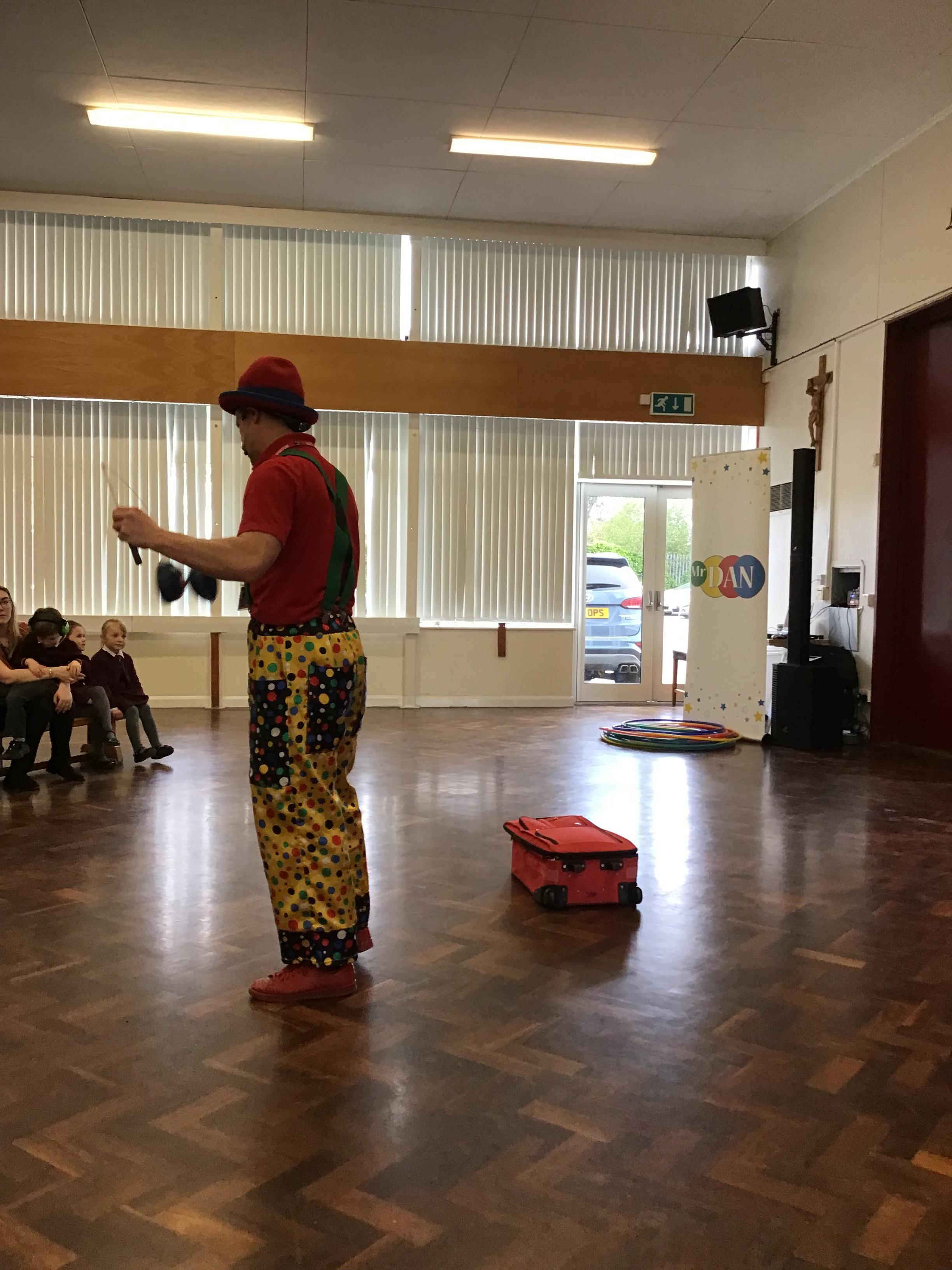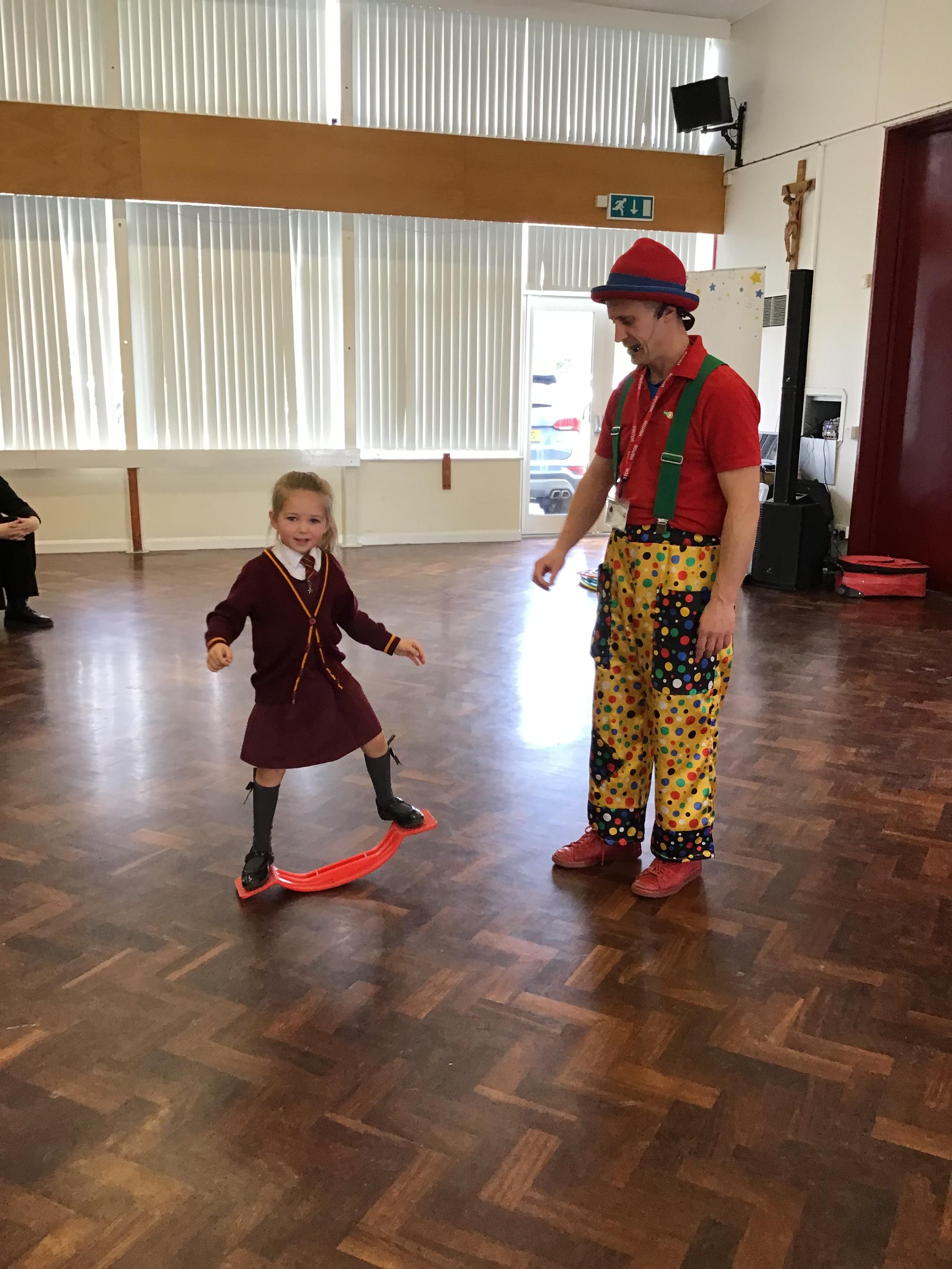The children in EYFS had the pleasure of a comical and funny demonstration of circus tricks that gave the children the opportunity to develop social skills, improve risk taking judgement, align individuals' projected and actual selves and enhance problem solving, creativity, self-esteem and perseverance.
