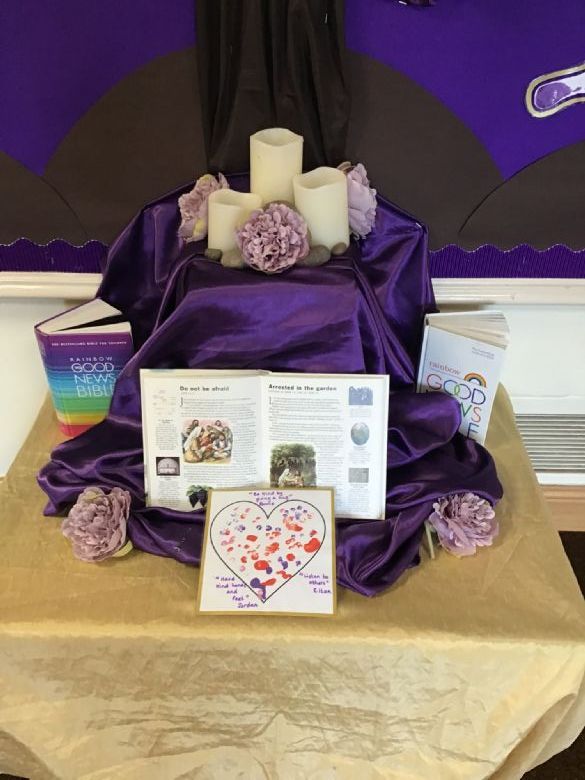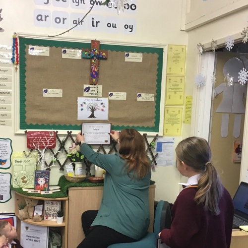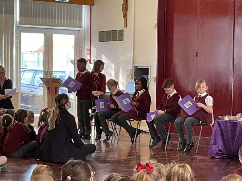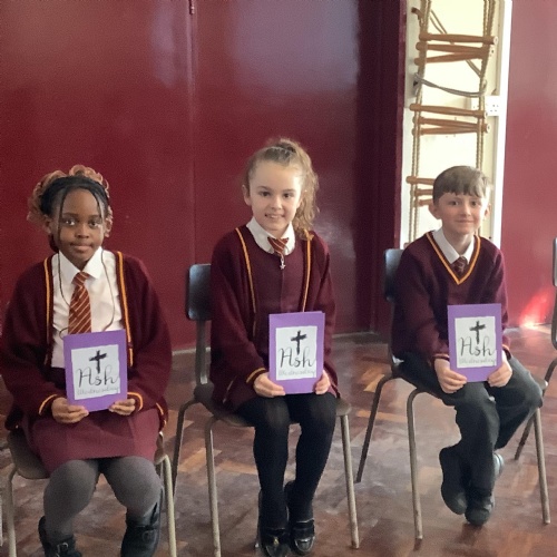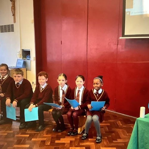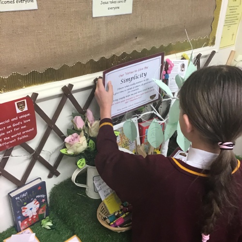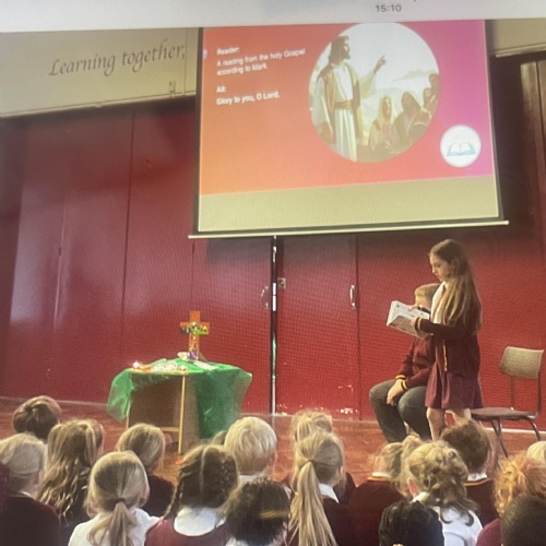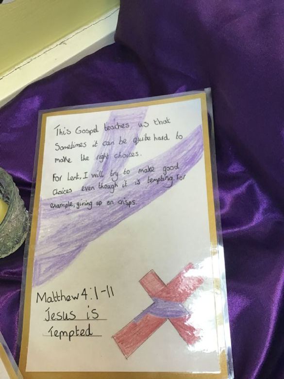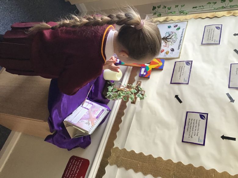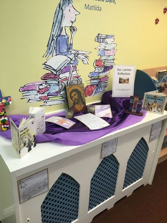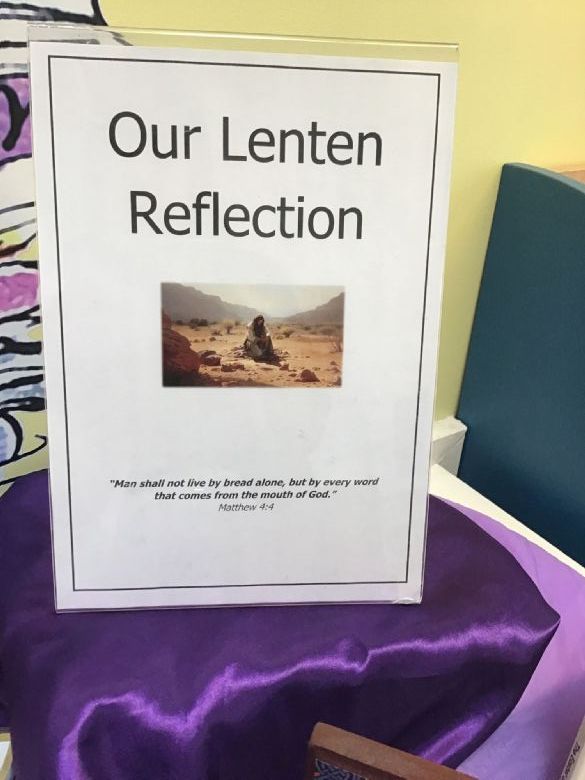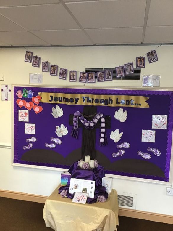 Members of our Chaplaincy Team meet weekly at lunchtime to grow in faith and service. During the season of Lent, they have created a whole-school Lenten reflection area, inviting children to contribute and reflect on the important messages of this special season. The team also regularly visits classrooms to share good practice, supporting class celebrations of the Word and being excellent role models of prayer, kindness, and faith in action.