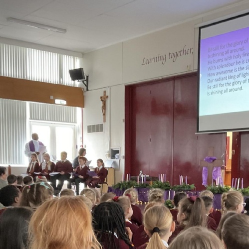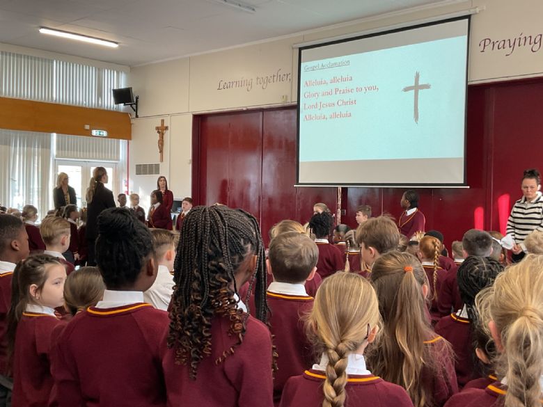 Together we reflect on how loving God first is the most important thing we can do. The chaplaincy team also shared a special repeating 'Act of Love' prayer with the whole school.