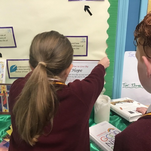 Members of our school chaplaincy team shared the new virtue of 'Hope' in all classes. They discussed different ways in which all children could show signs of living this new virtue.