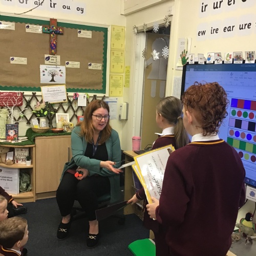 Members of the Chaplaincy Team were incredibly helpful, distributing the posters and prayers for the Year of Jubilee to each class. While they gave out the resources, they explained to each class how and when to use them.