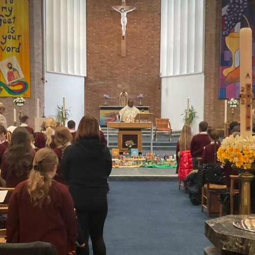 Our chaplaincy team lead our school mass to celebrate harvest at Our Lady of Assumption Church. They shared scripture and reflective bidding prayers with the rest of the school.