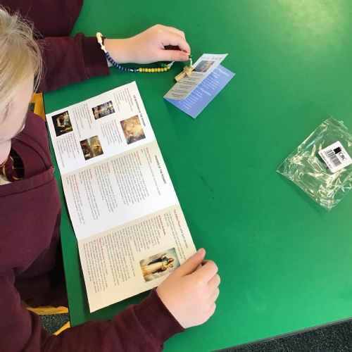 The chaplaincy team provided all children with their own set of rosary beads and prayer card to use during the month of October, both at home and school. They visited each class to speak to them about how to pray the rosary following our whole school celebration of the word.