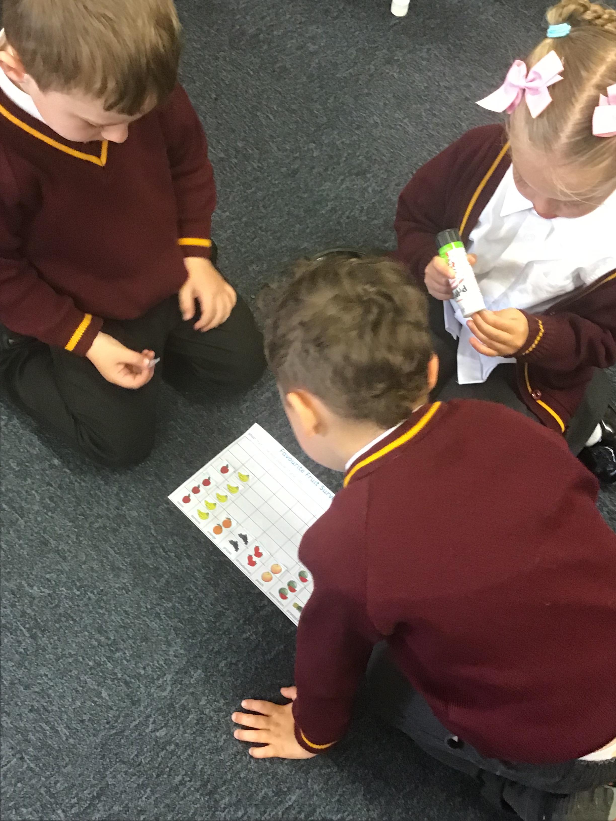 The children create a pictogram using collected data.