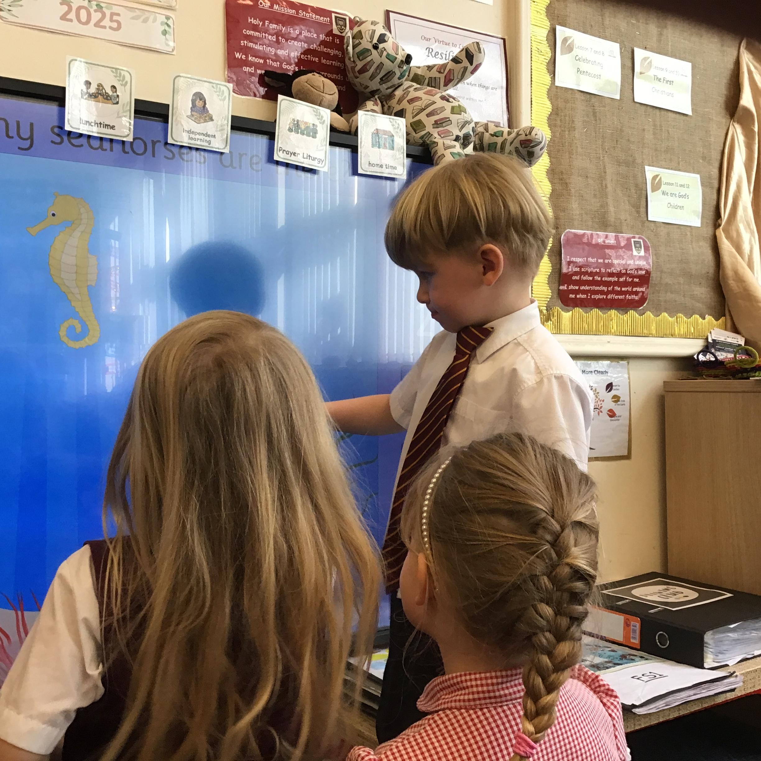 In FS1 the children have enjoyed using the iPad to take pictures of the 'number 2'. The children spotted two aeroplanes in the sky and two friends standing together.