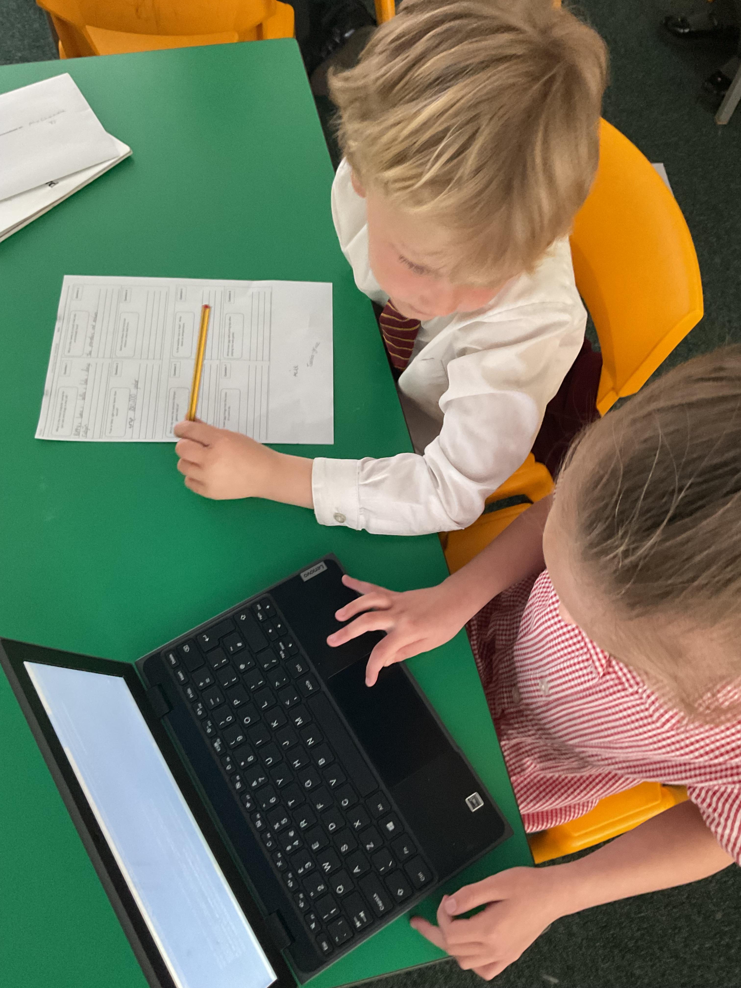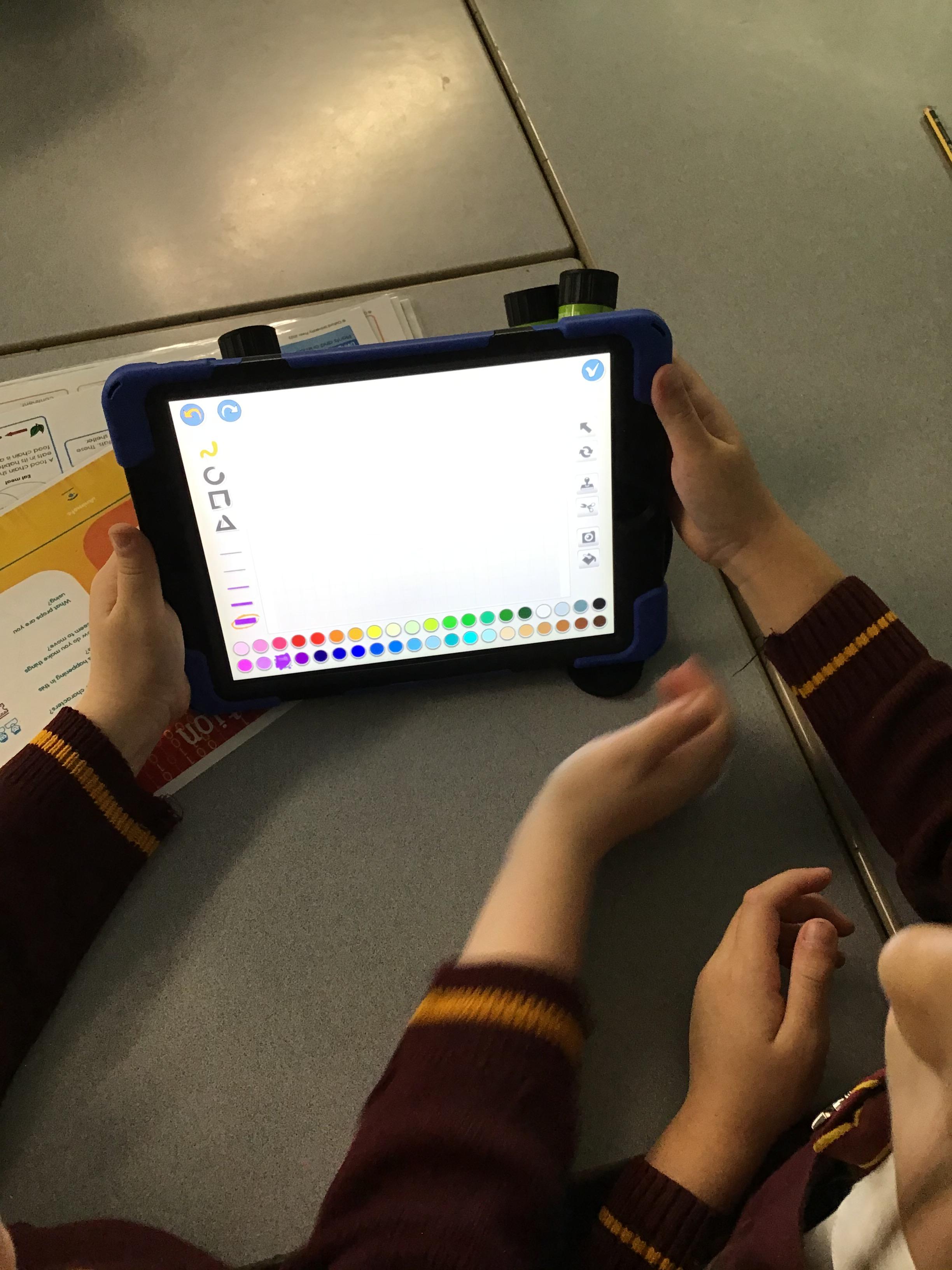 The children used digital drawing tools to create a storyboard of a game or story.