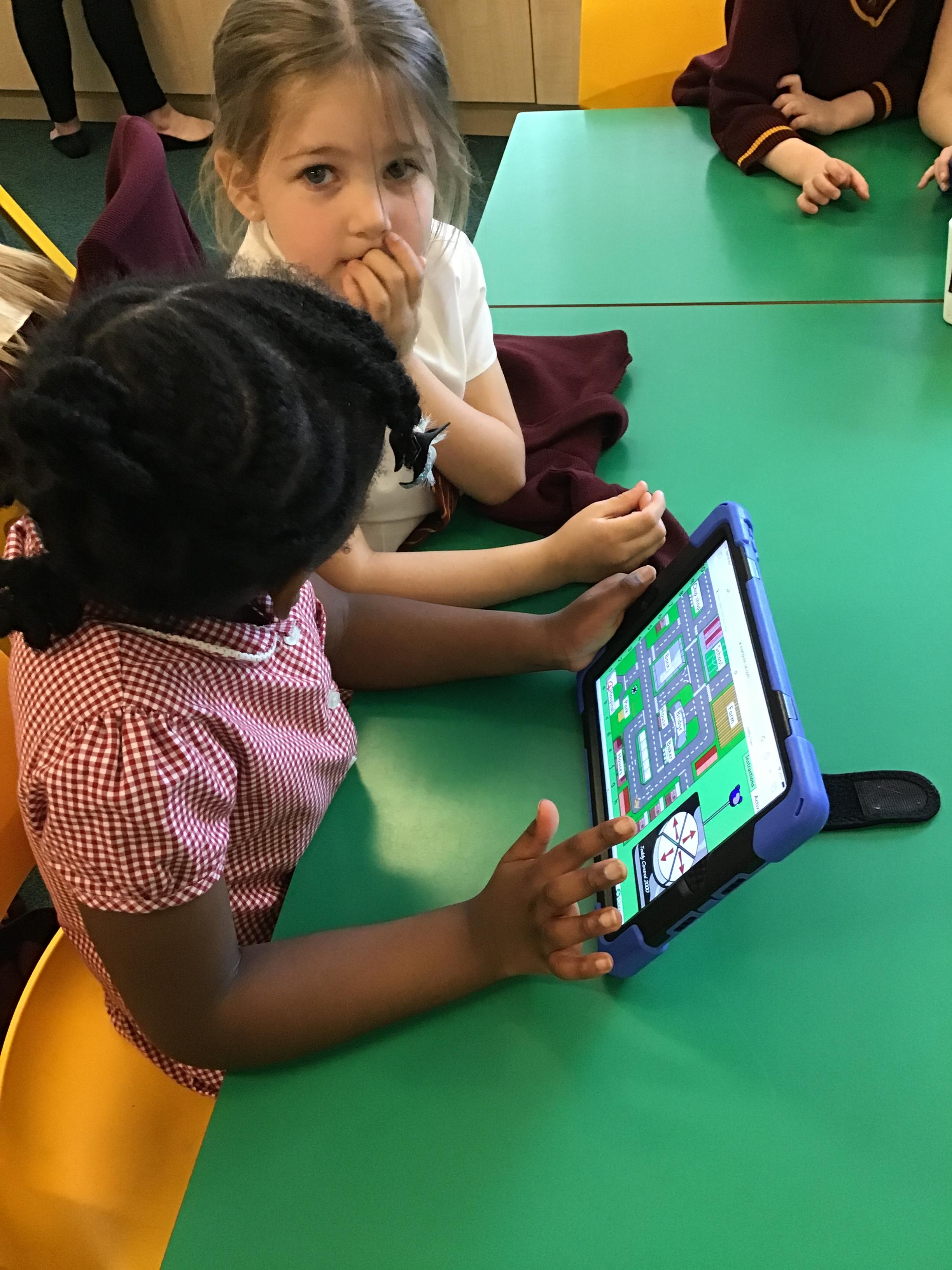 The children guided a programmable toy to where they want it to go.