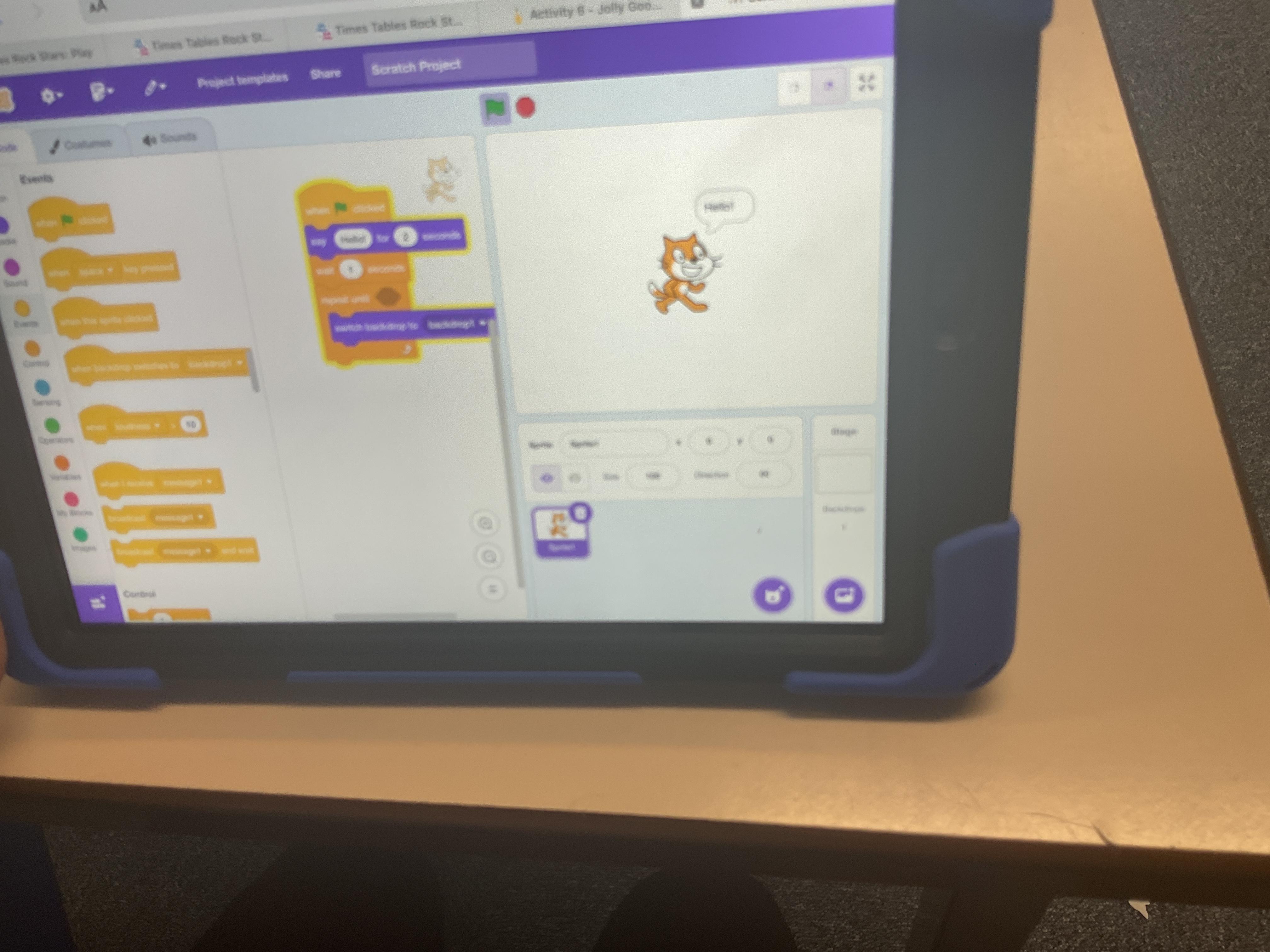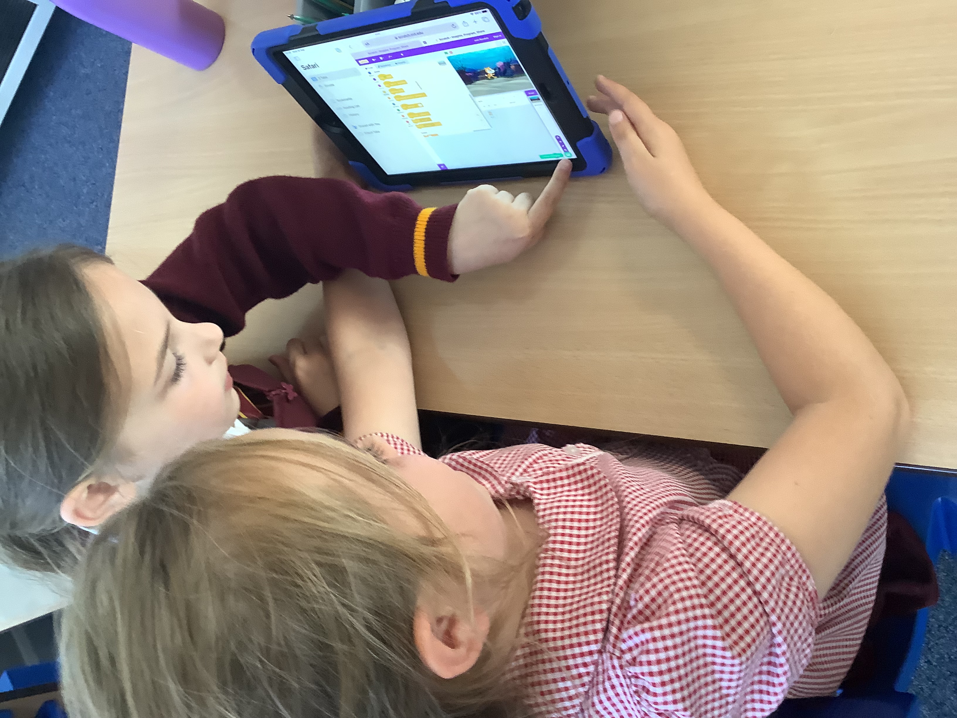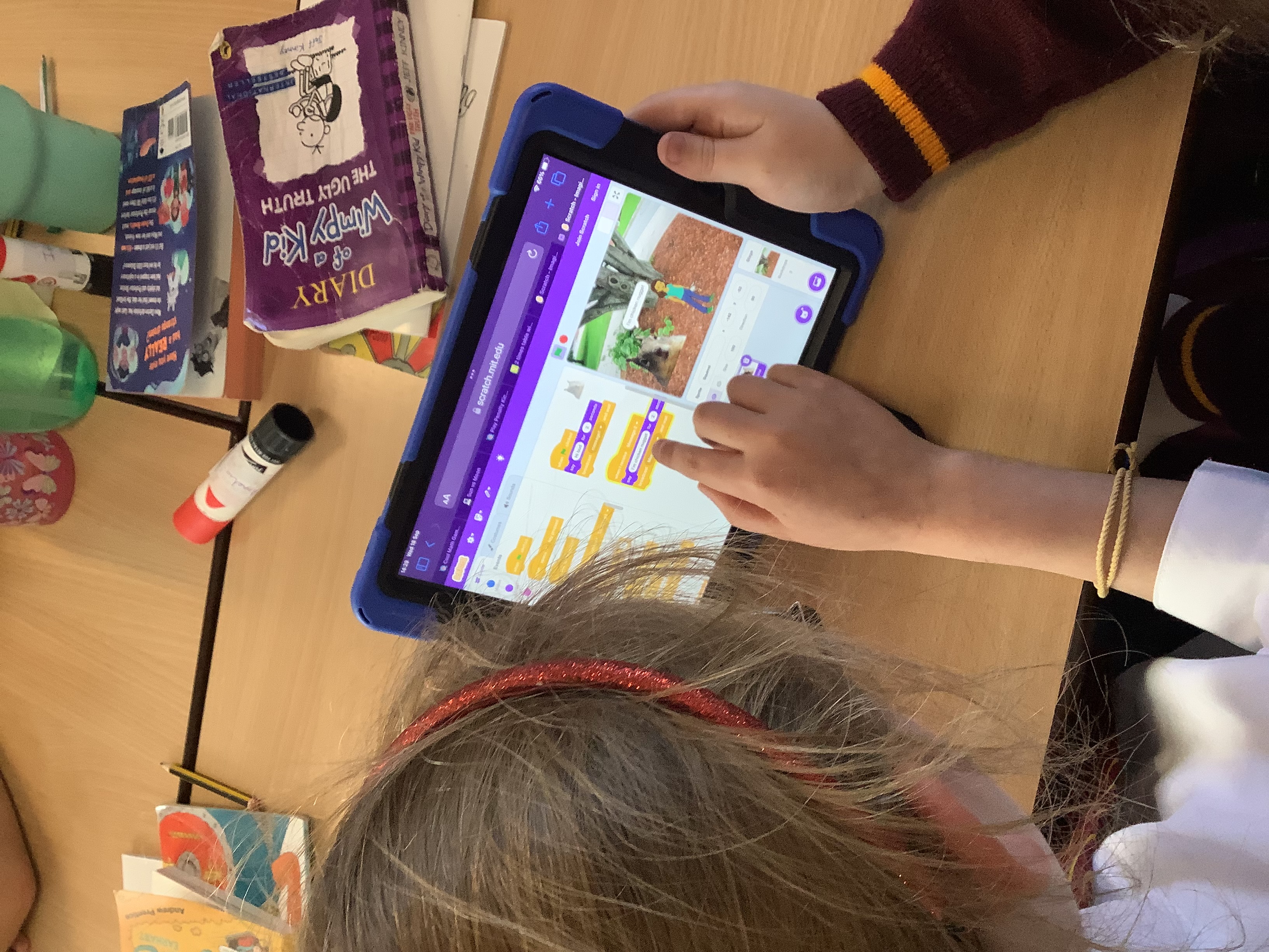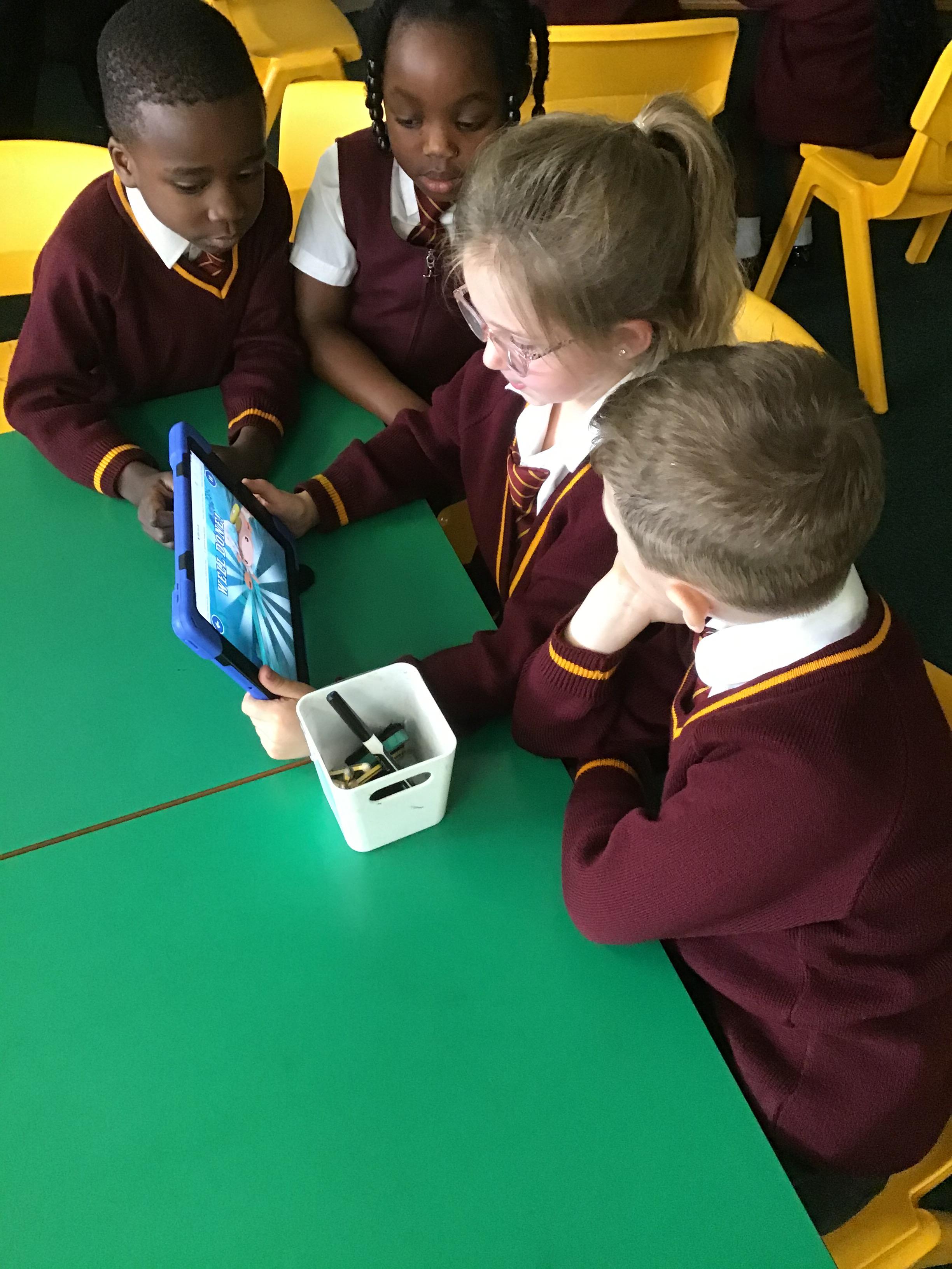 Year 4 used ipads to understand that broadcasts can be used to change scenes in Scratch.