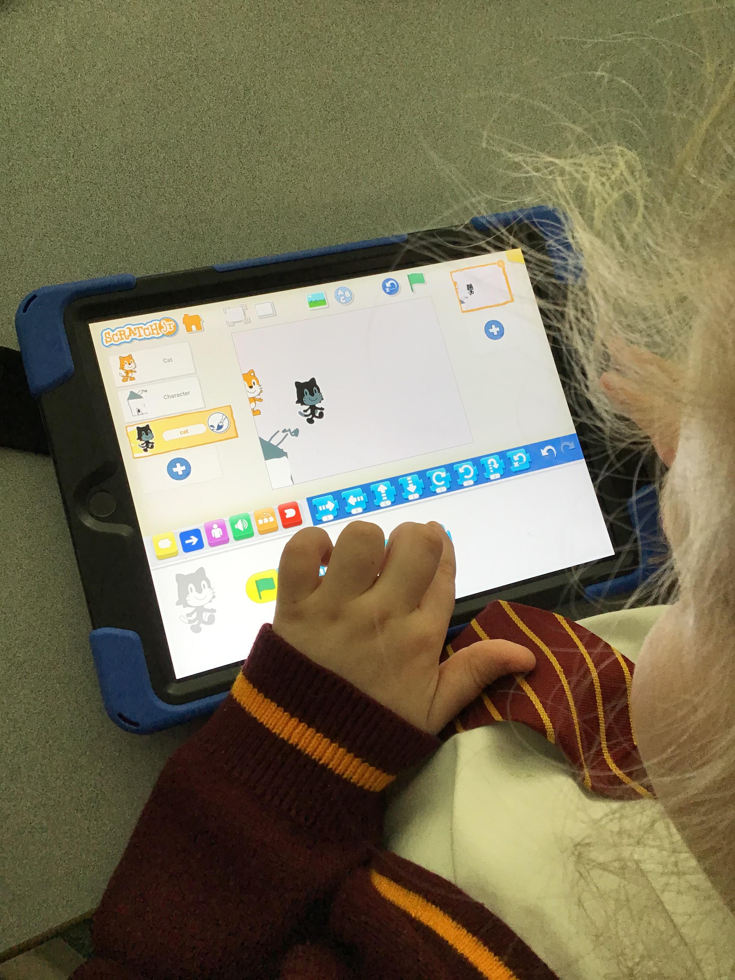 In this lesson, children used their scripted storyboards and 'scratchjr' app to create their animations.