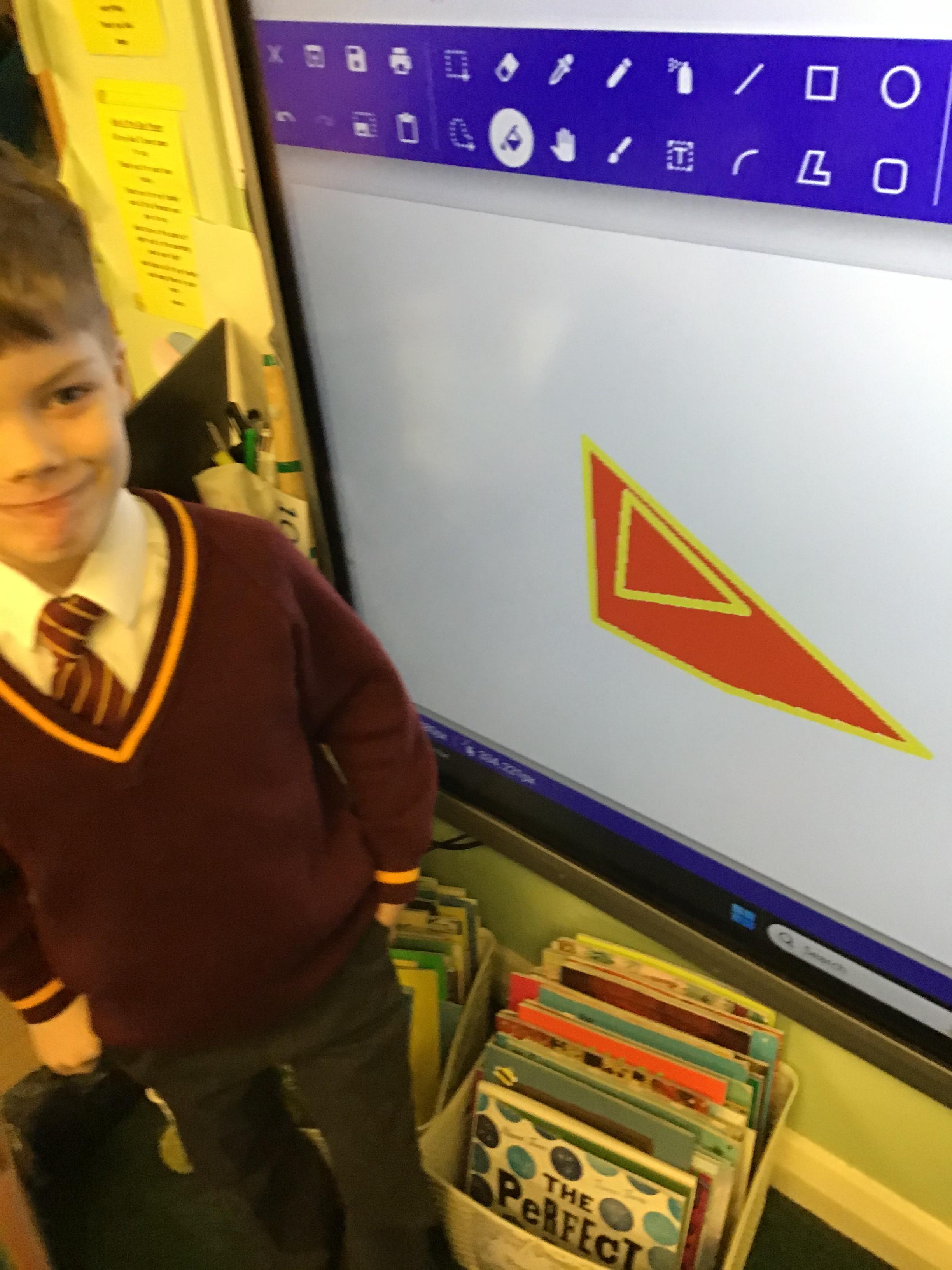 In this lesson, the children have been using iShape Up to predict the outcome of a simple algorithm, and using the repeat function to draw a 2D shape.