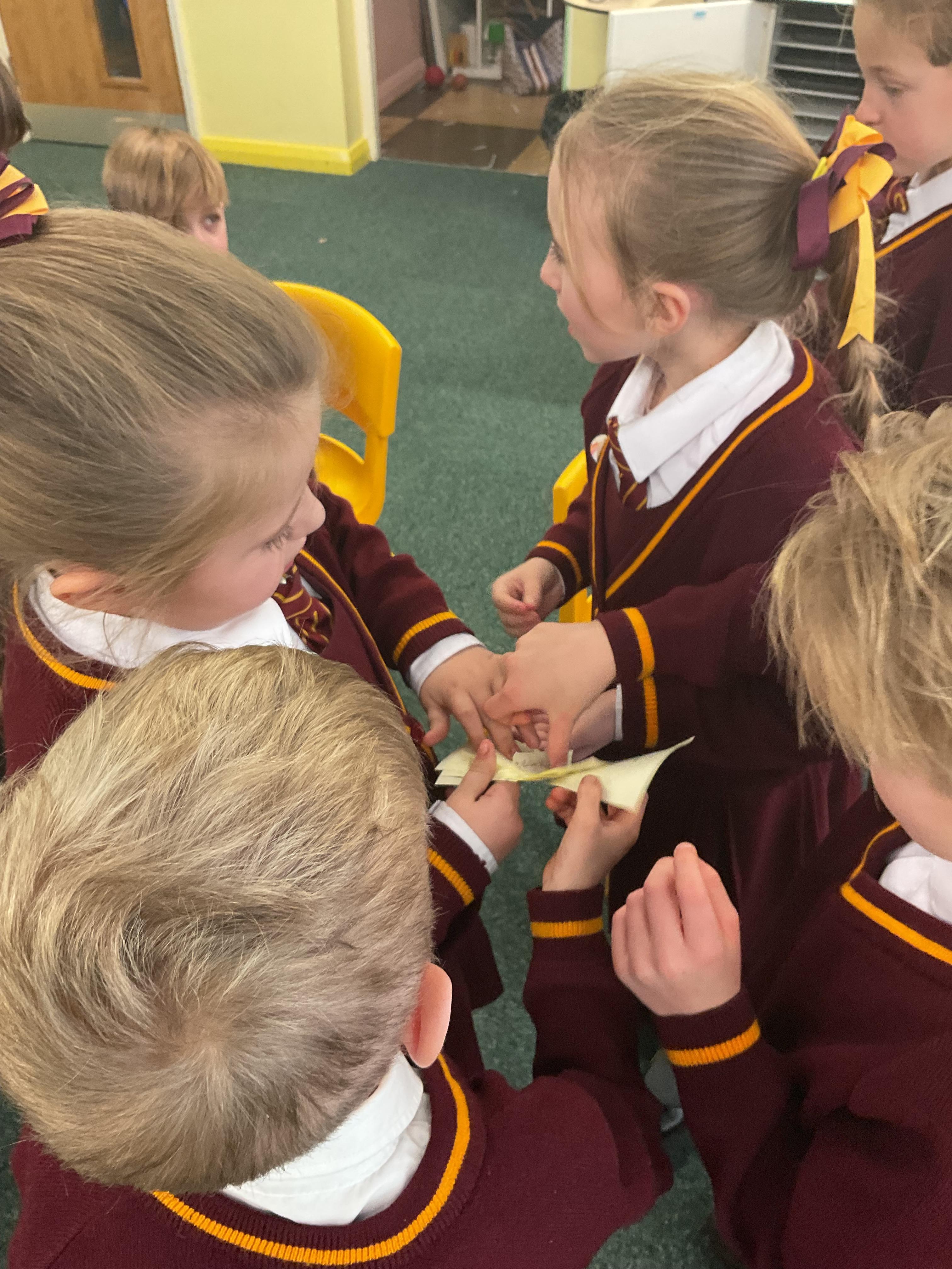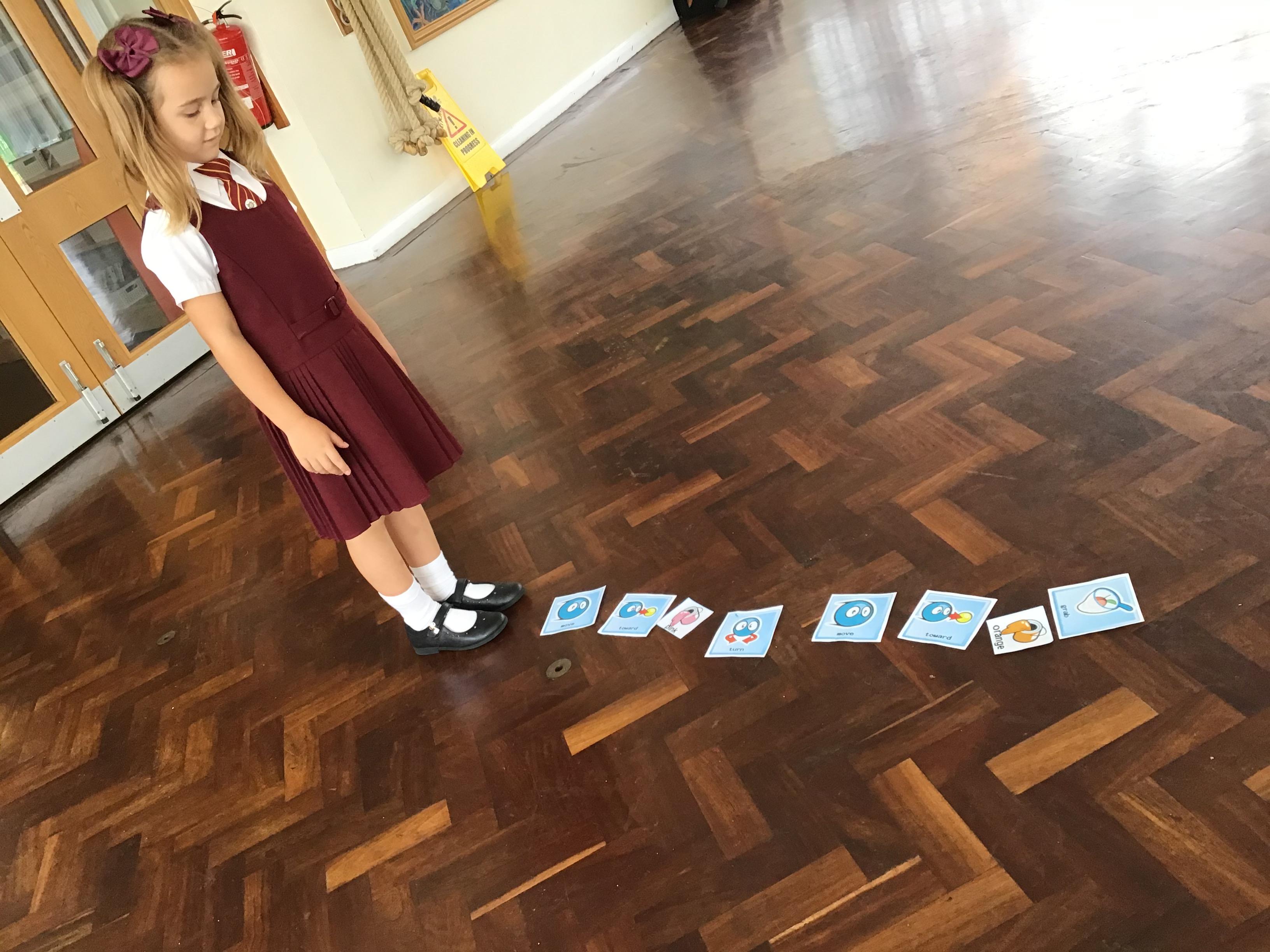 The children explored giving instructions, then testing and debugging a simple algorithm.
