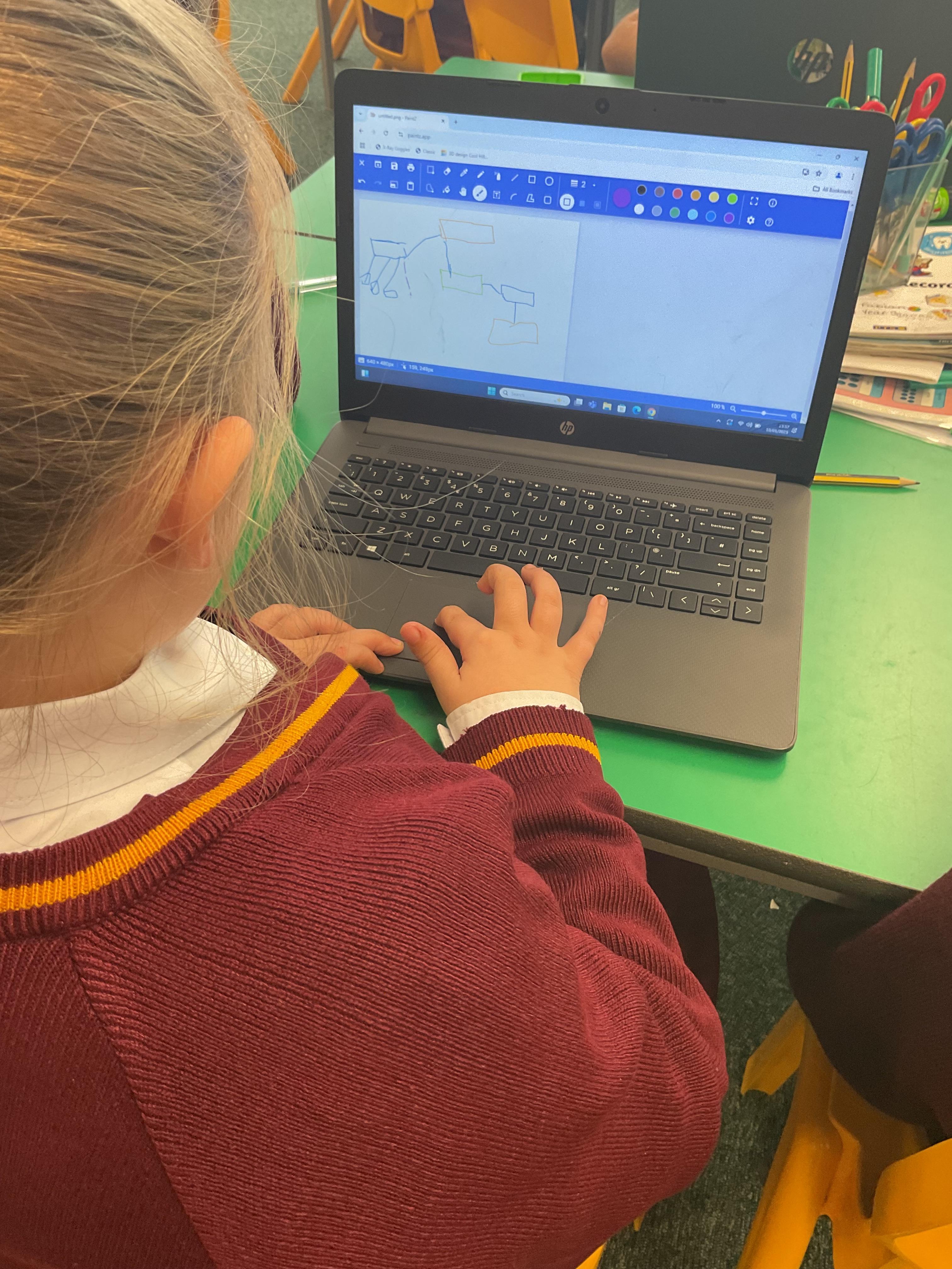 The children used software to create an image of a character from a nursery rhyme.