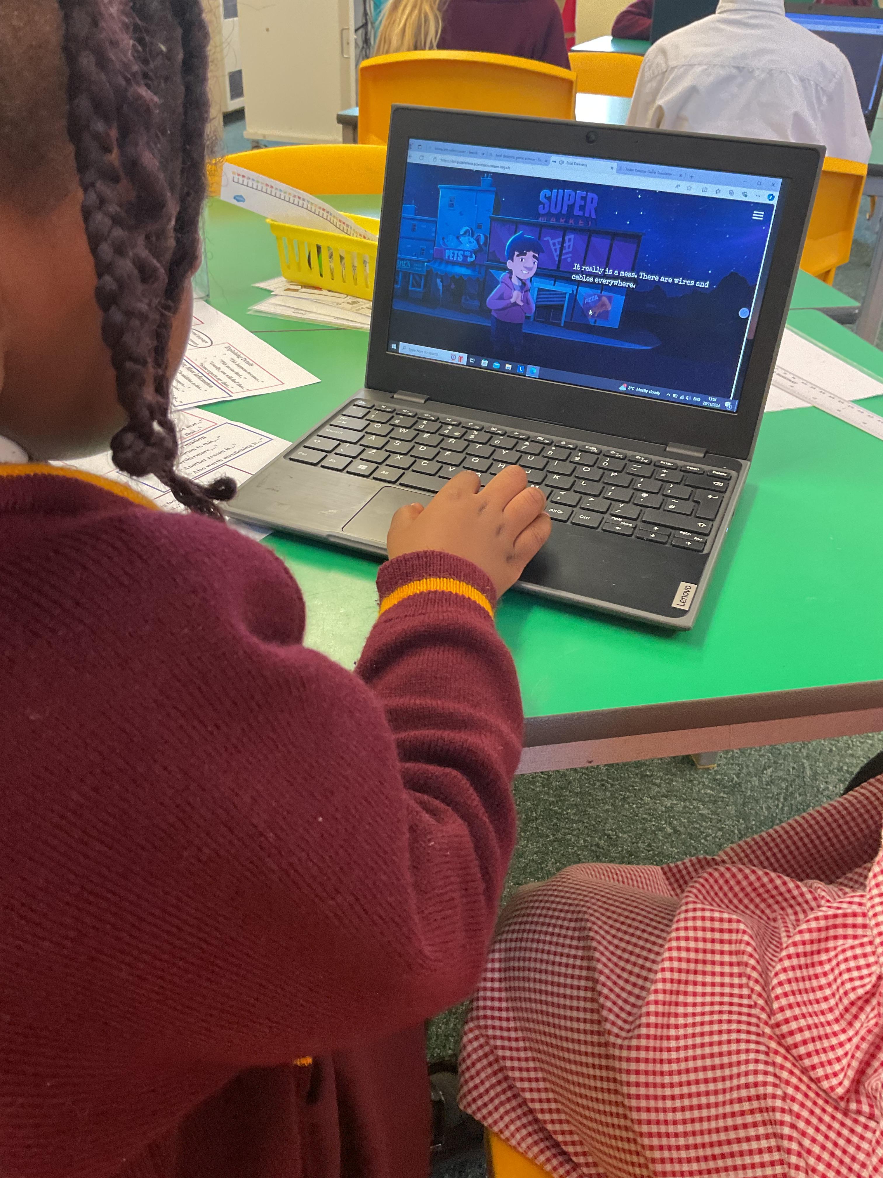 The children explored how computers work and learnt that they can be used to represent real or imaginary environments, situations and scenarios.