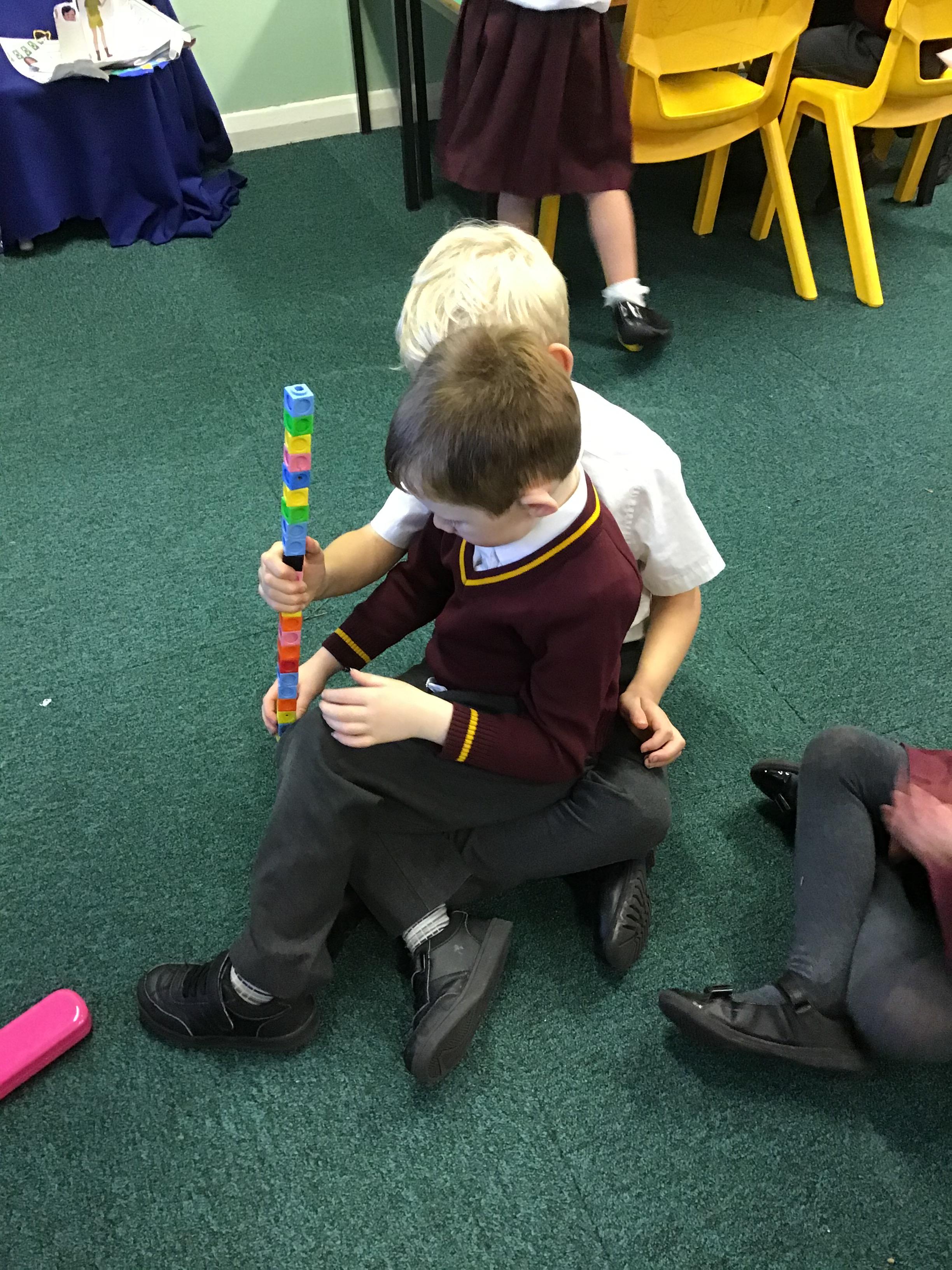 Year 1 created algorithms to build a tower. Their partner needed to predicting the outcome of an algorithm and then follow the instructions to see if they were correct.