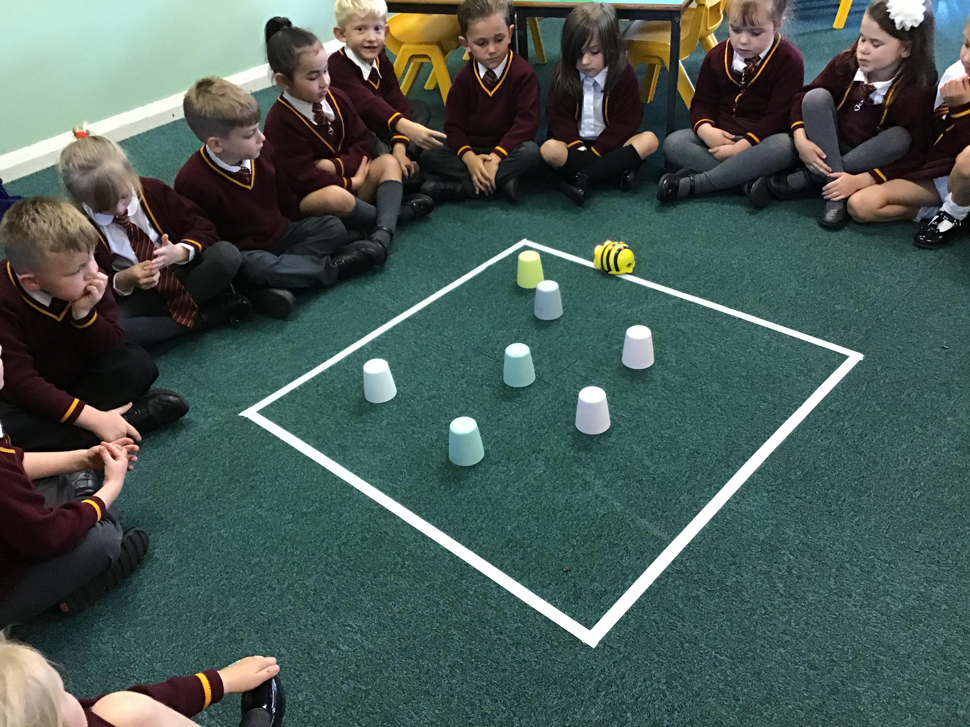 Year 1 discussed the word algorithm and play the game 'Simon Says'. The children then tested and debugged a simple algorithm for the Beebot.