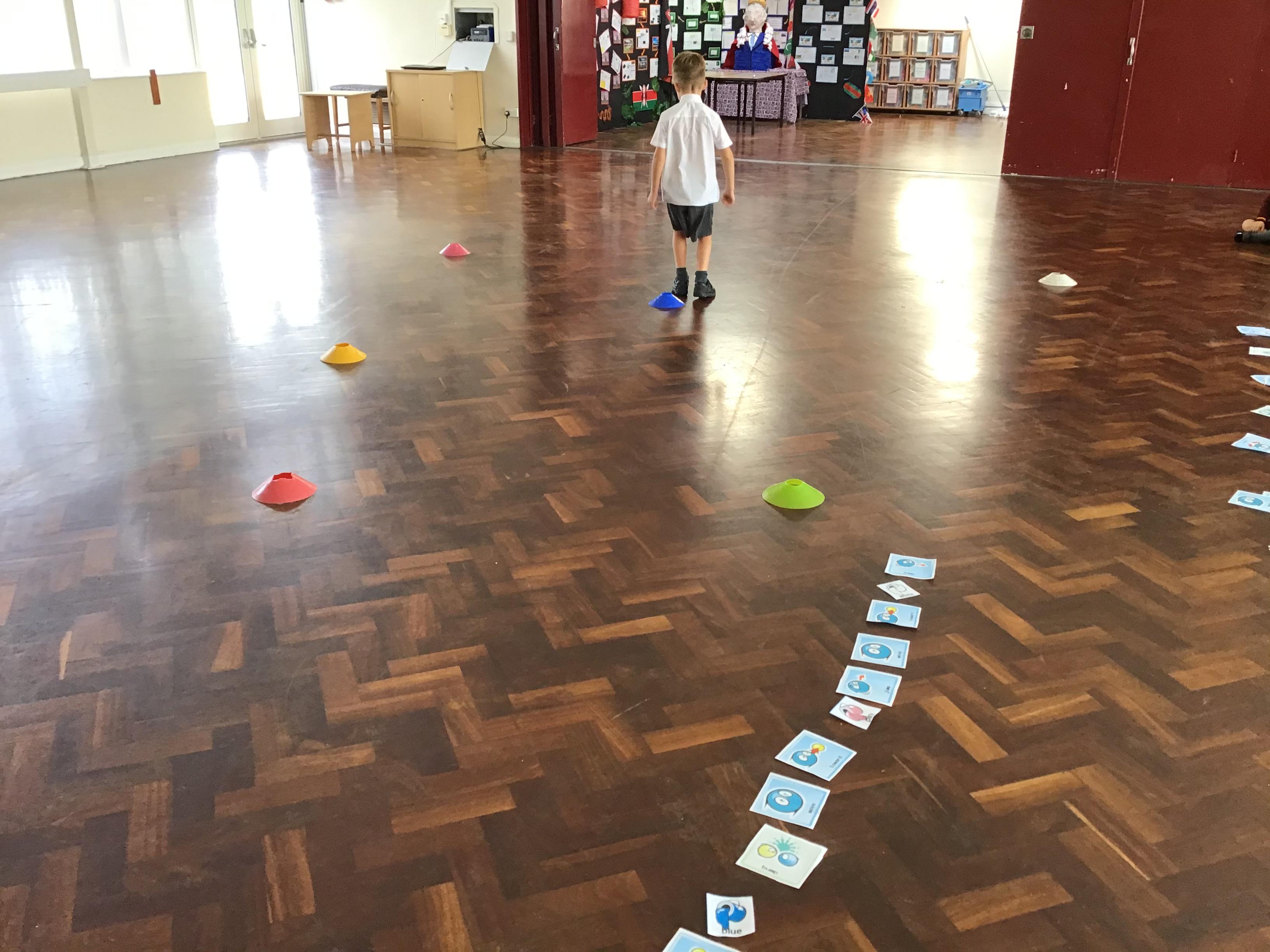 Children in Reception designed a simple trail involving turns and linked this to Maths.