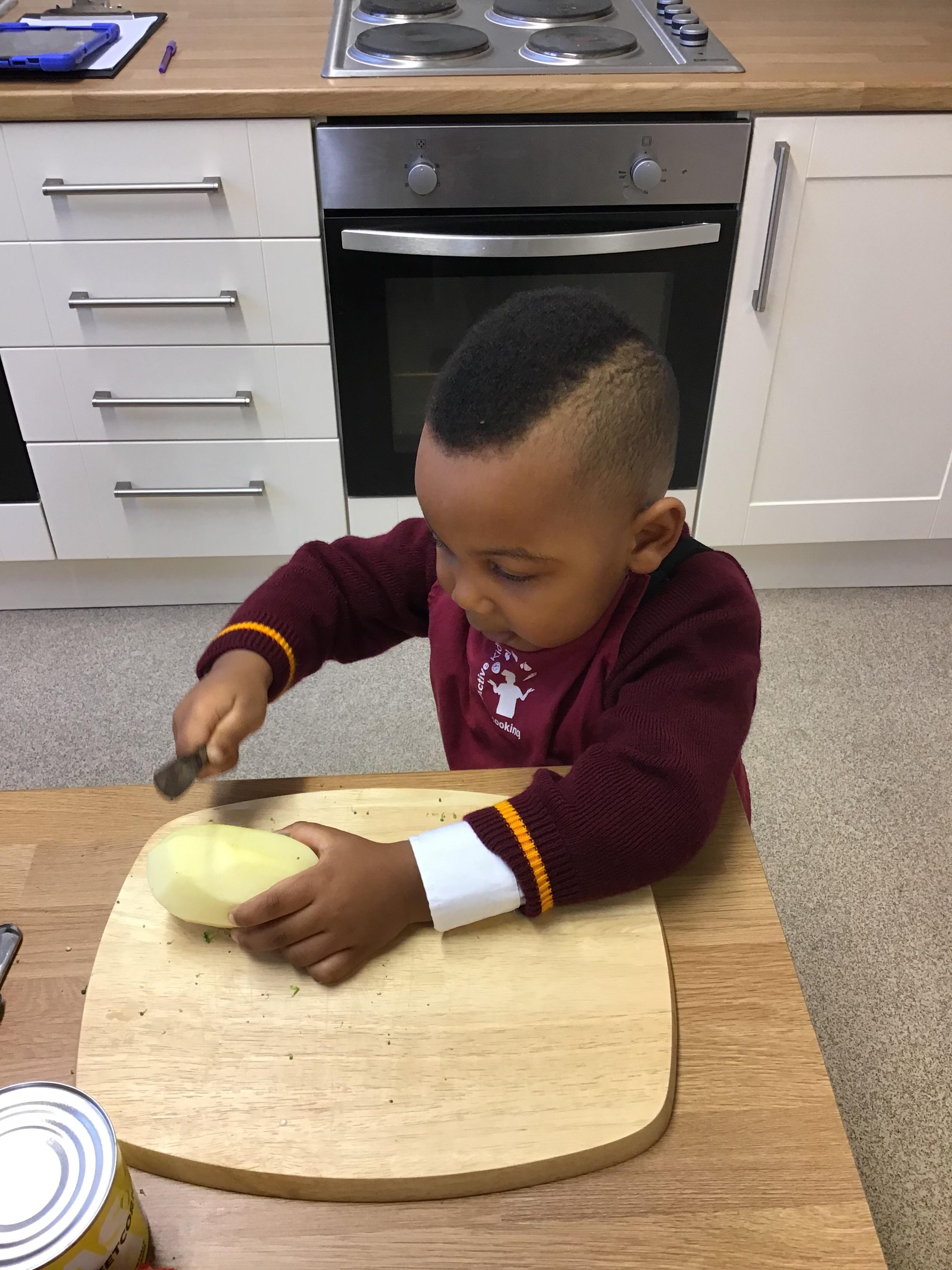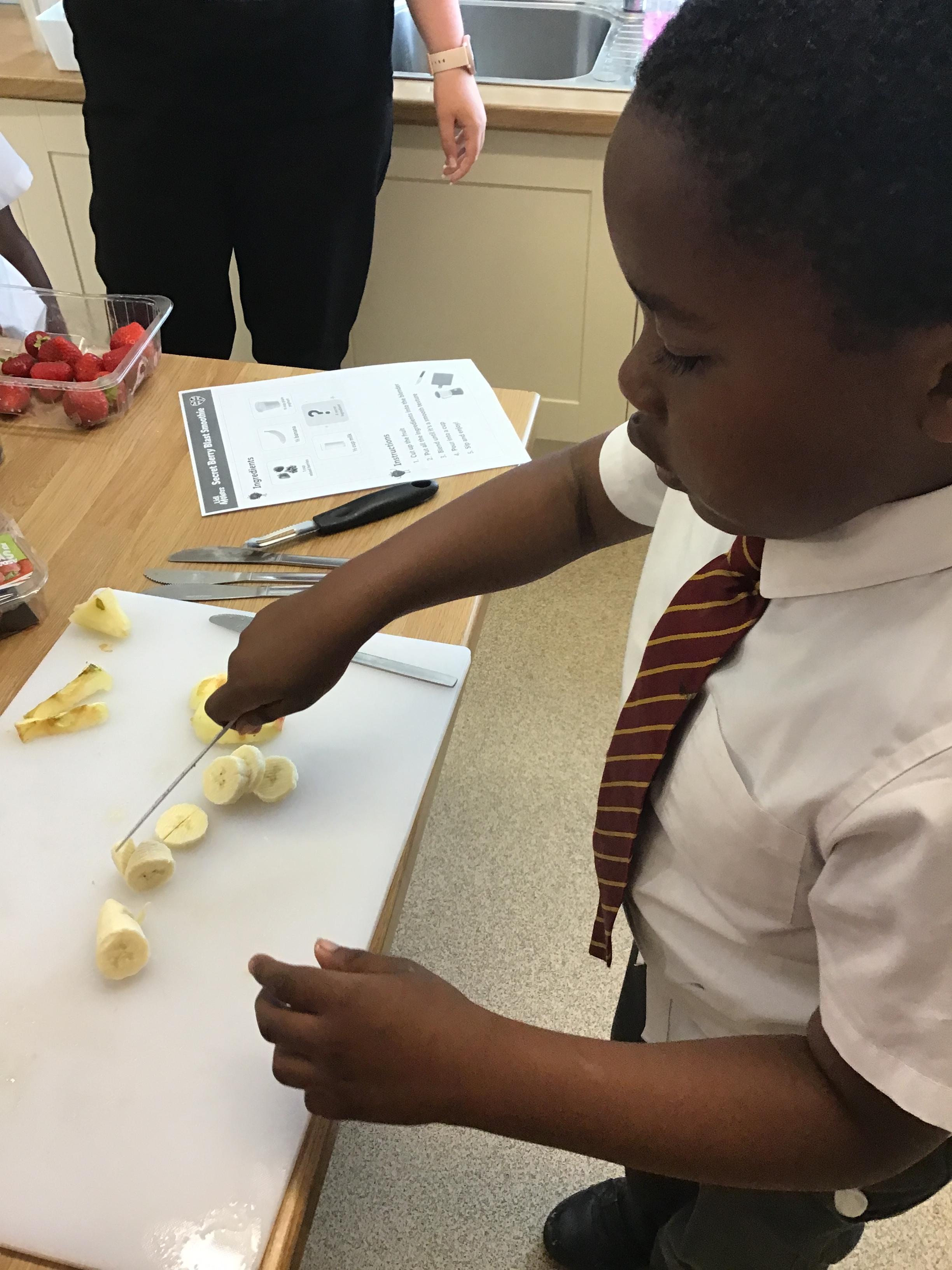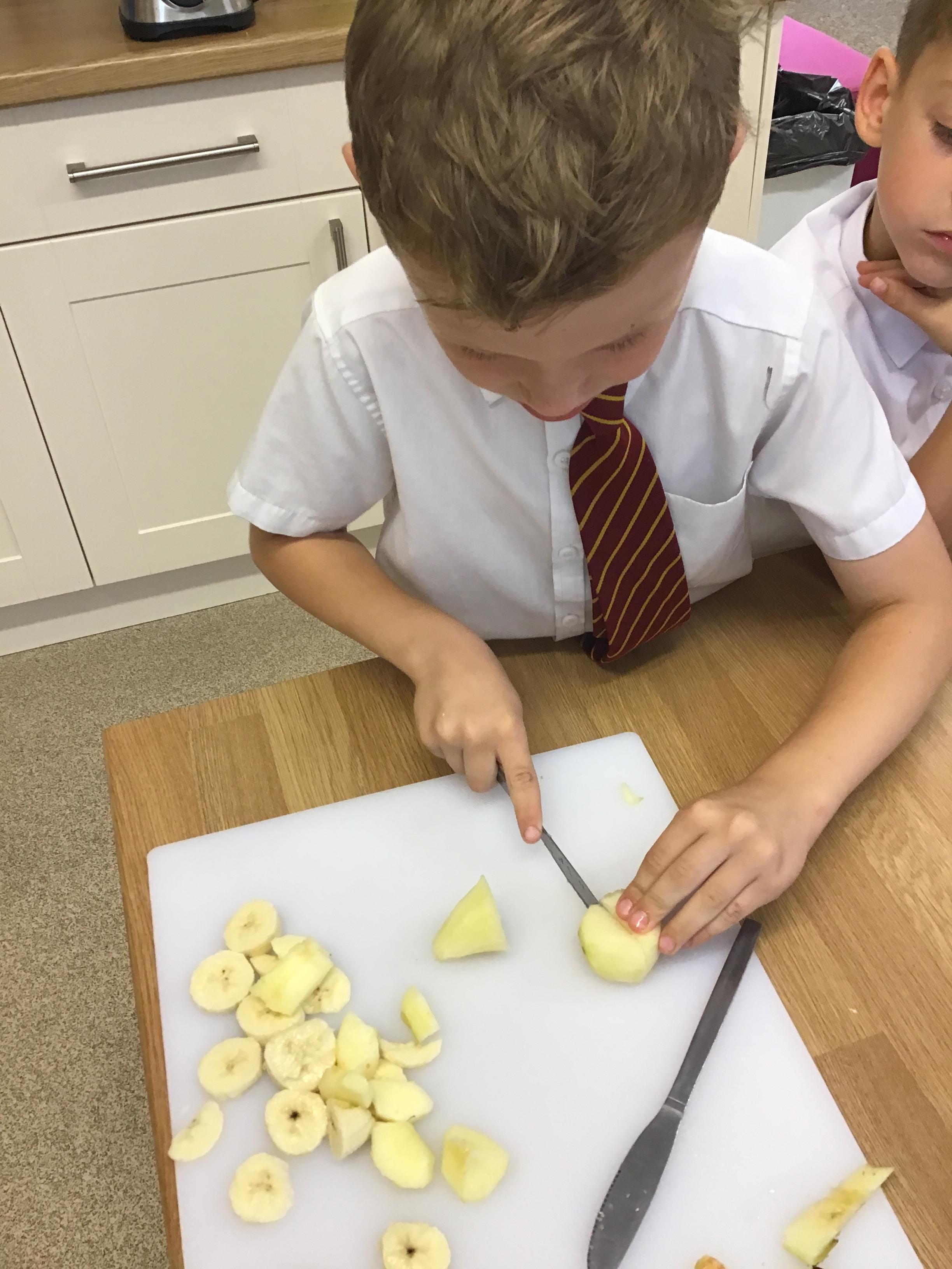 In this lesson, the children have been devolving their cutting and peeling skills