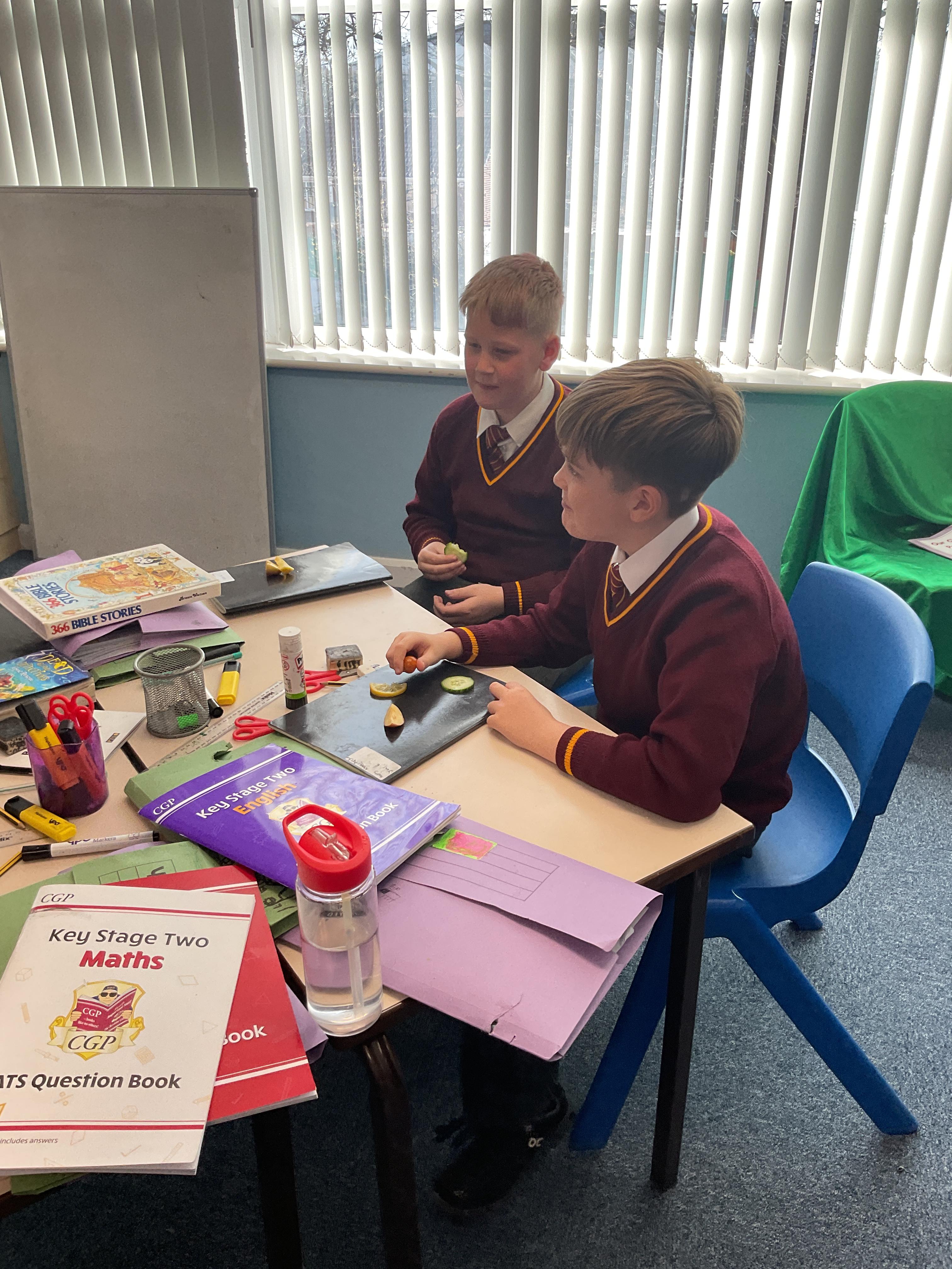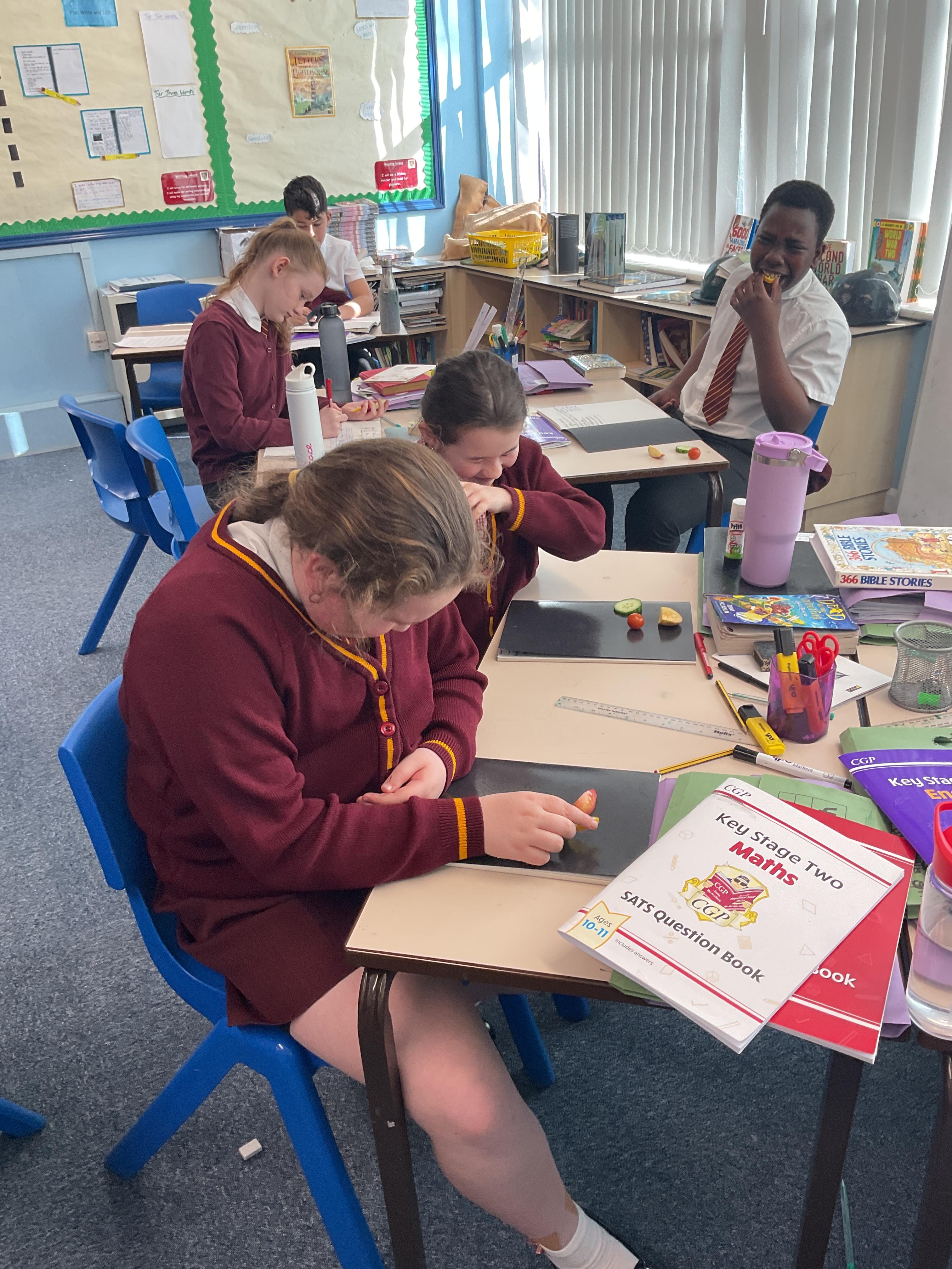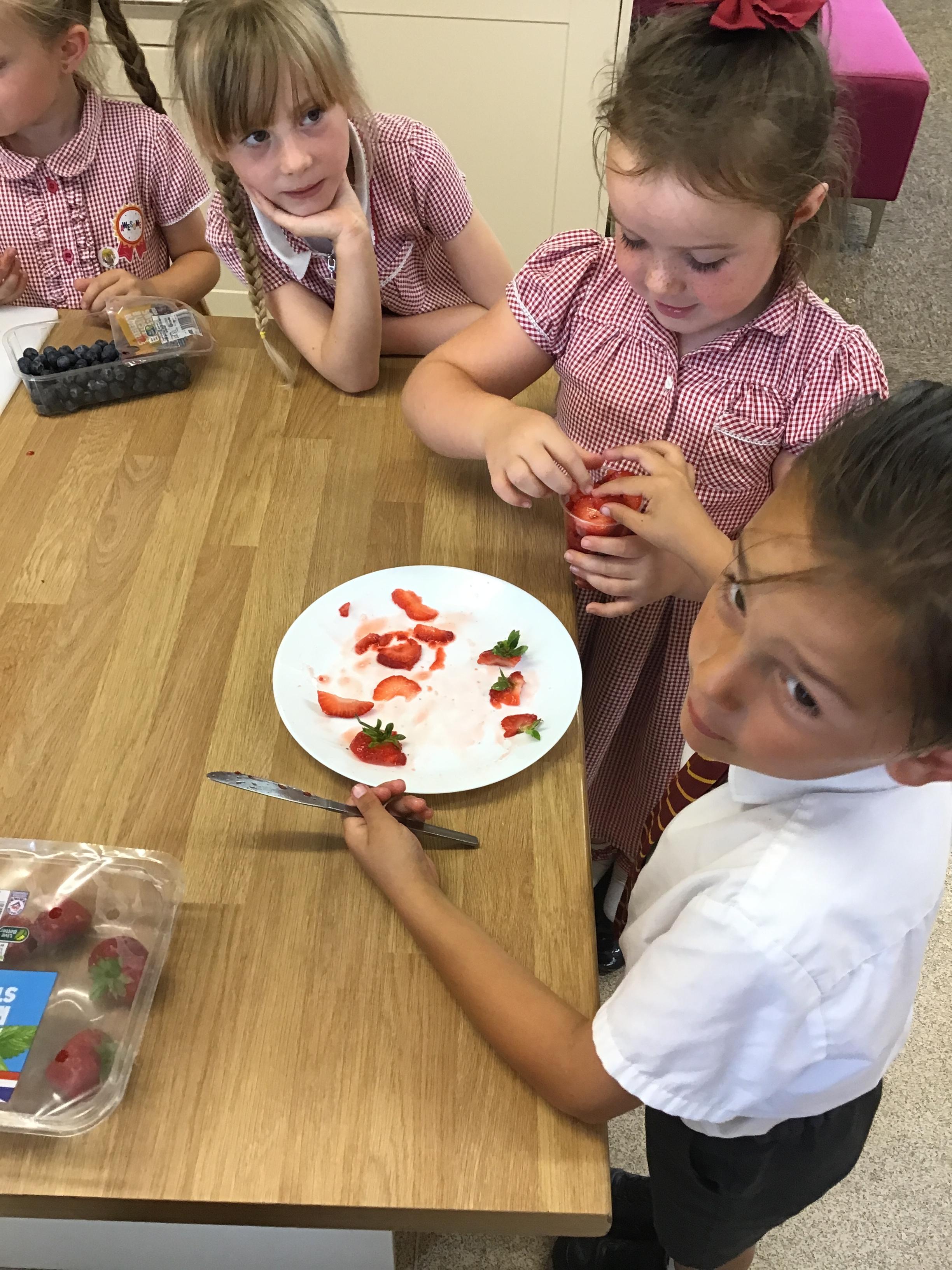 In this lesson, the children have been devolving their cutting and peeling skills