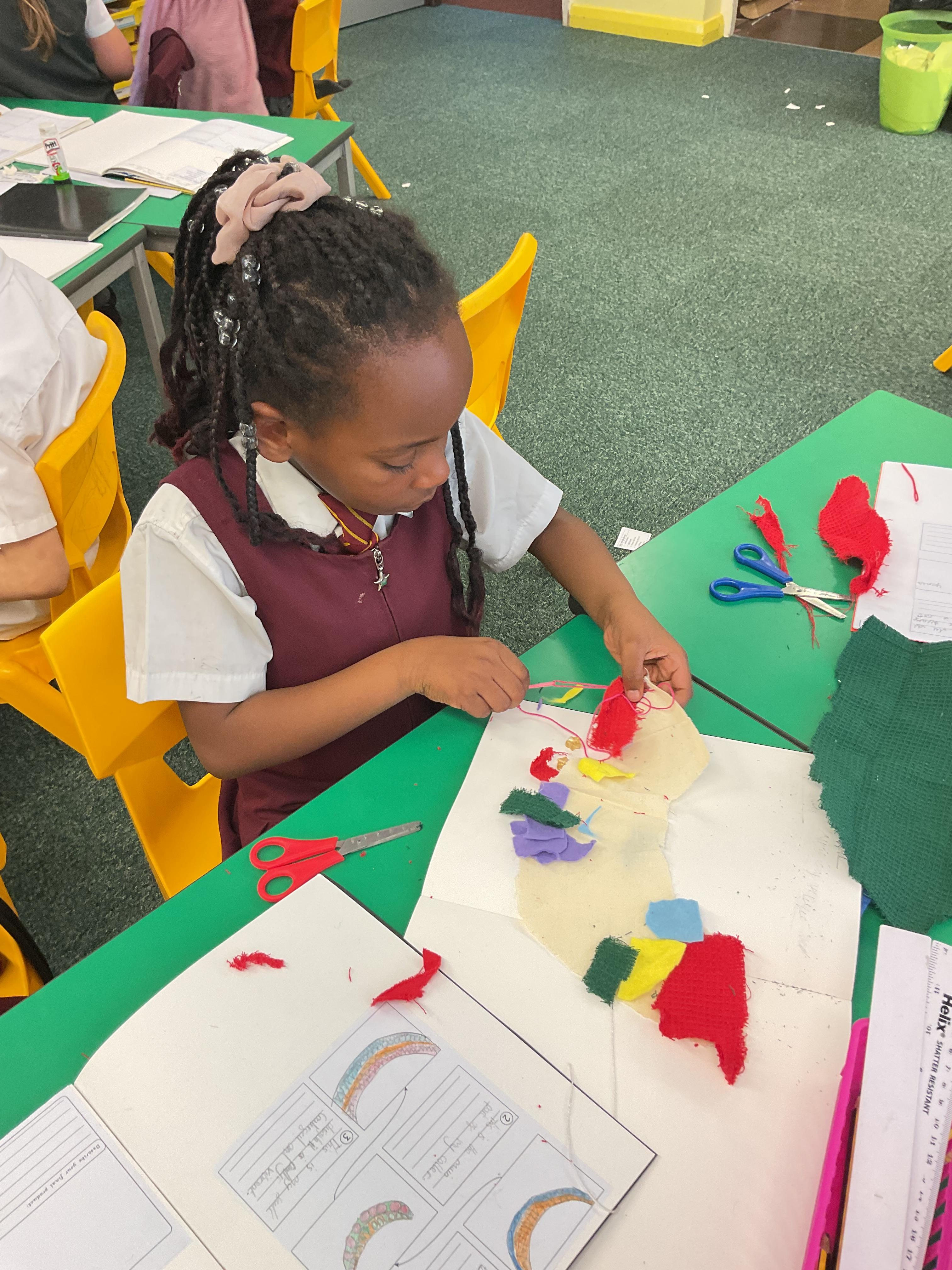 In this lesson, the children have been understanding how to decorate fabric using appliqué and cross stitch.
