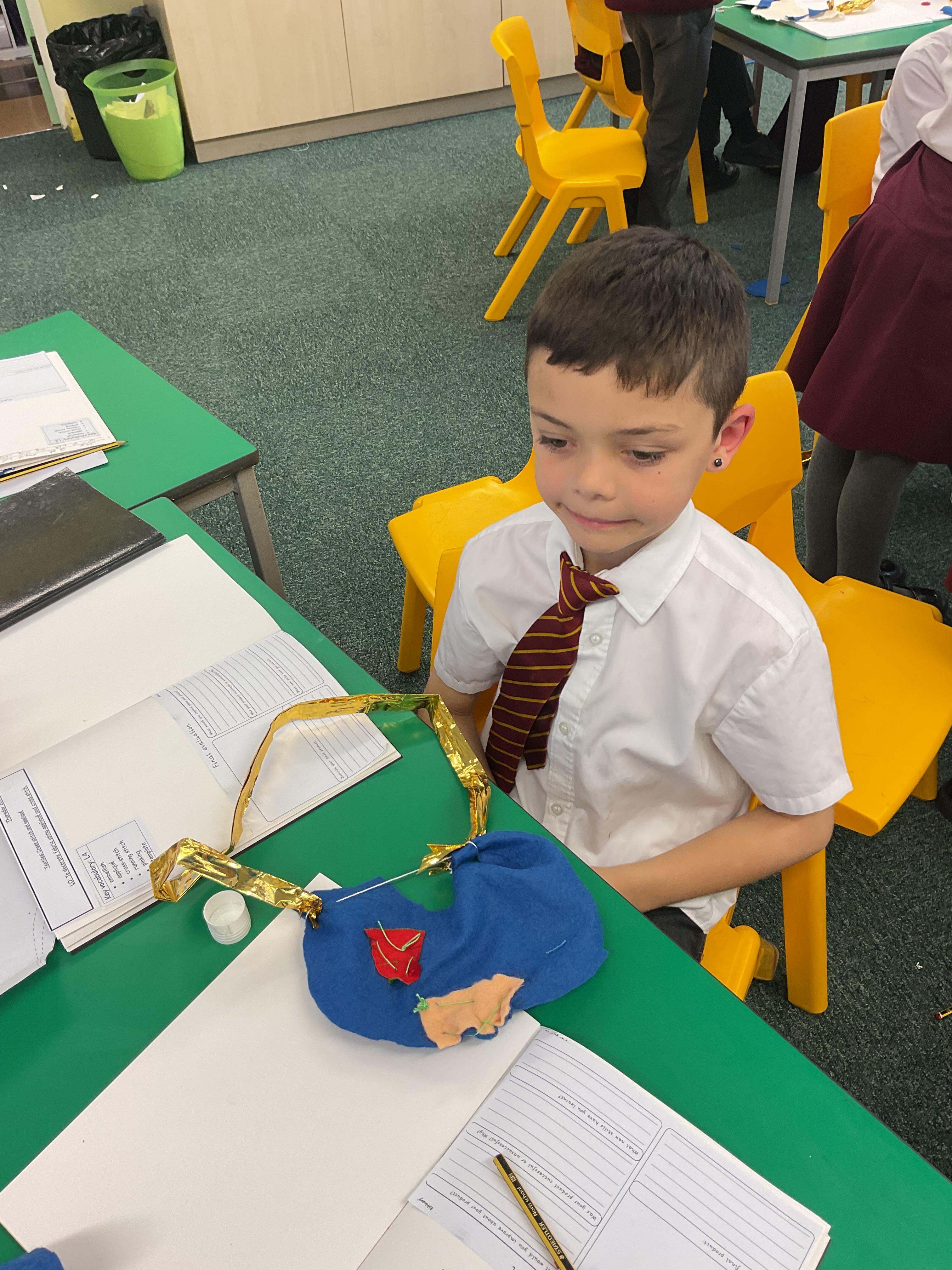 In this lesson he children have been understanding how to assemble fabric parts into a fabric product.