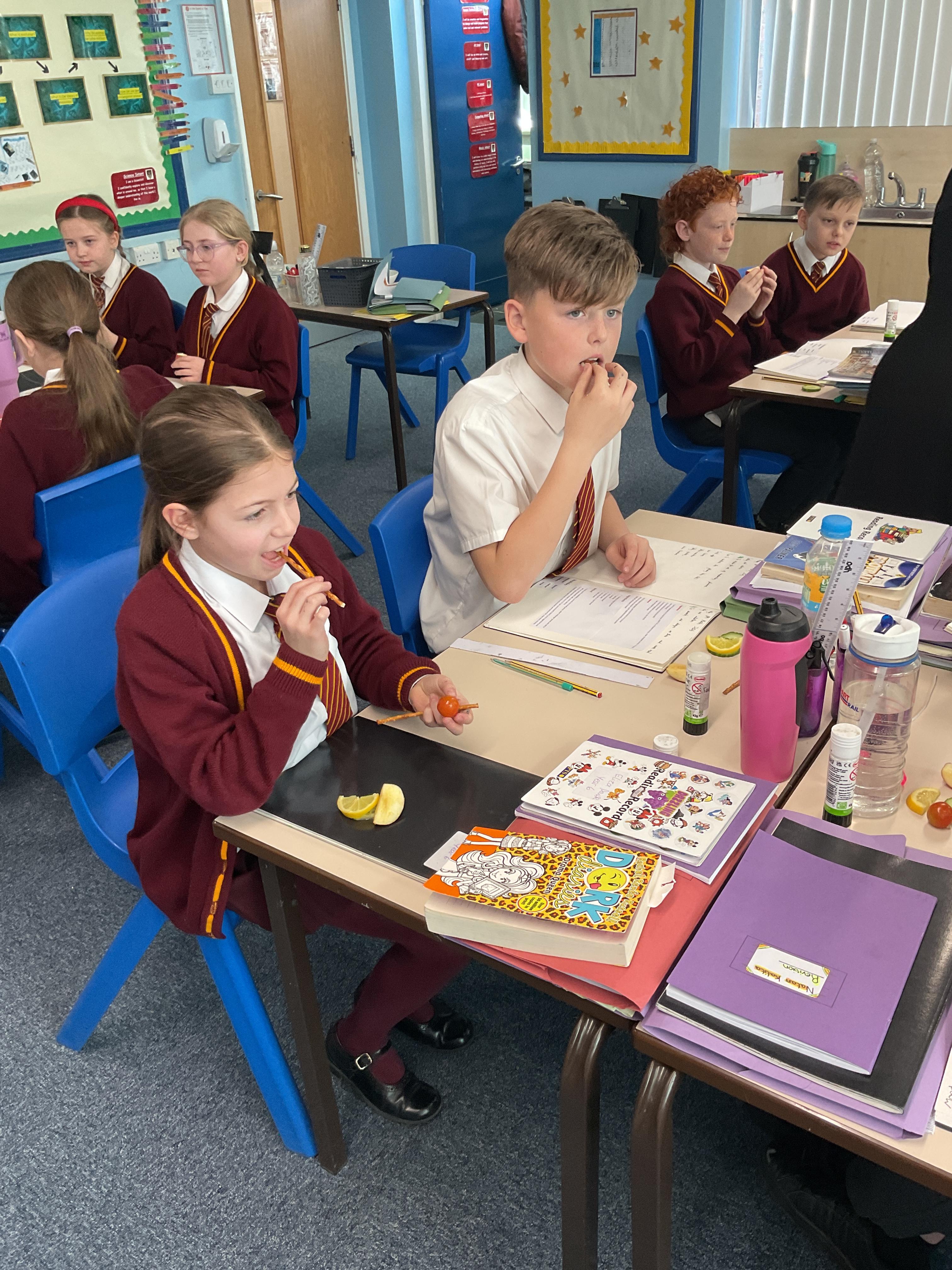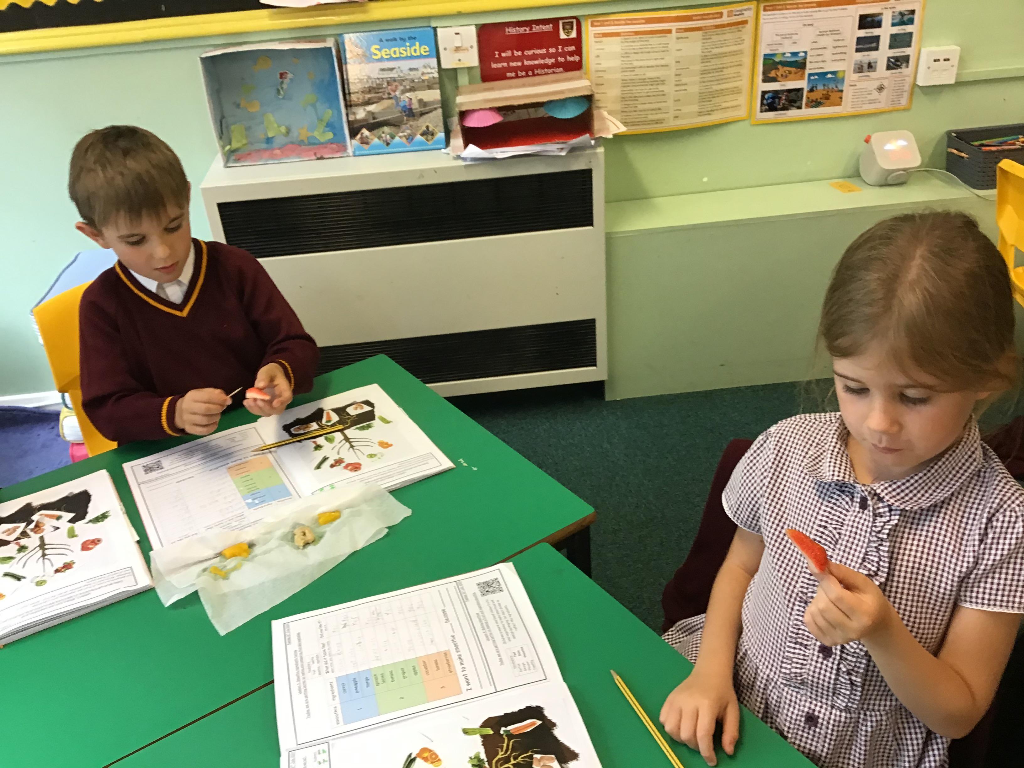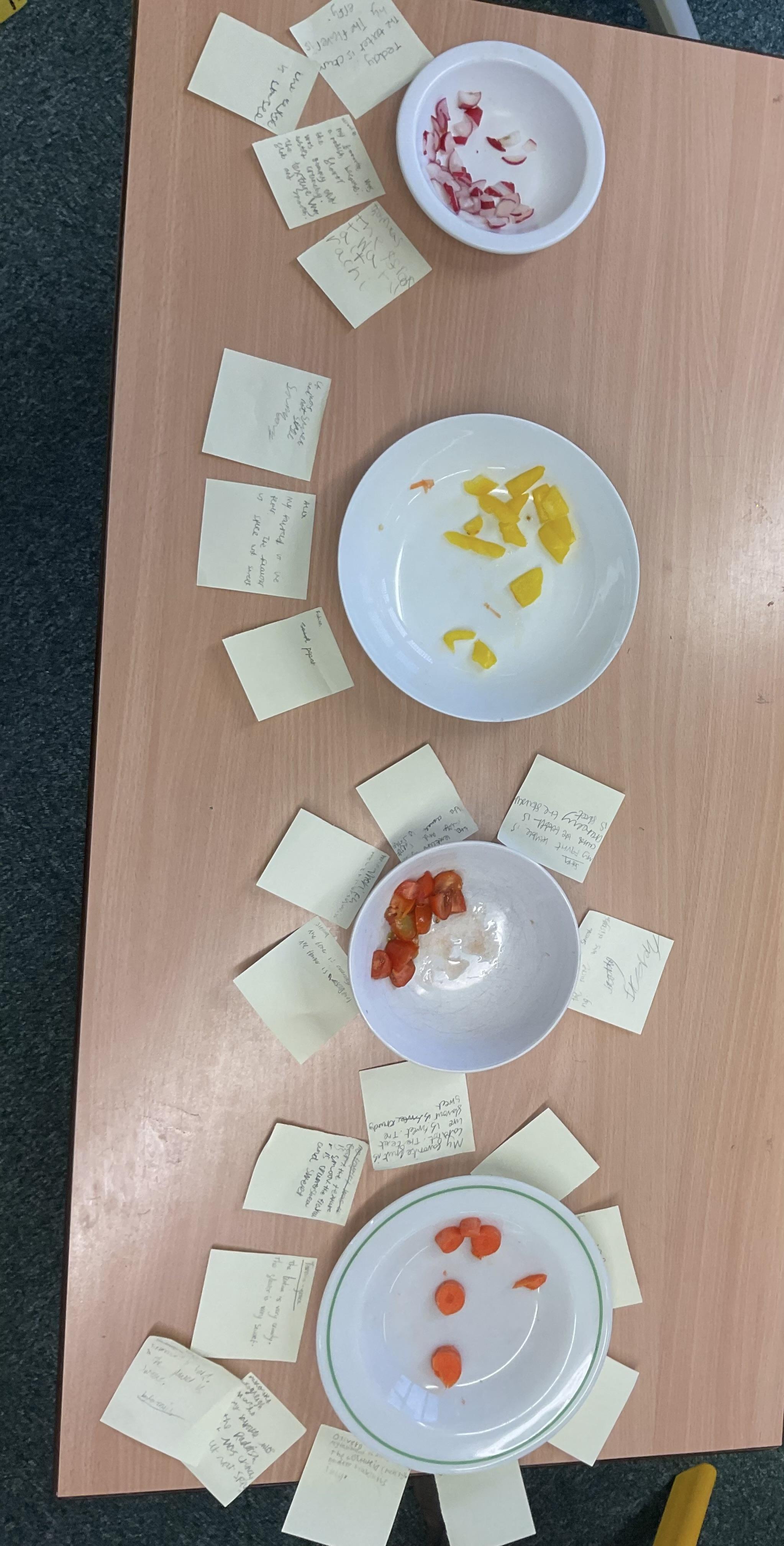 In this lesson, the children have been tasting their seasonal ingredients to evaluate them using a flavour wheel.